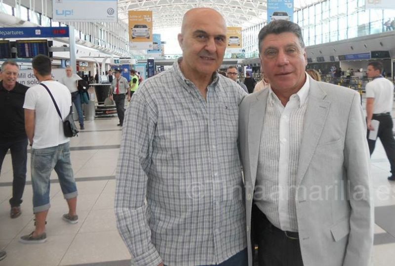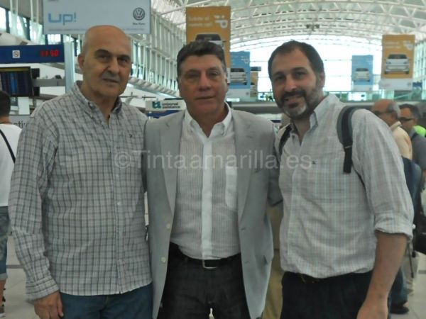 Morete, Brindisi y Wolff coinciden en el Aeropuerto de Ezeiza para viajar a la isla y recibir el homenaje del consejo de administración de la UD Las Palmas, que el martes les entrega la insignia de oro y brillantes de la entidad