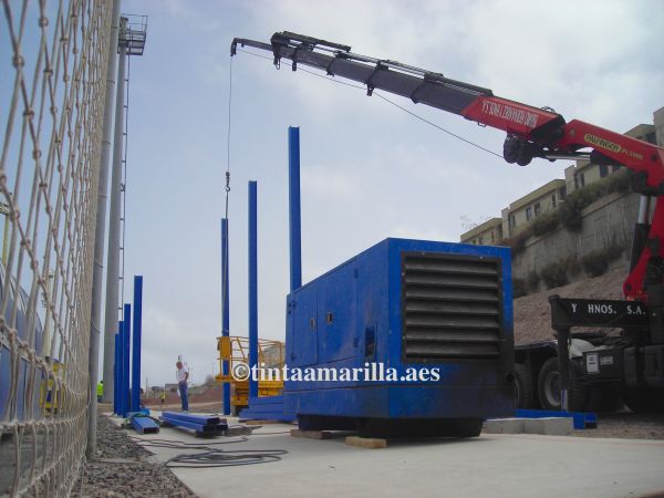 Los operarios han procedido en las últimas horas a levantar el esqueleto de la que será nueva tribuna del estadio Anexo, campo de juego de Las Palmas Atlético y de otros equipos filiales amarillo.