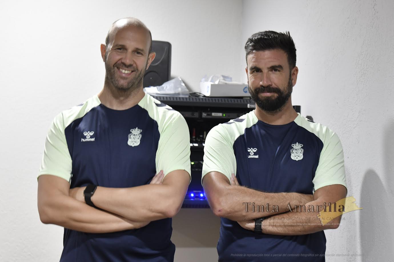 Javi Poveda (preparador físico) y Domingo Cisma (segundo entrenador) son los dos miembros del cuerpo técnico de la UD Las Palmas que aterrizaron junto a Luis Carrión en la isla. Ambos estuvieron este martes en la sala de prensa de la Ciudad Deportiva de Barranco Seco, atentos, brazos cruzados y ejerciendo como libres oyentes a las palabras del jefe. Porque ahora es tiempo de hablar, que el de la acción ya vendrá.