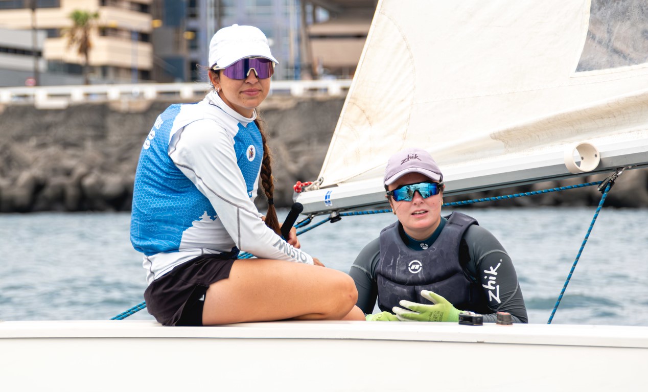 Por Tenerife, acuden Alicia Cebrian, Irene Hernandez, Julia Marfil y Laura Fernández (Federación Insular de Vela de Tenerife, ID Ortodoncia y Estética Bucodental, RCNT) ypor Lanzarote, Laura Iza, Marta Armas, Ana Hernández y Eva Angelina Perdomo (Turismo Lanzarote, Calero Marinas, RCNA).
