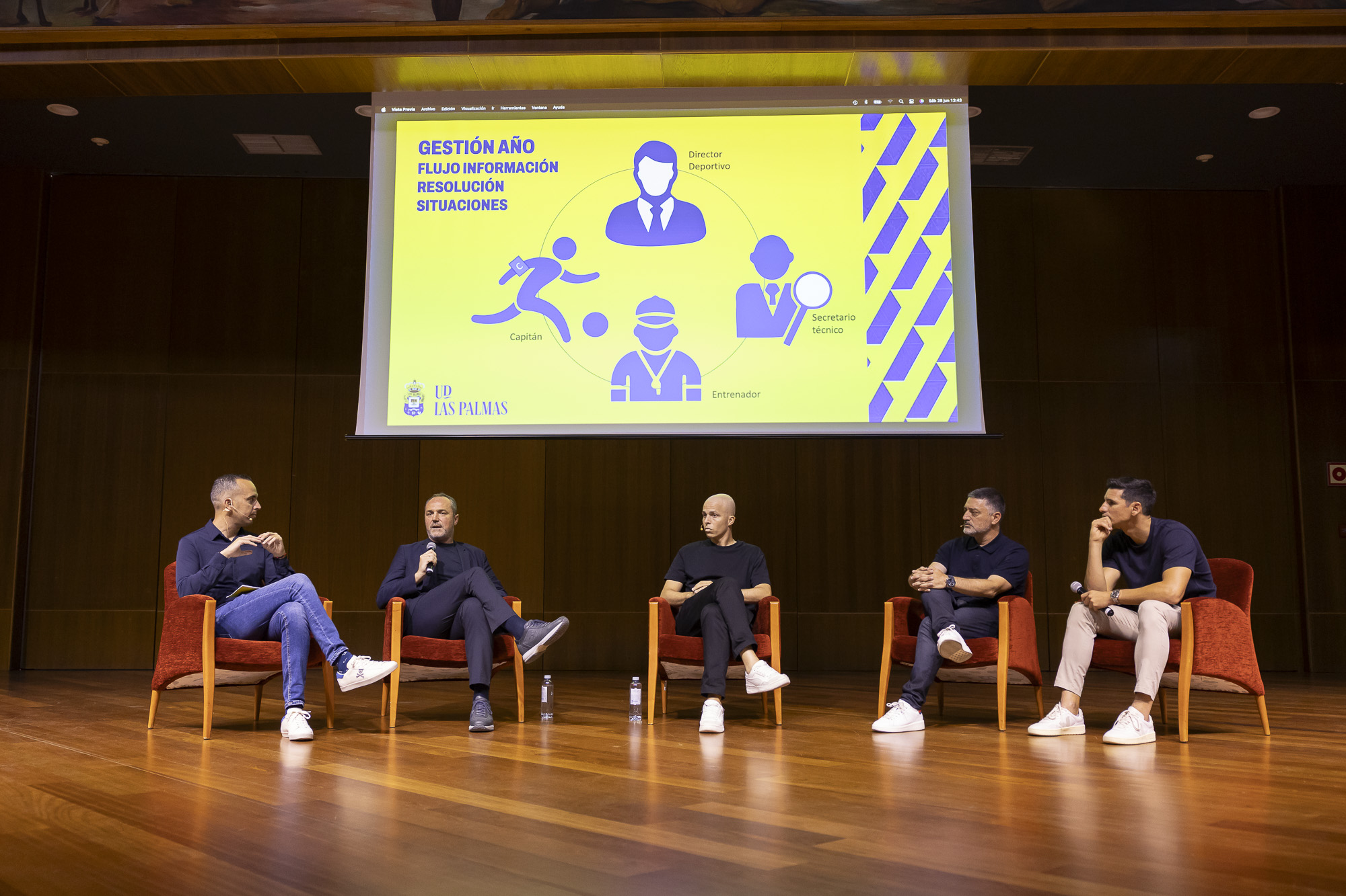 El Paraninfo de la ULPGC fue el lugar escogido para la celebración de la jornada en la que participaron ponentes de gran prestigio y trayectoria como el seleccionador nacional, Luis de la Fuente, Eder Sarabia, entrenador del Elche CF, Miguel Ángel Ramírez Medina, entrenador canario, García Pimienta, exentrenador de la UD Las Palmas, Luis Helguera, director deportivo de la entidad amarilla, Kirian Rodríguez, capitán de la UD Las Palmas y Vicente Gómez, exjugador amarillo y miembro de la dirección deportiva.
