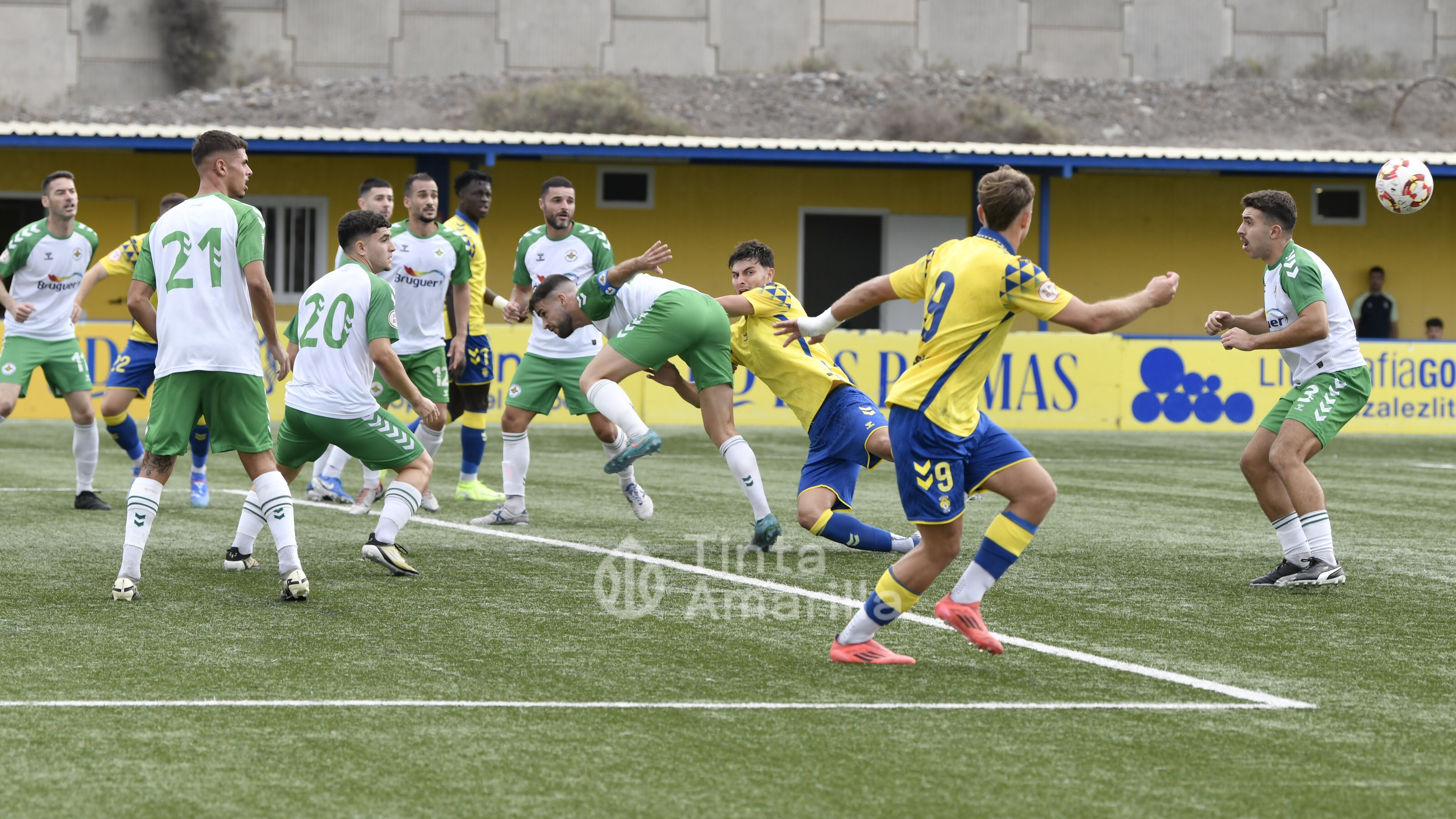 Un balón en largo de Fernando, en el minuto 80, dejó a Omar Sánchez frente al portero Jonay. Pero eligió un disparo con izquierda en exceso cruzado, malogrando la mejor ocasión de la tarde.