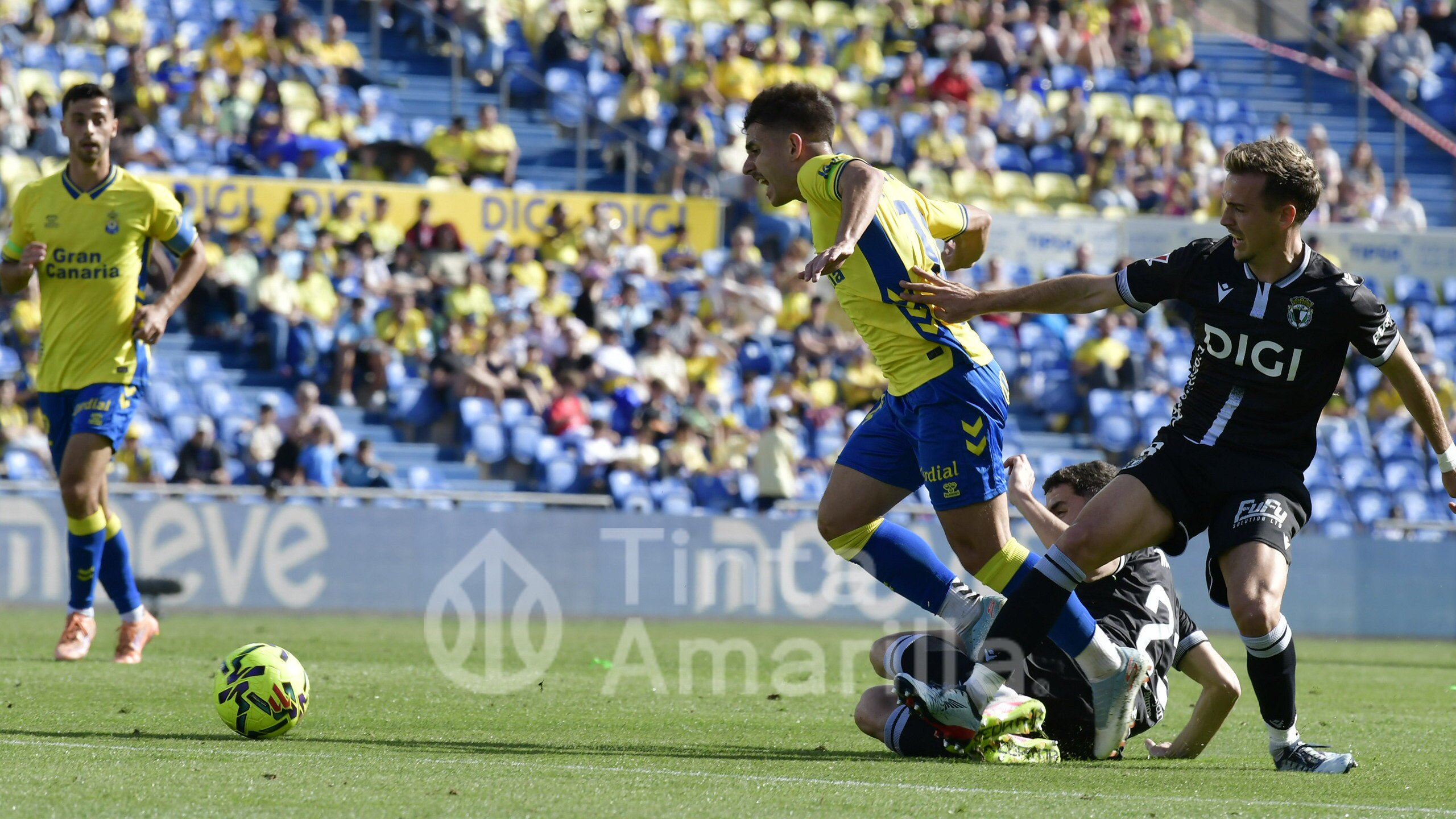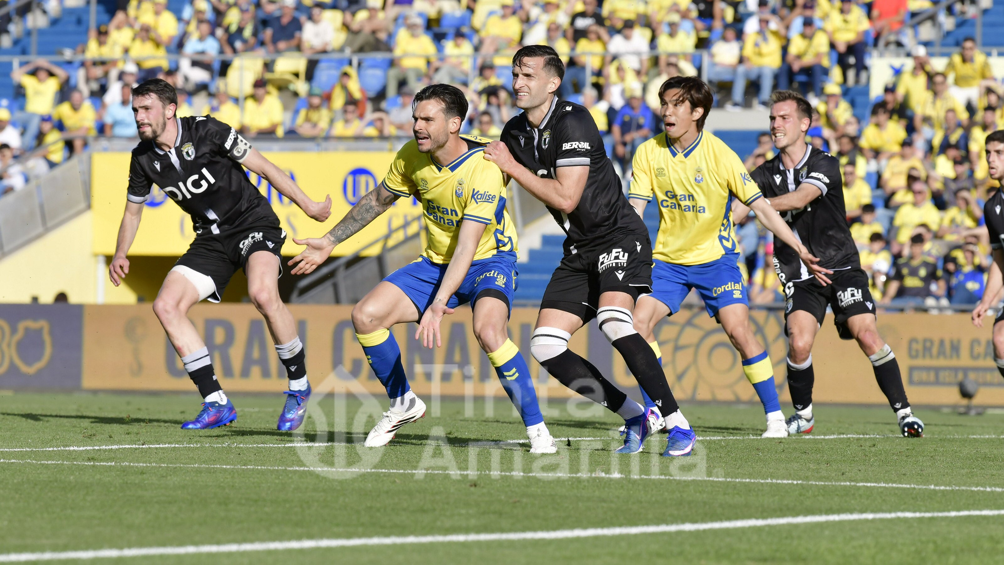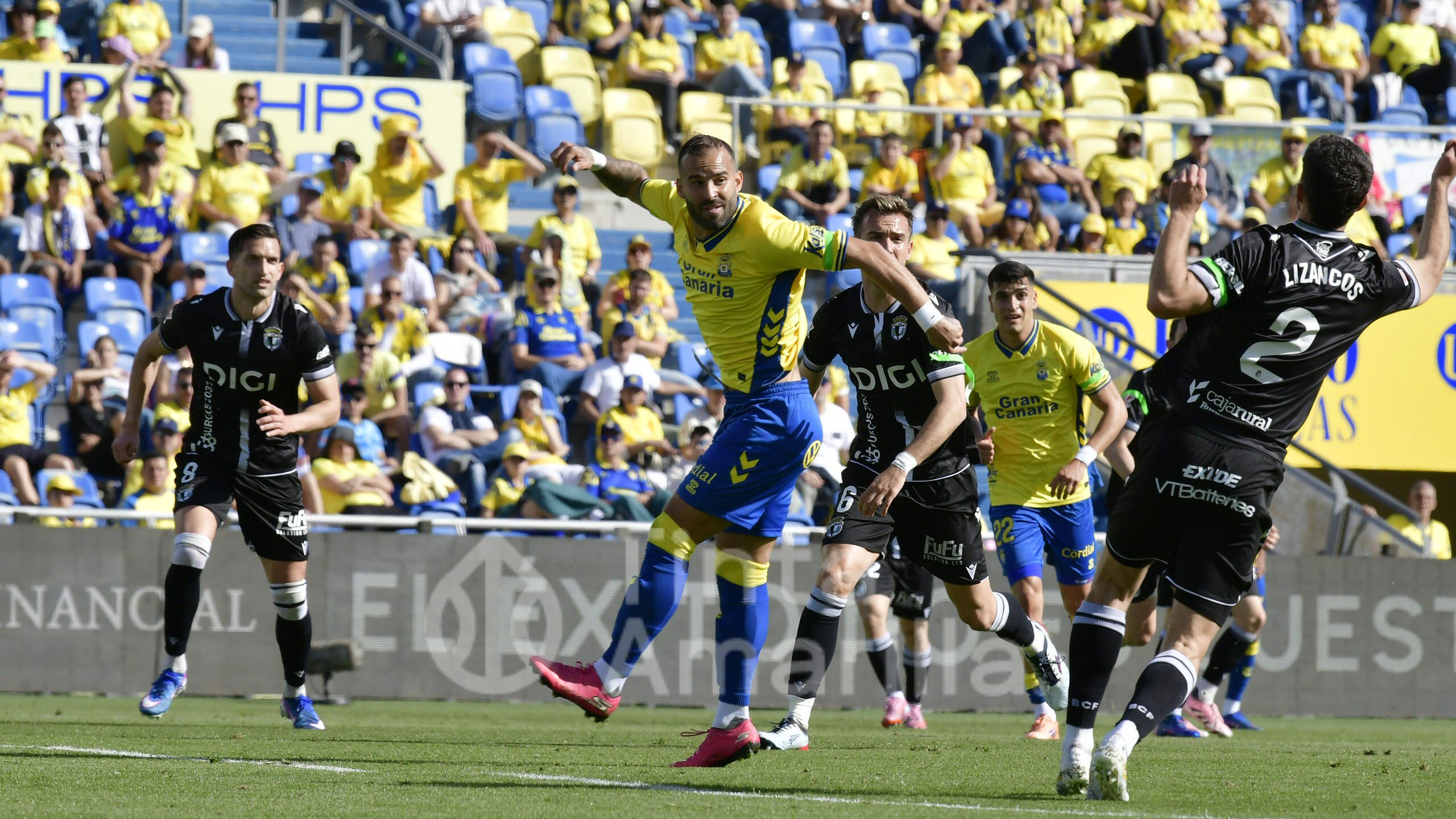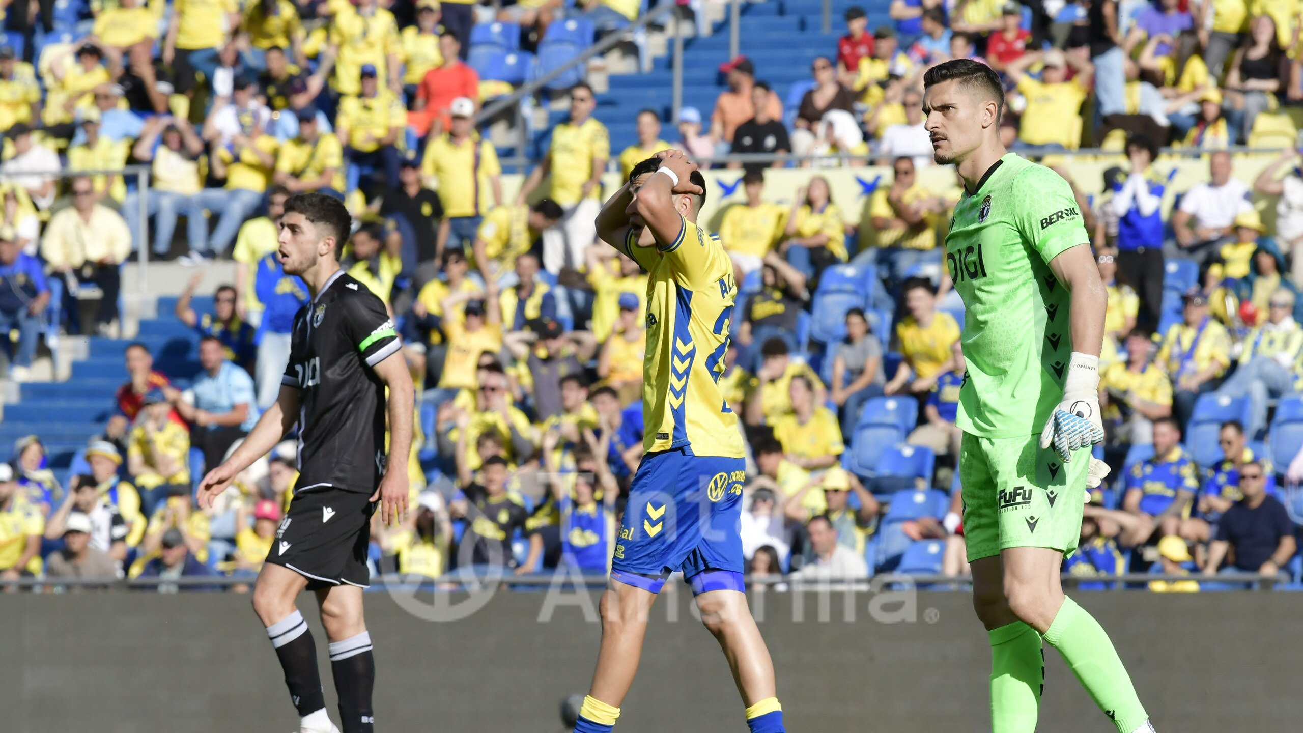 La tercera oleada llegó instantes después, tras el saque de esquina, con dos remates de Jesé y Barcia que salvó in extremis el portero visitante, el último de ellos atrapando el balón en la línea de gol. El 1-0 no llegaba, pero Las Palmas había descubierto caminos y fisuras en el bloque rival.