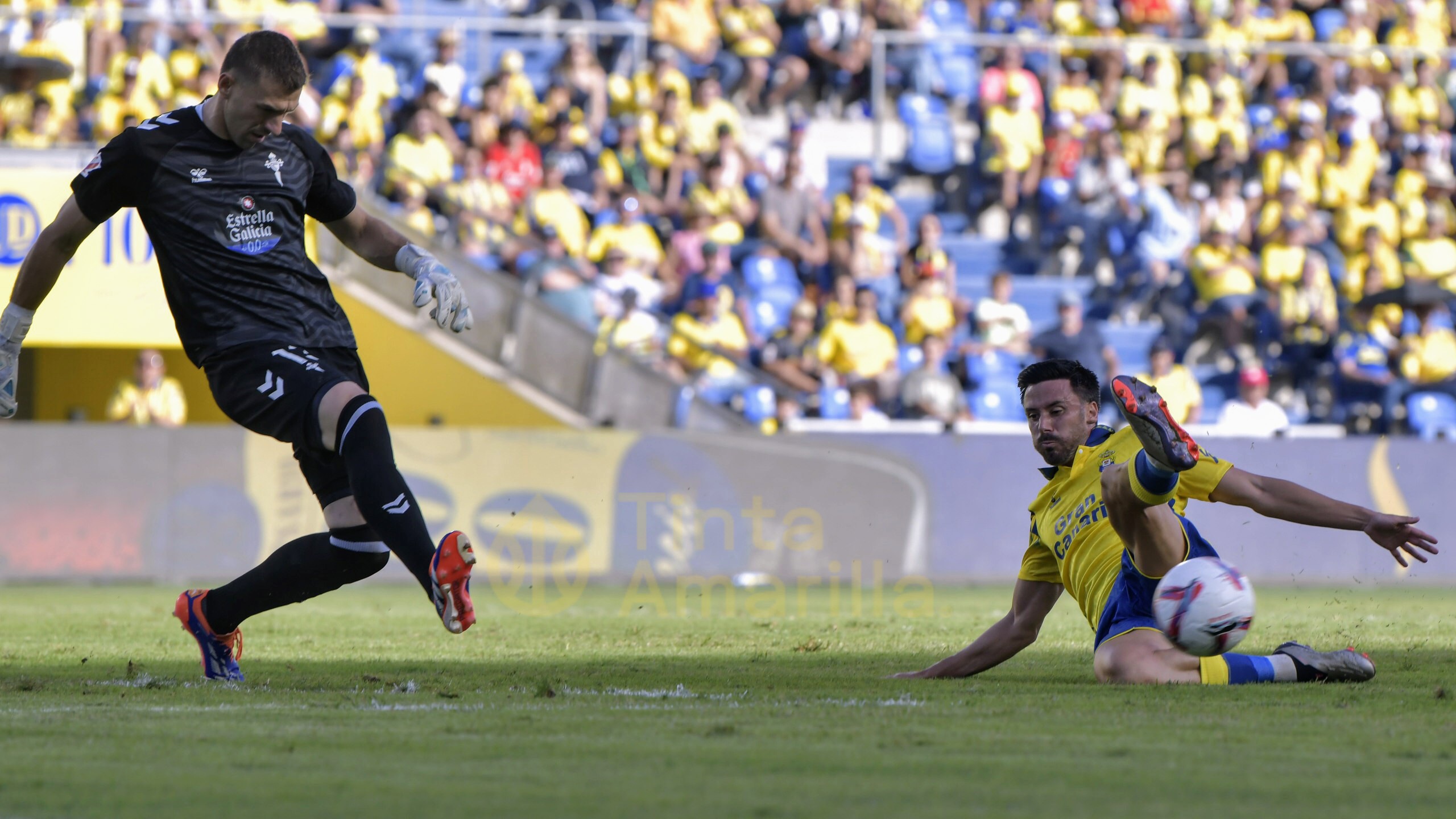 Las Palmas tiraba de amor propio en el partido. Sin una conexión colectiva, los amarillos ofrecían sus ganas en acciones individuales. La siguiente fue firmada por Fabio Silva, con un nuevo sprint en el minuto 25. El portugués consiguió otra vez ganar en velocidad a su par, pero el balón que dejó en el área pasó de largo sobre la posición de McBurnie.