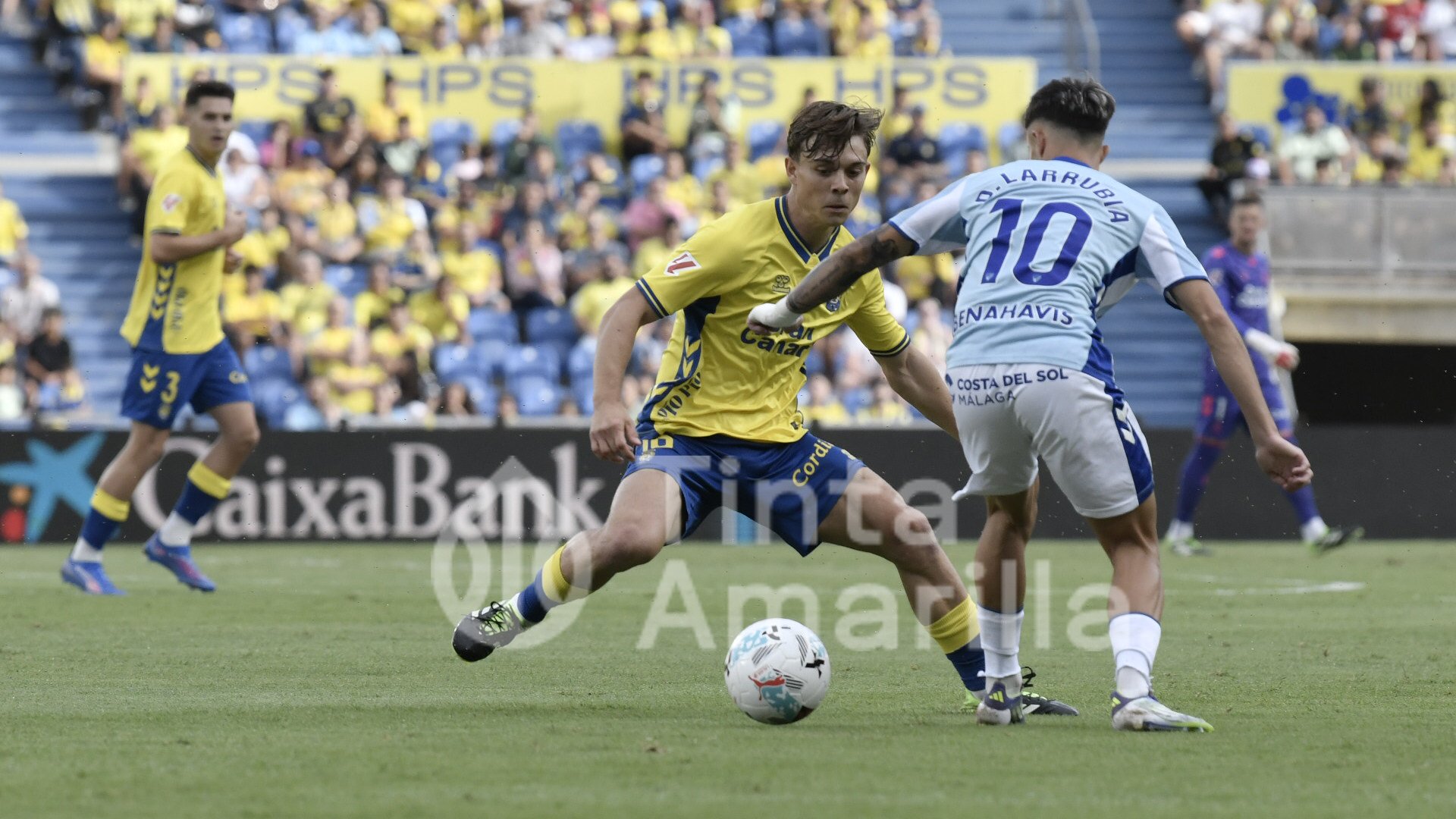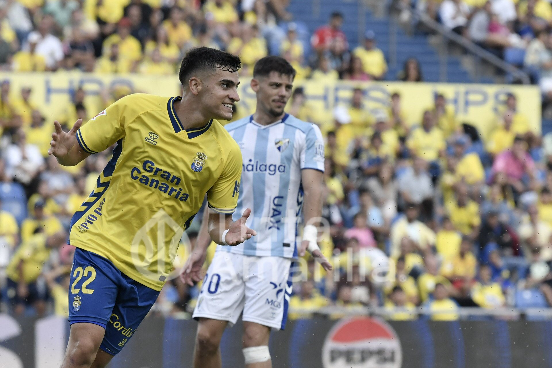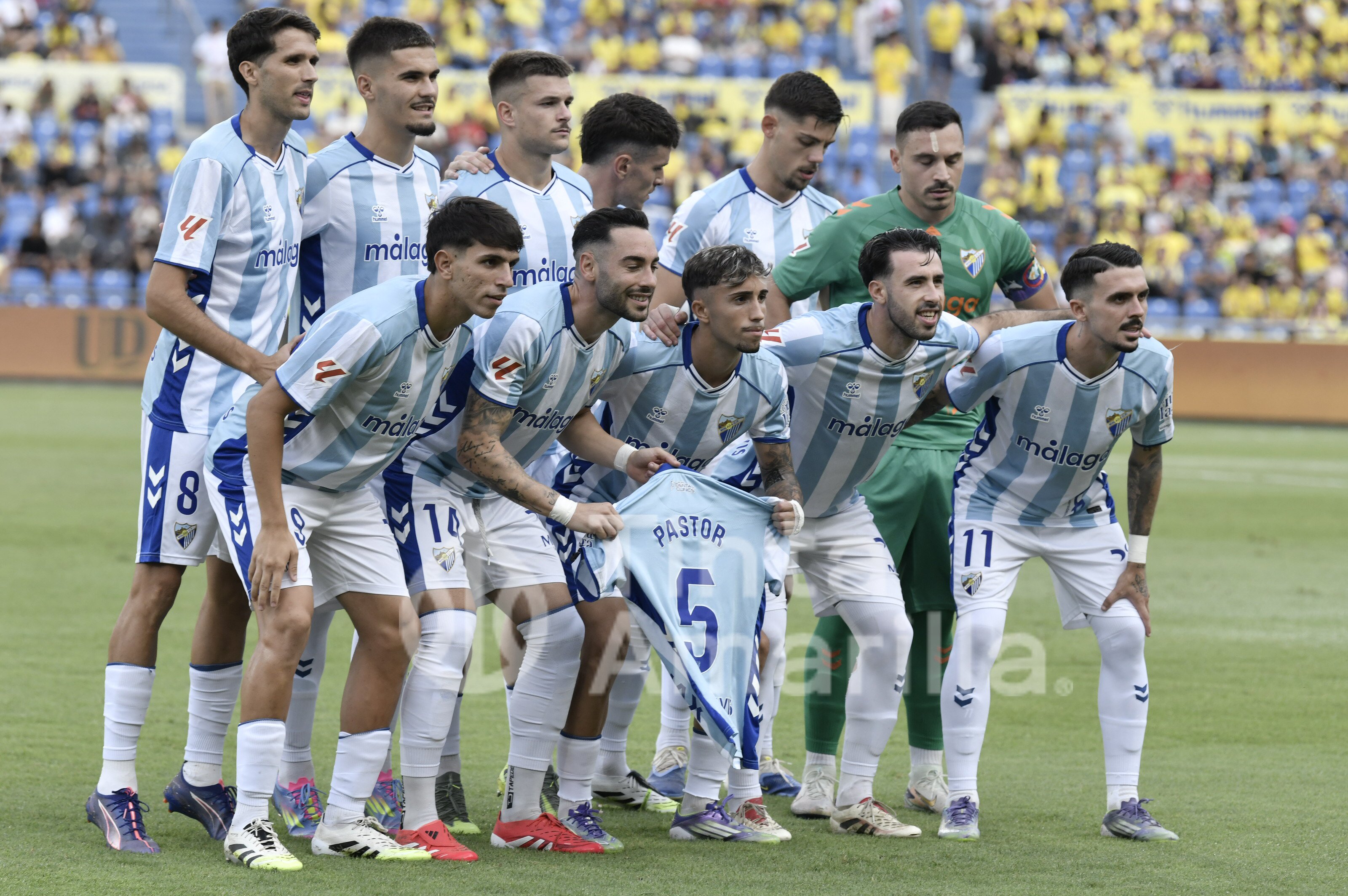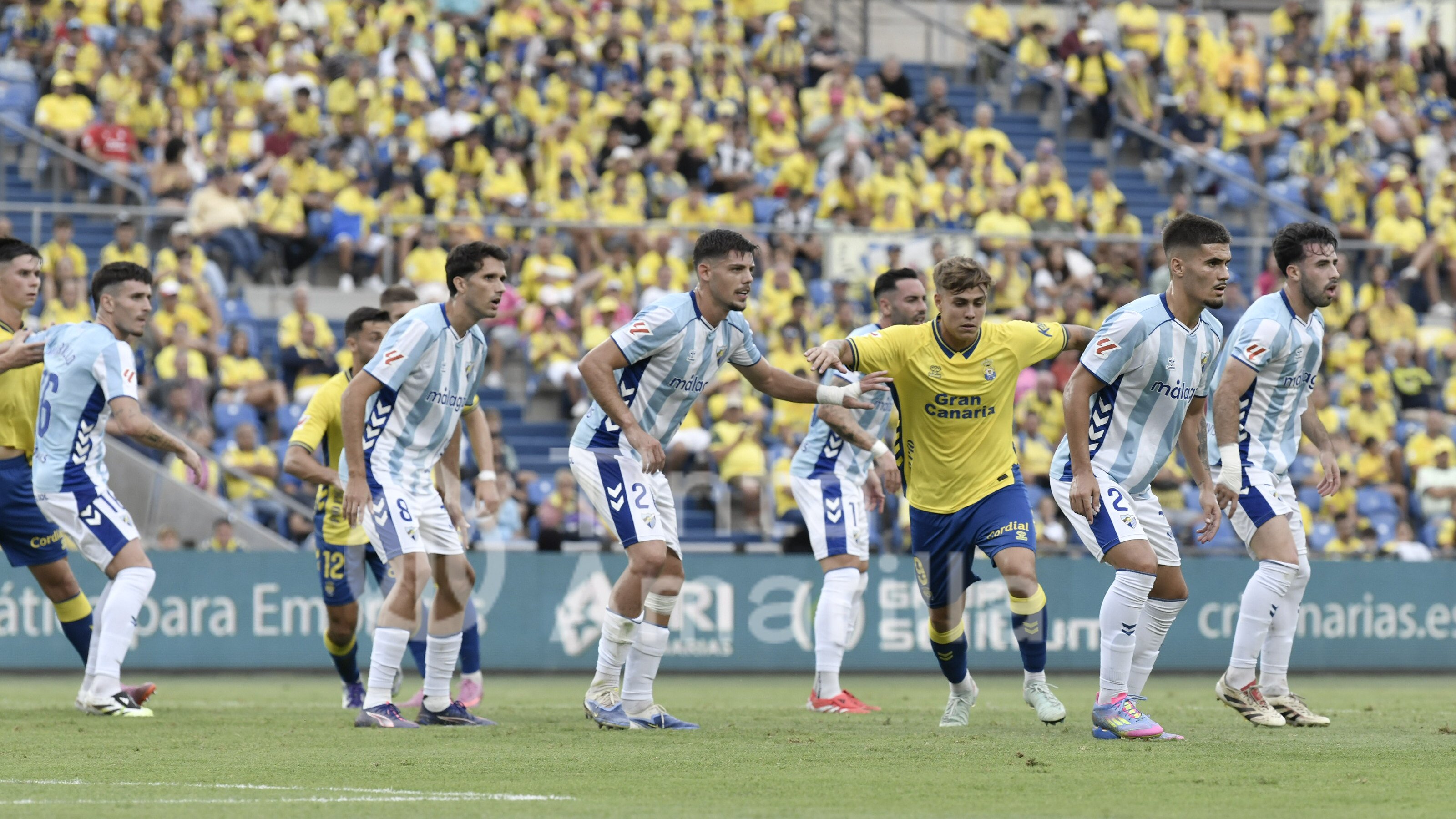 El primer problema que le planteó el Málaga a Las Palmas fue una presión alta que impedía a los amarillos manipular el encuentro desde el inicio. Los andaluces pretendían anotar el tanto de apertura, en un inicio algo titubeante del equipo local, que había repetido el once de Córdoba salvo Cedeño (por Loiodice).
