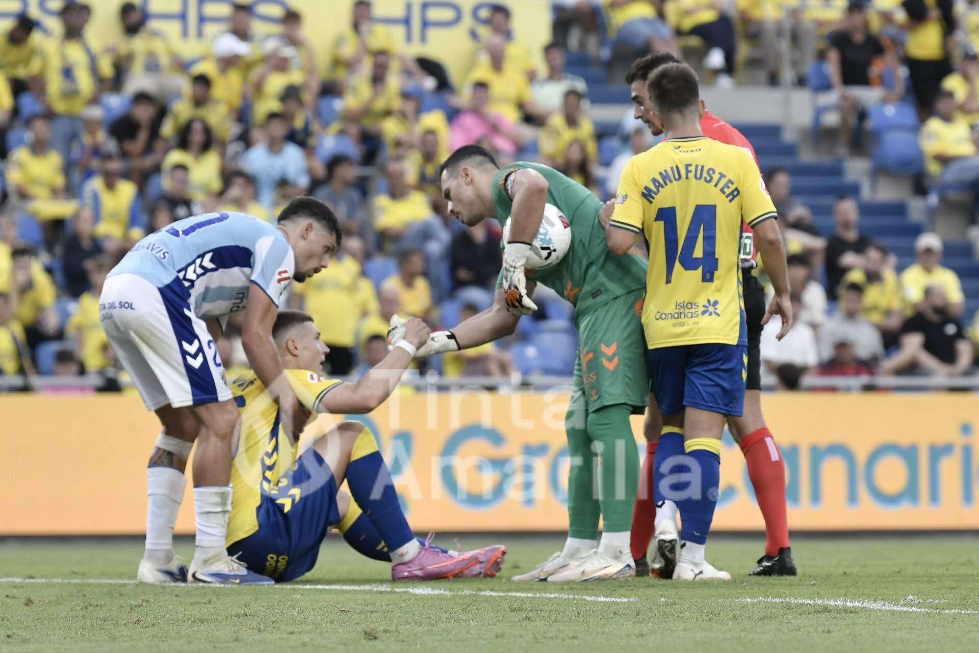 El guardameta Herrero, que ya había tenido una notable actuación en la isla cuando pasó con el Burgos hace unos años, negó el gol a disparos de Loiodice y Manu Fuster -en dos ocasiones a este último-. Viera entró al campo espoleado por los aficionados para añadir la proyección local en sus ofensivas.