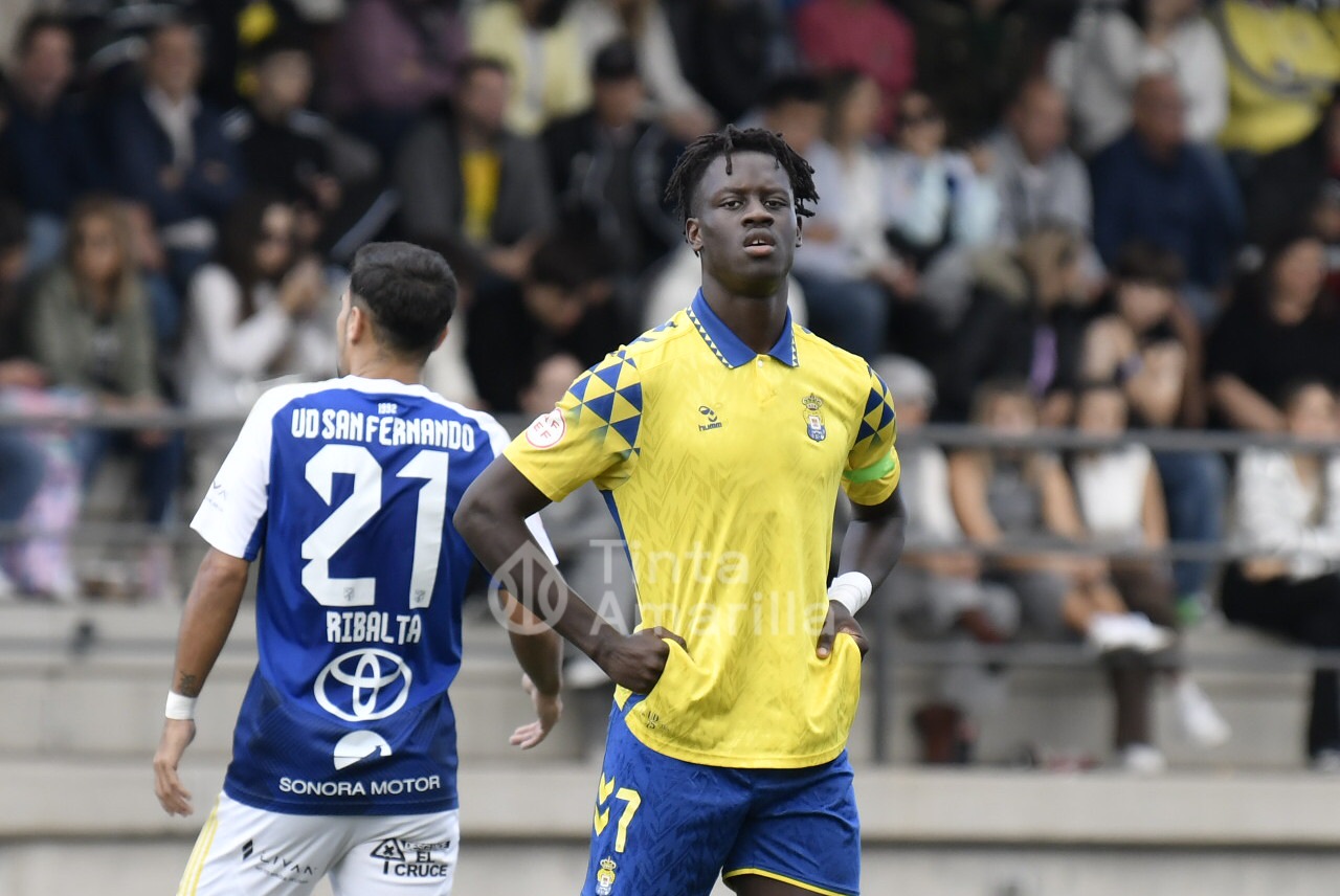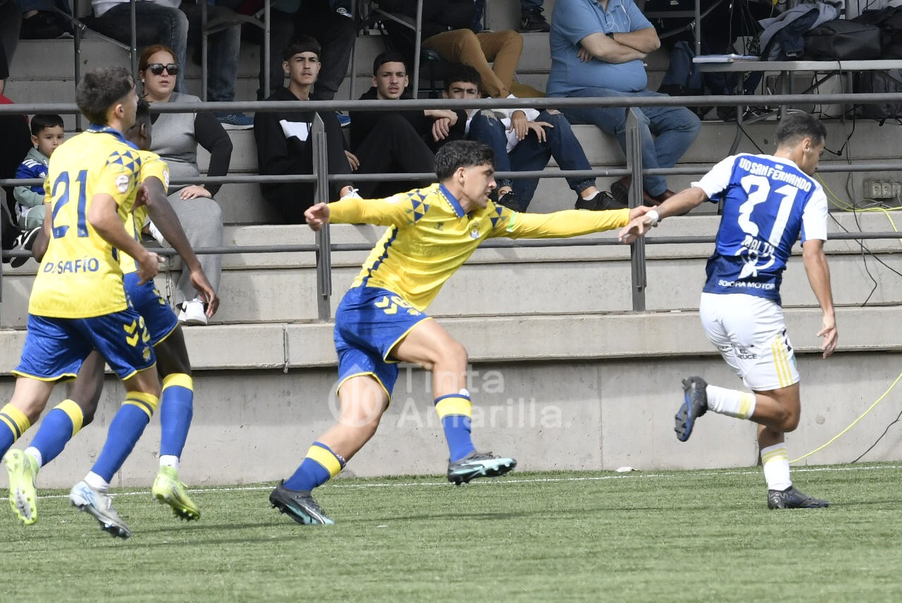 El fútbol de Las Palmas Atlético era más metódico, pero tropezaba con el contacto constante autorizado de su oponente. Solo el marcador avalaba ese escenario, en el que el San Fernando podría estar más cerca del empate que de encajar un segundo tanto.