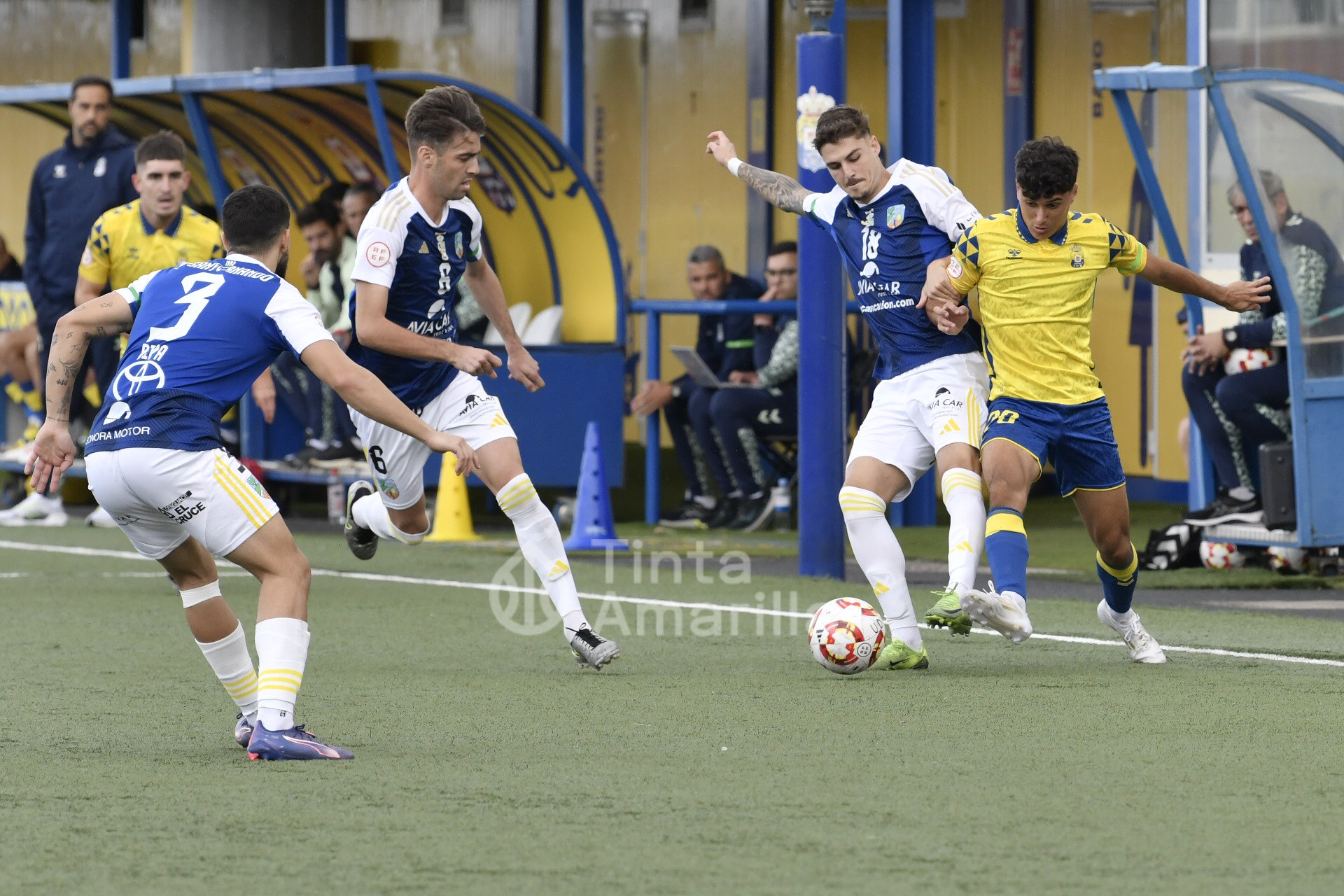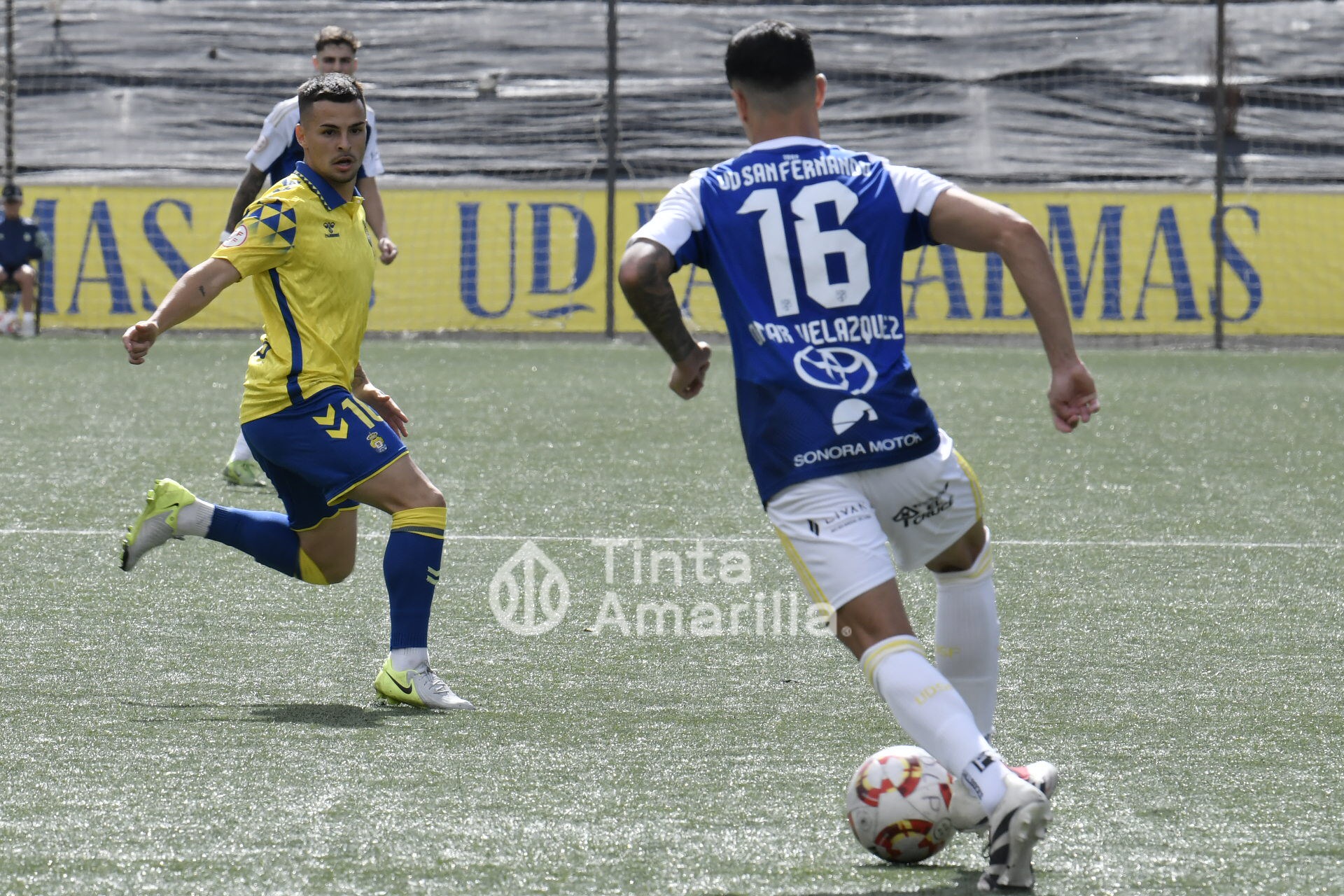 El fútbol de Las Palmas Atlético era más metódico, pero tropezaba con el contacto constante autorizado de su oponente. Solo el marcador avalaba ese escenario, en el que el San Fernando podría estar más cerca del empate que de encajar un segundo tanto.