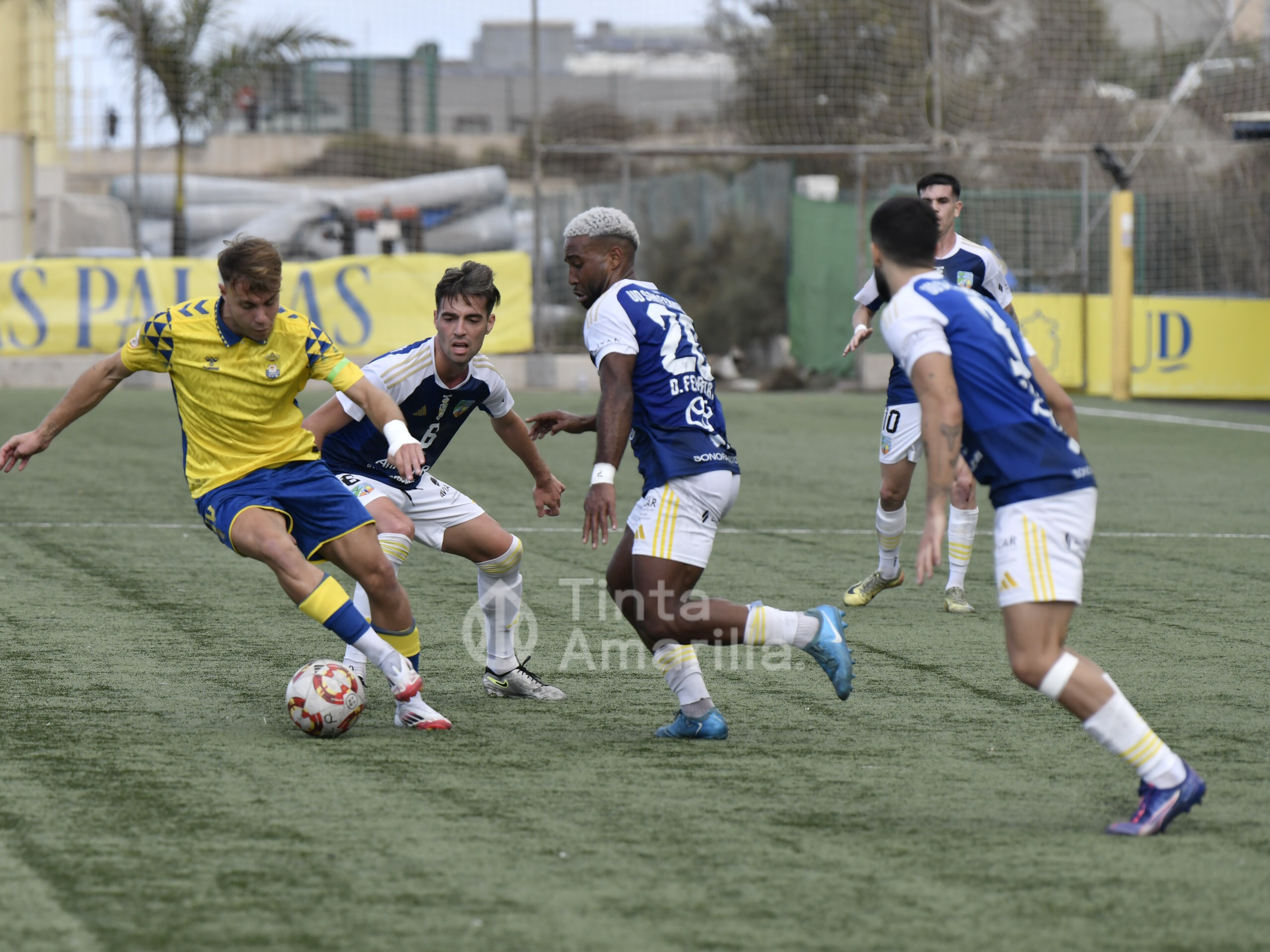 Las Palmas Atlético volvía a colocarse en la delantera de un partido en el que defendía una vez más su rol como líder de la categoría. El conjunto del Tablero metió un plus de intensidad tras el tanto en contra, aunque sin desnudar su habitual férreo sistema defensivo.