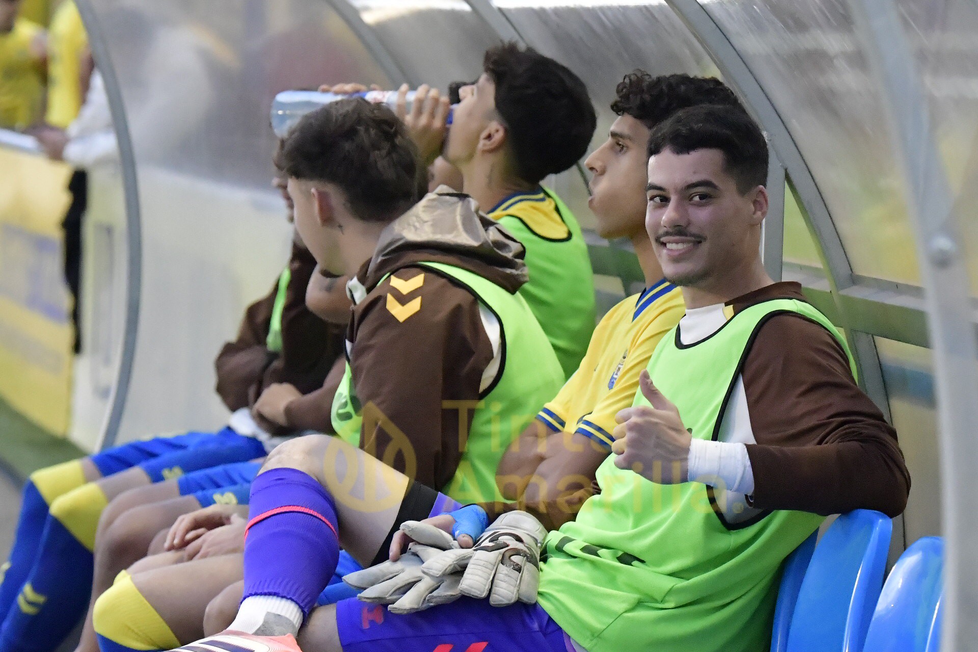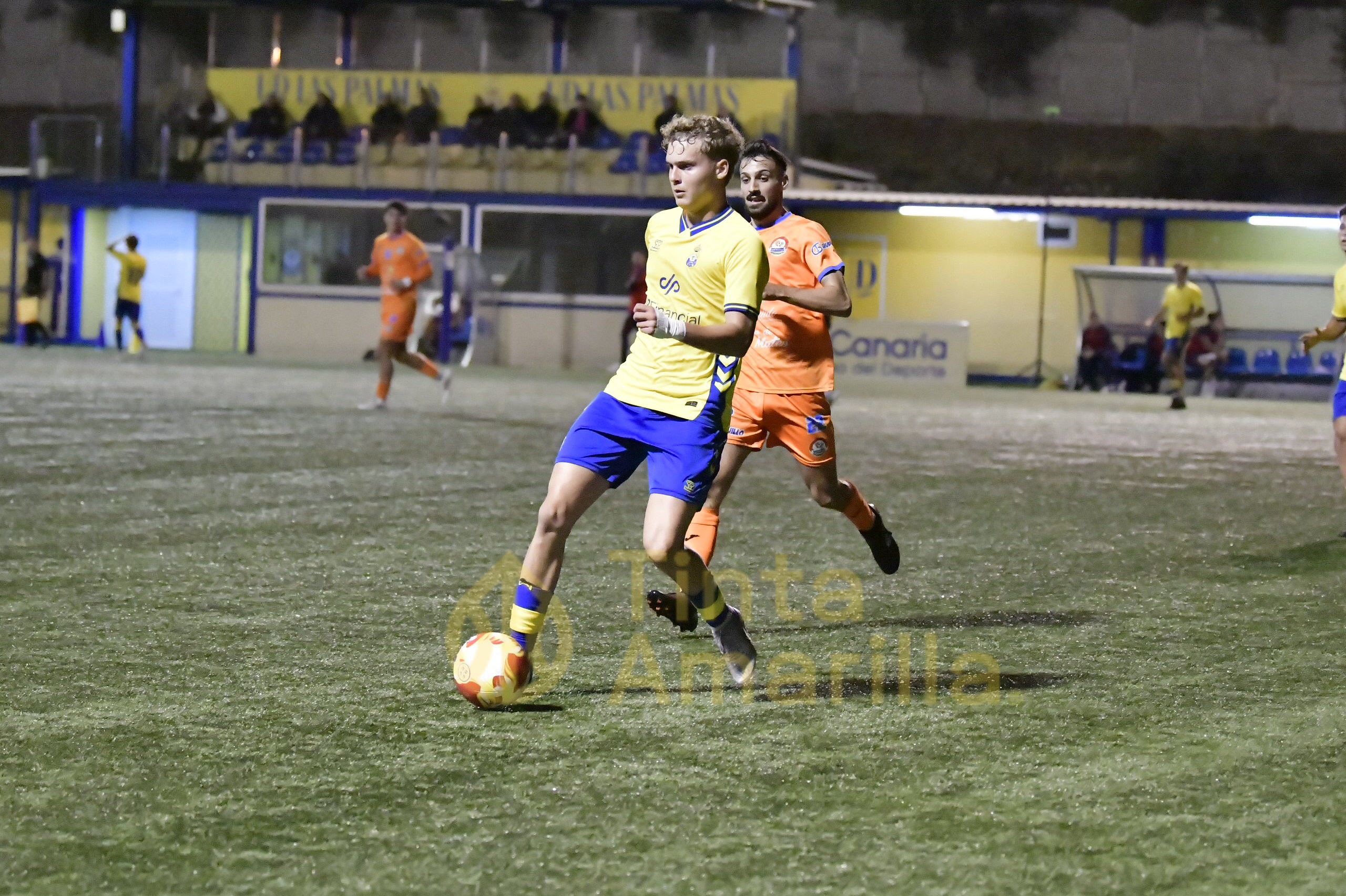 El encuentro del segundo filial grancanario se resolvió en una jugada de fortuna para el delantero Iker León, que ya lo había intentado en varias ocasiones con anterioridad. Un centro-chut suyo sorprendió al meta Gárate, que no pudo evitar la entrada del balón junto a un poste.