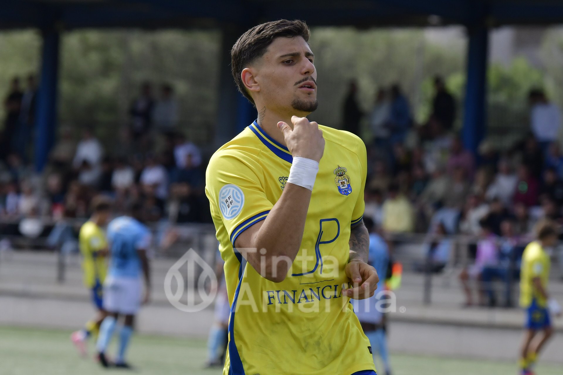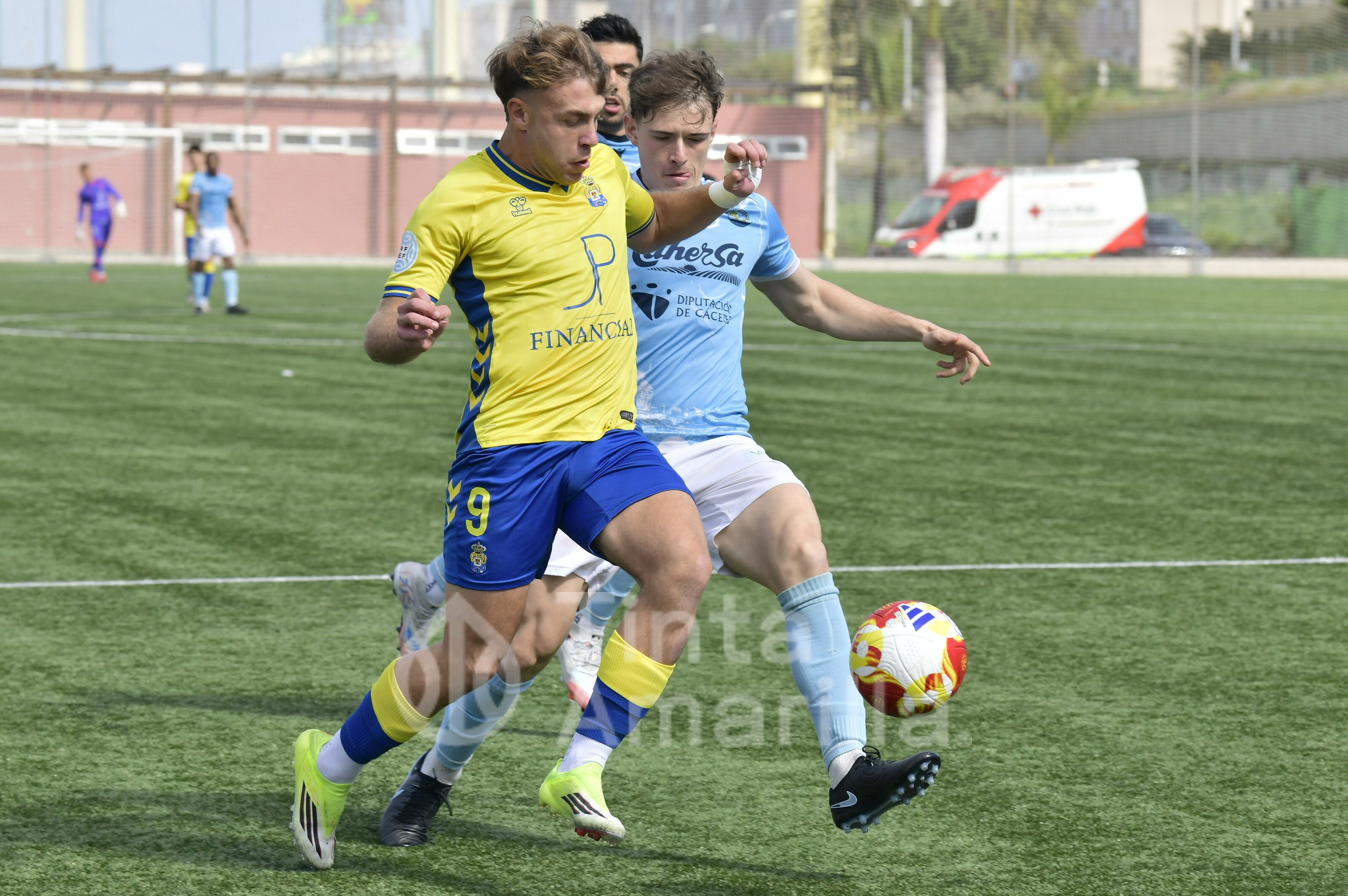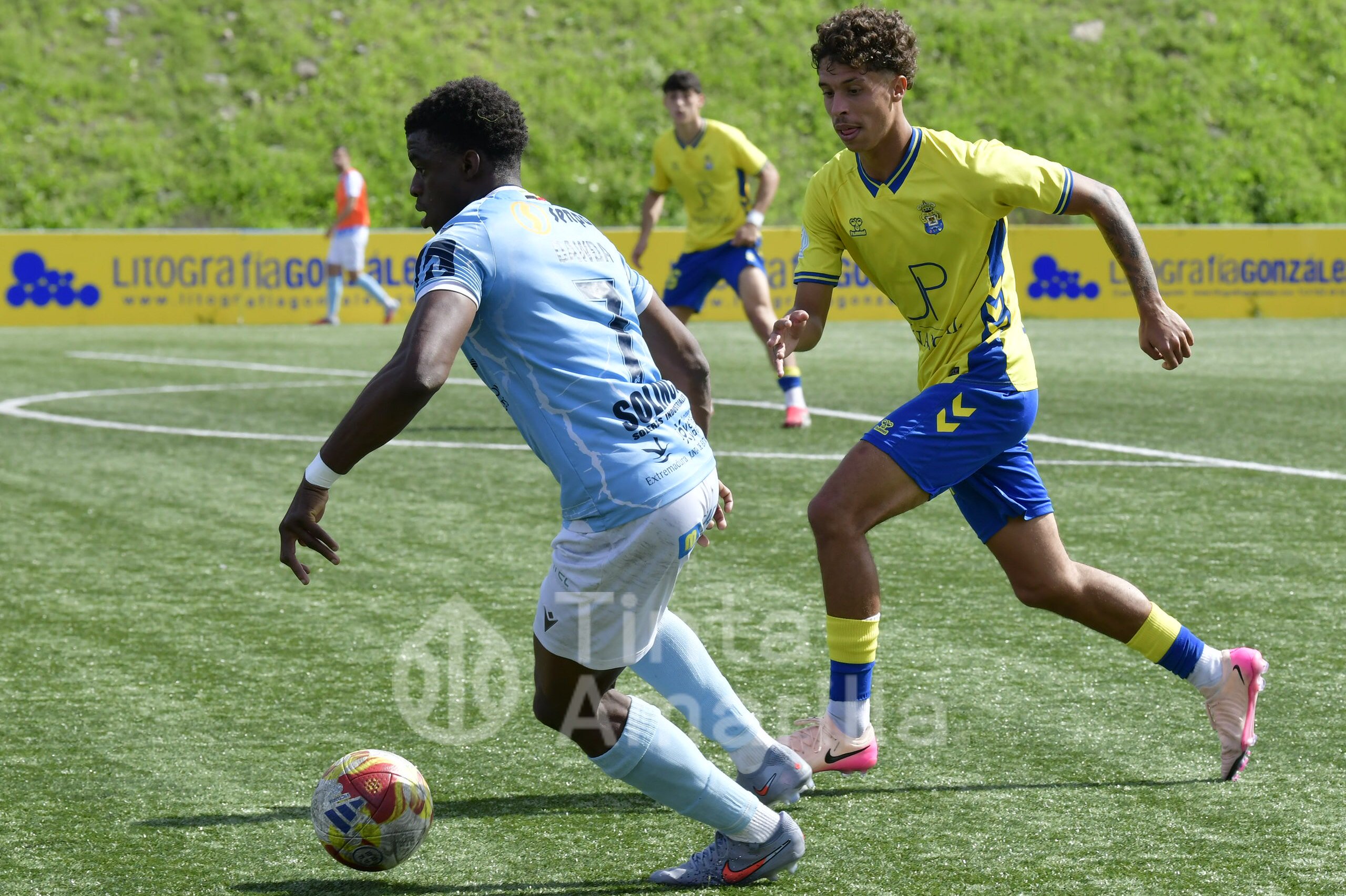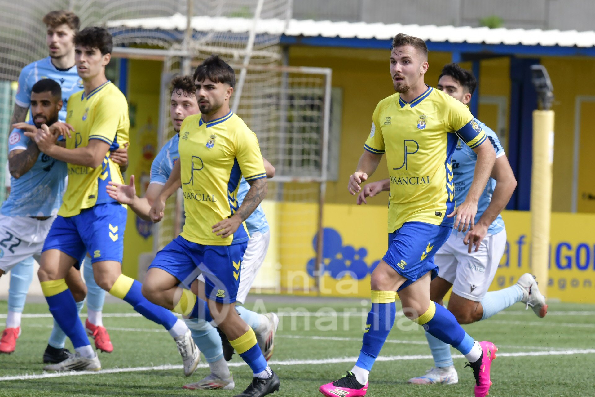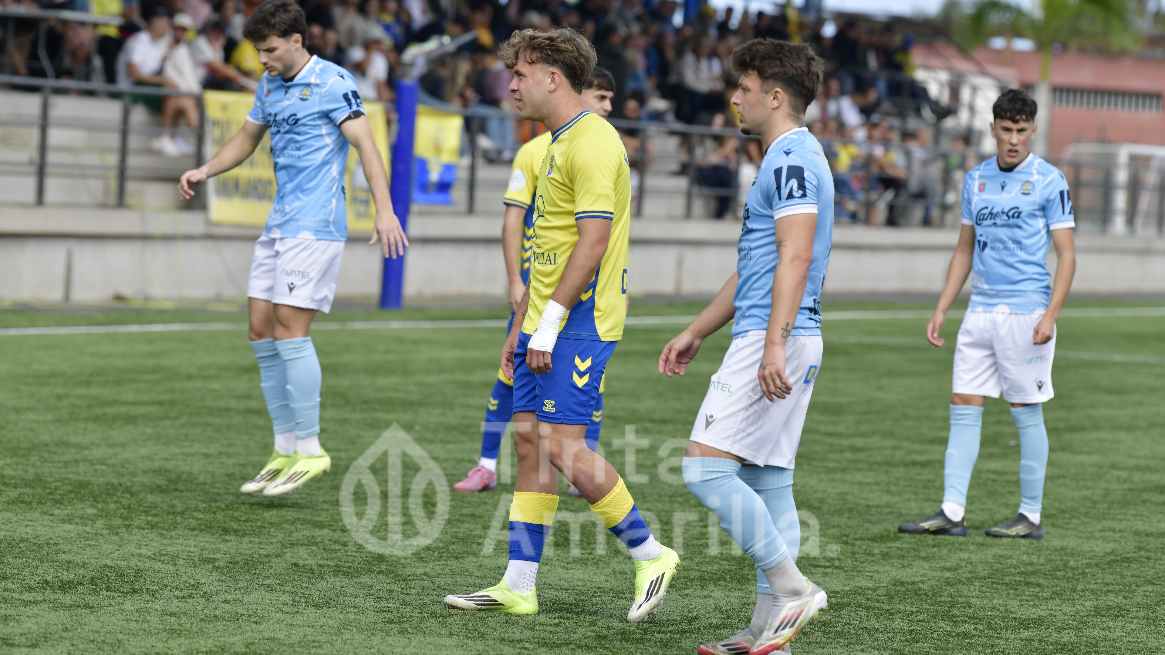 Las Palmas Atlético pudo, incluso, encauzar el marcador antes del descanso con dos claras ocasiones de Guedes y Valentín, con un disparo ajustado a un poste y un cabezazo salvado bajo palos por un defensa celeste respectivamente.