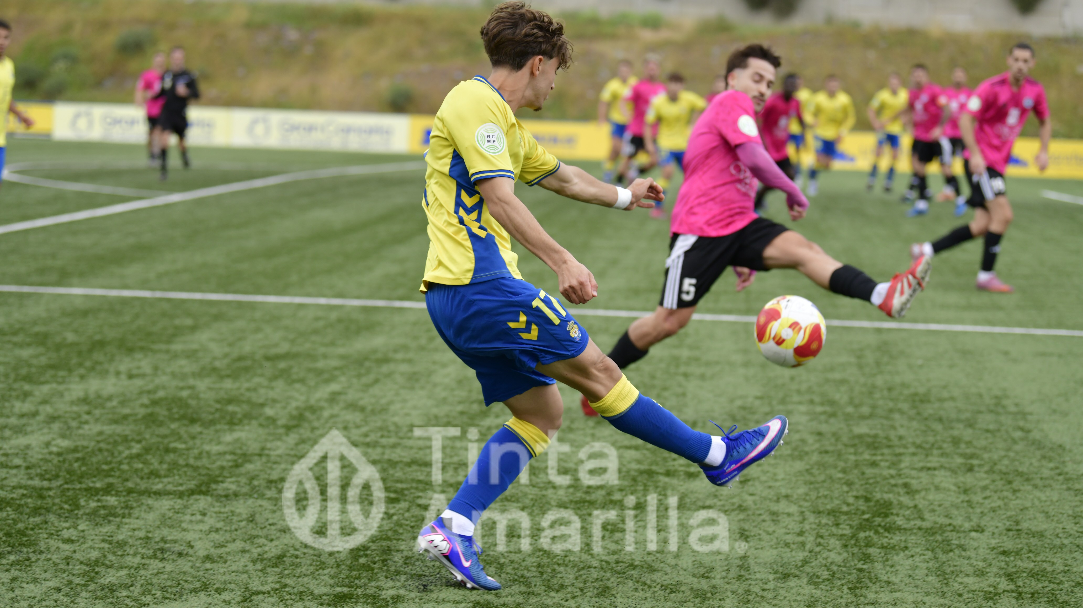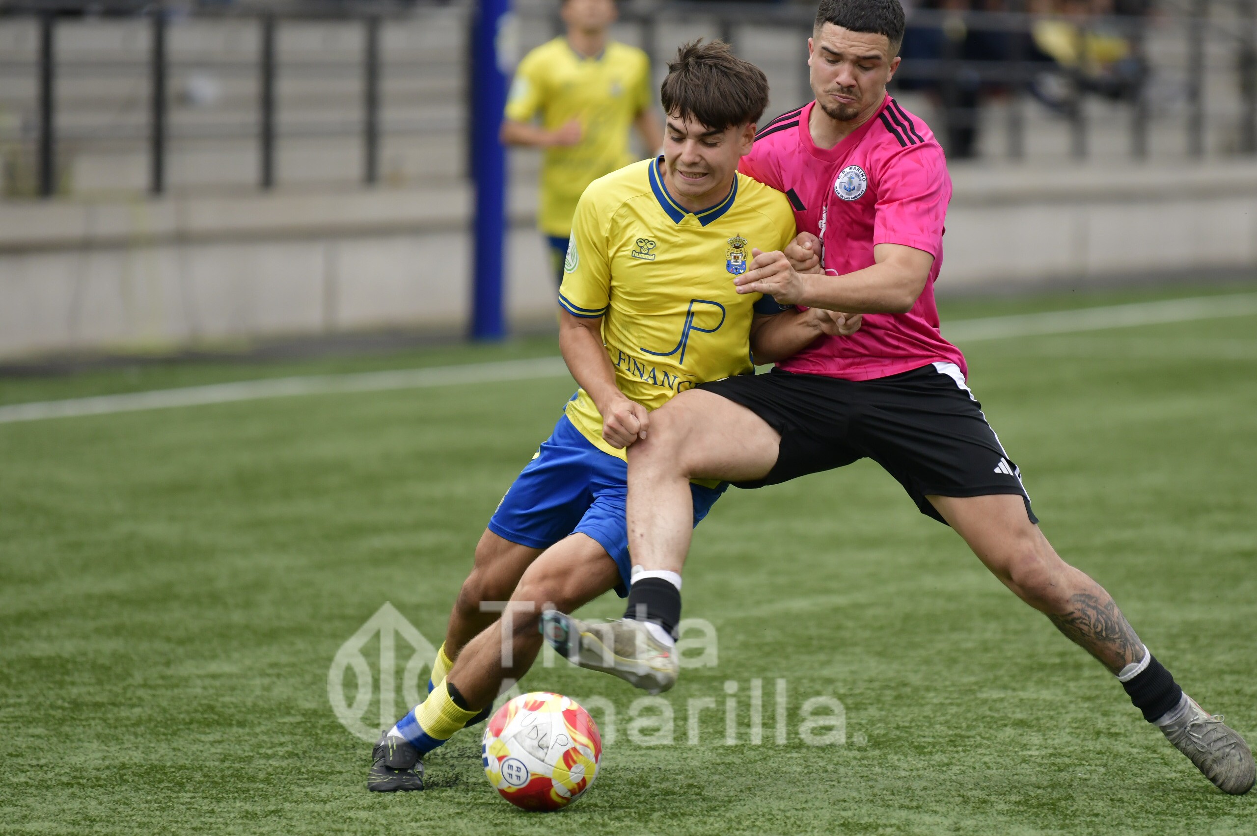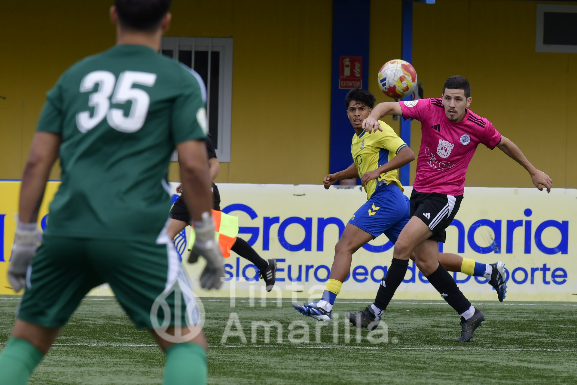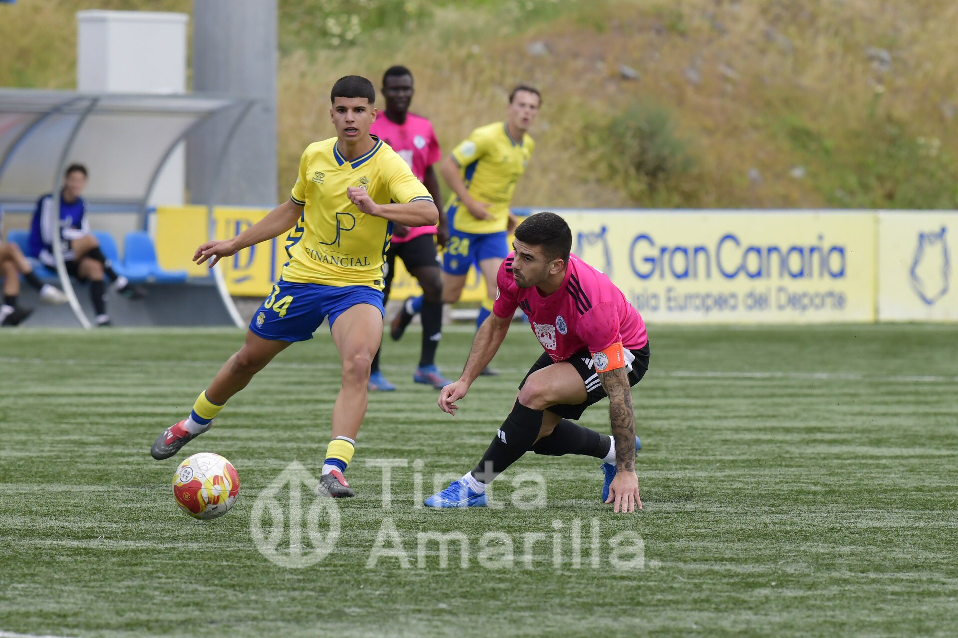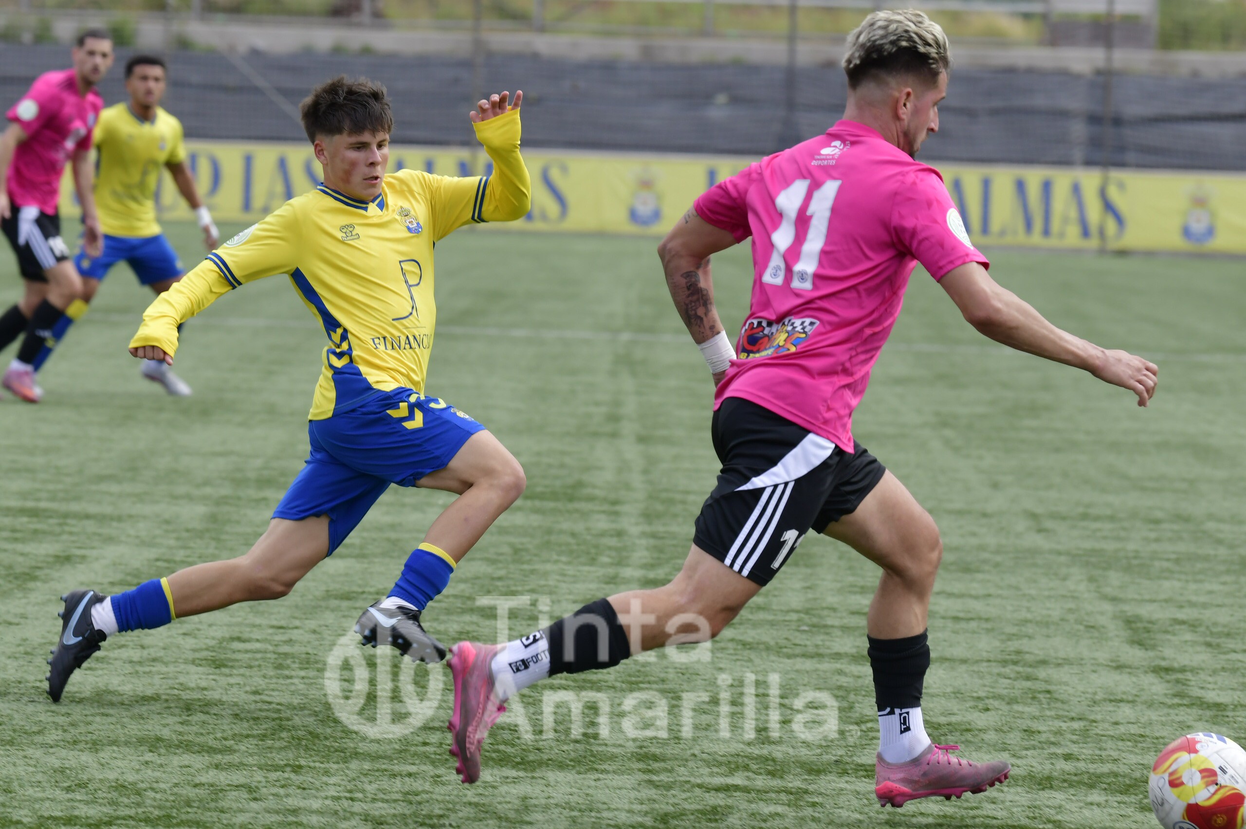 Pormenores: Encuentro de la jornada 25ª de Tercera RFEF, disputado en el Anexo al Estadio de Gran Canaria. Se guardó un minuto de silencio en memoria del colaborador del club amarillo, Tino Vega, y de la abuela del colegiado. Los futbolistas locales mostraron una camiseta de apoyo a Aaron Jorge, lesionado y operado de su rodilla derecha, presente en la grada. Debutaron en el filial los juveniles Jorge Cruz e Hidalgo. Jerediam López jugó su segund partido en Tercera RFEF, tras haber debutado contra el Mensajero la pasada semana.