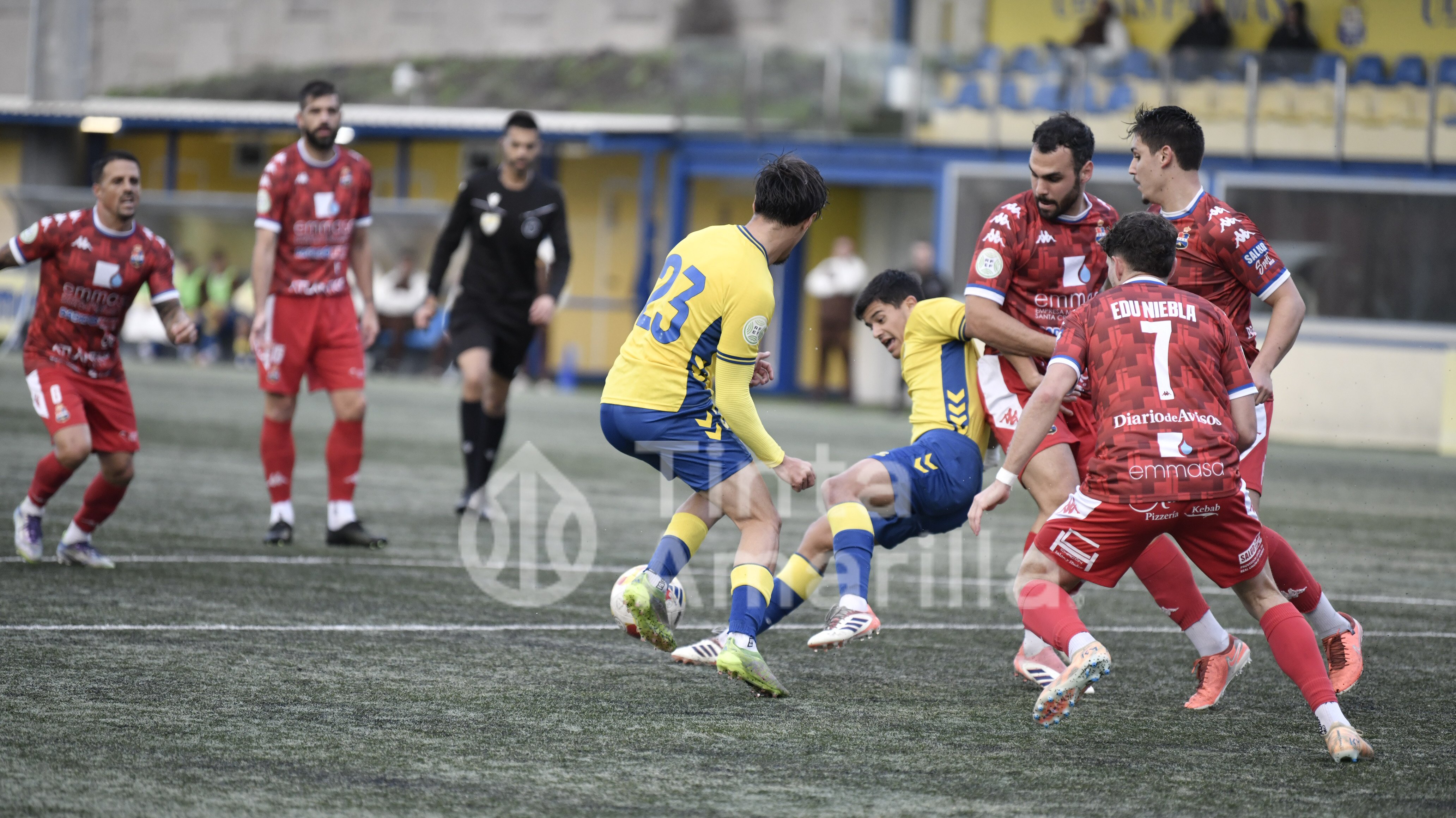 El Real Unión debió protegerse con nutridas líneas en la primera parte, cuando los amarillos combinaban y buscaban con criterio los perfiles por donde encontrar fisuras. Las jugadas se sucedían sin sobresaltos en las áreas hasta que Airan Díaz, el más incisivo del equipo local, logró que una de sus internadas acabara con éxito. El galdense escapó por la banda izquierda para colocar un balón caramelo aprovechado por su compañero Antonio Hernández.