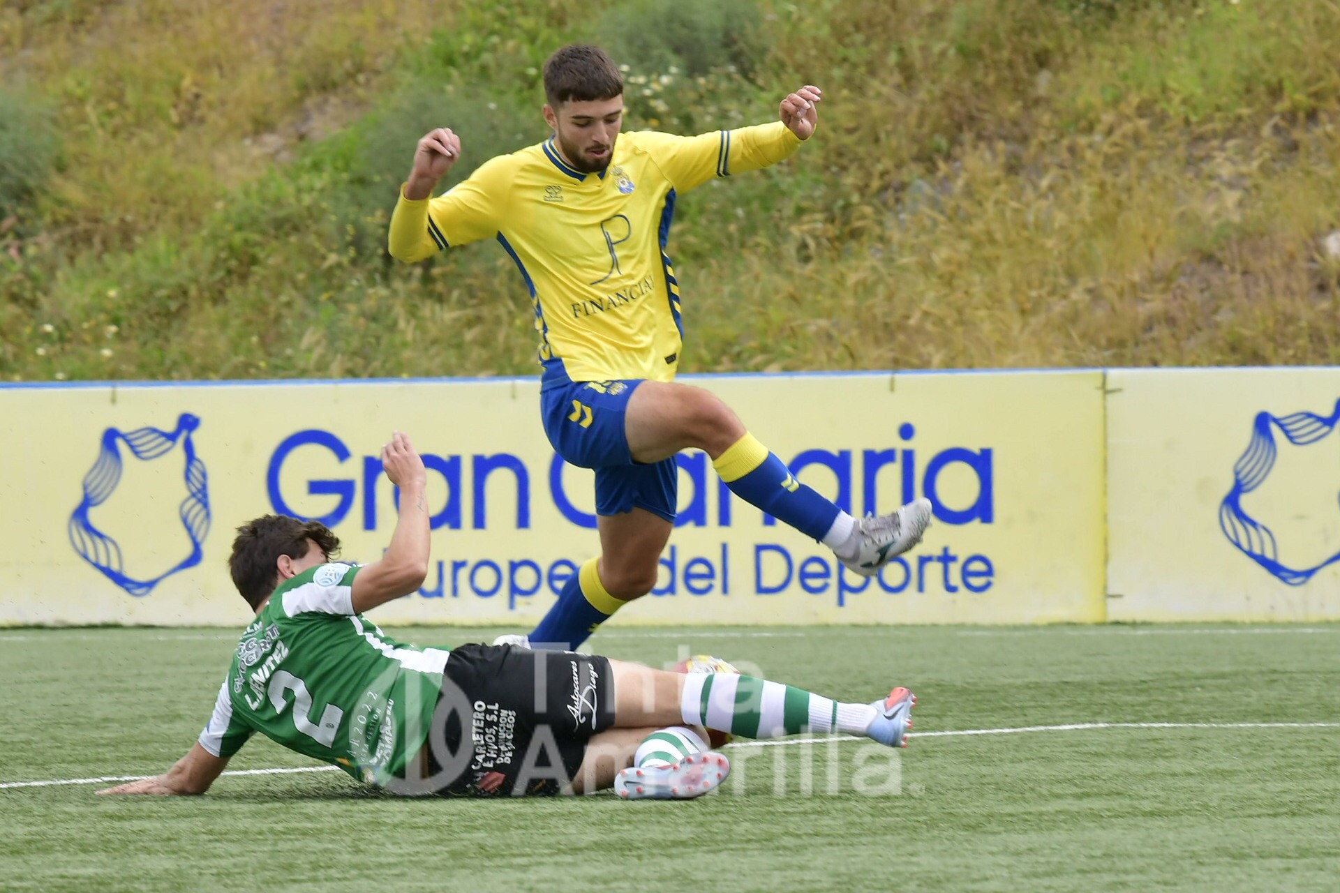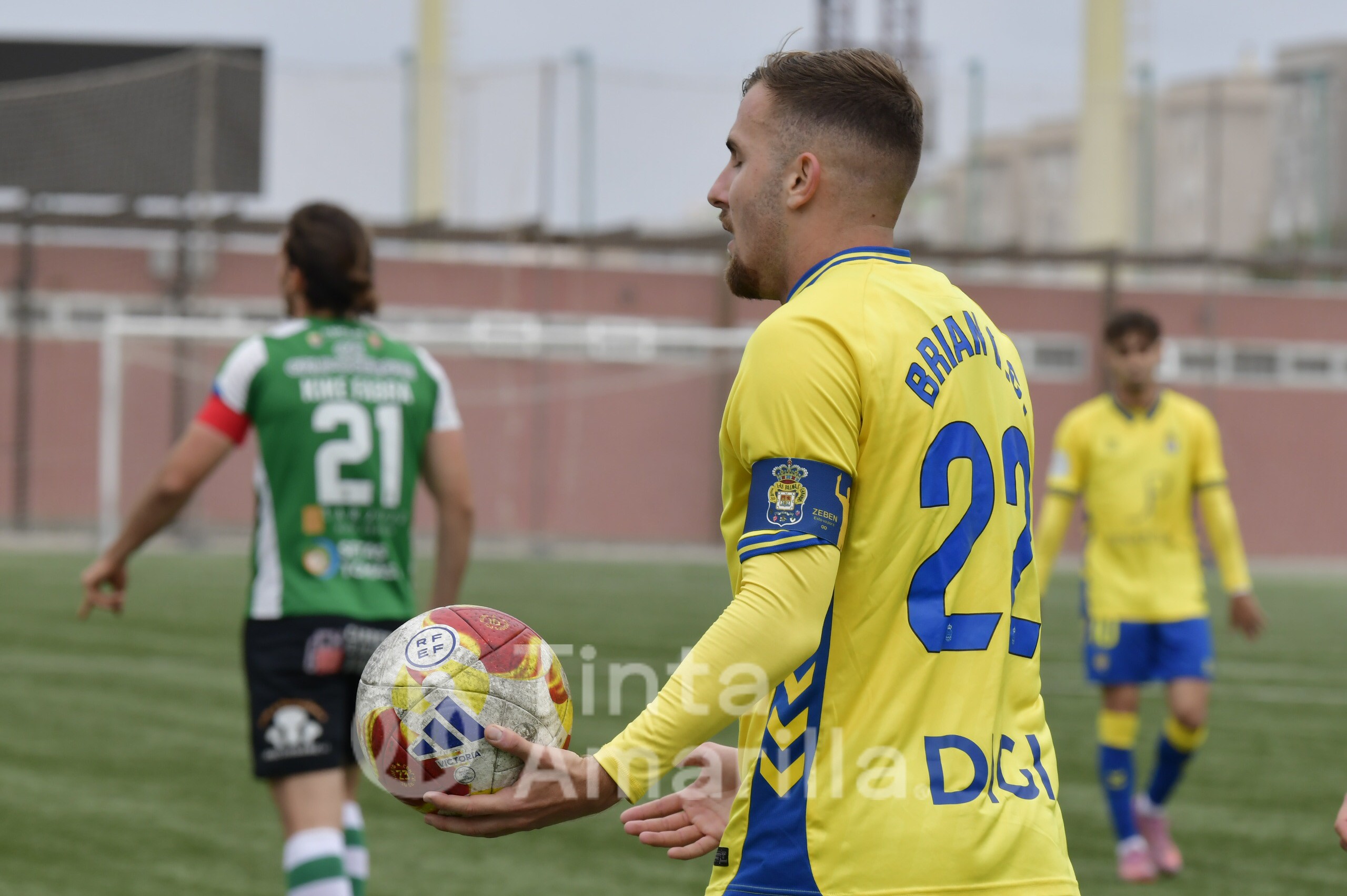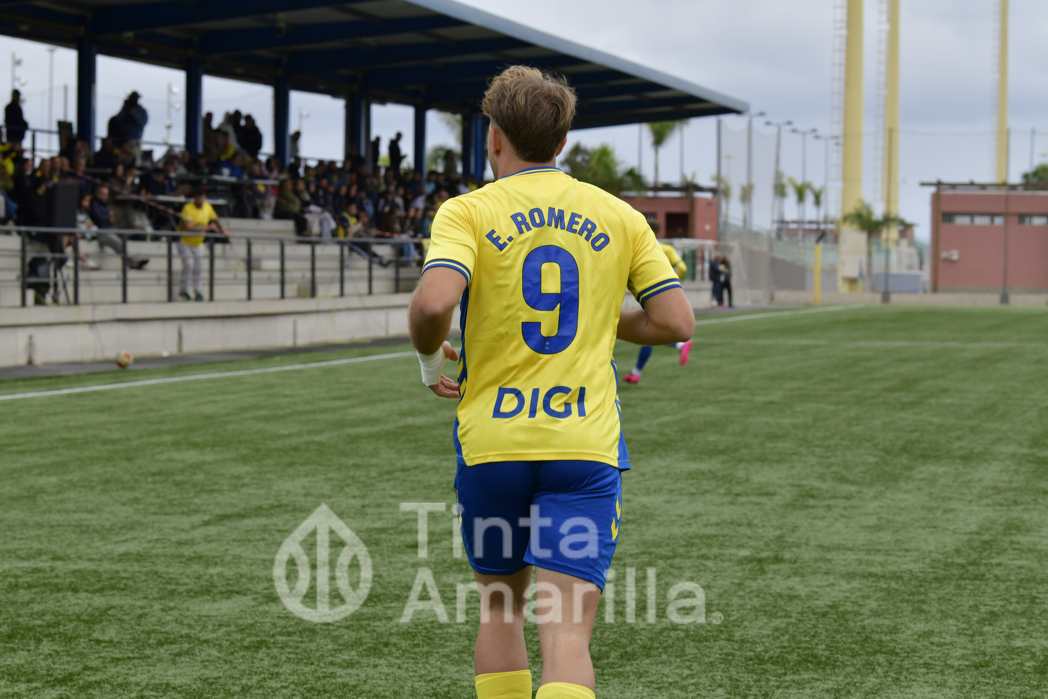 Alguna acción aislada de Johan y Elías era la respuesta entonces de Las Palmas Atlético, cuyo perfil de juego seguía ausente. La entrada de Cacho animó el juego de los amarillos, cediendo un balón que Elías remató junto al poste. Y en el 72, Loren Bianco golpeó en una disputa a Trespalacios. El colegiado observó el golpe en la cara y le mostró tarjeta roja directa, quedando con uno menos el Quintanar para el sprint final del encuentro.