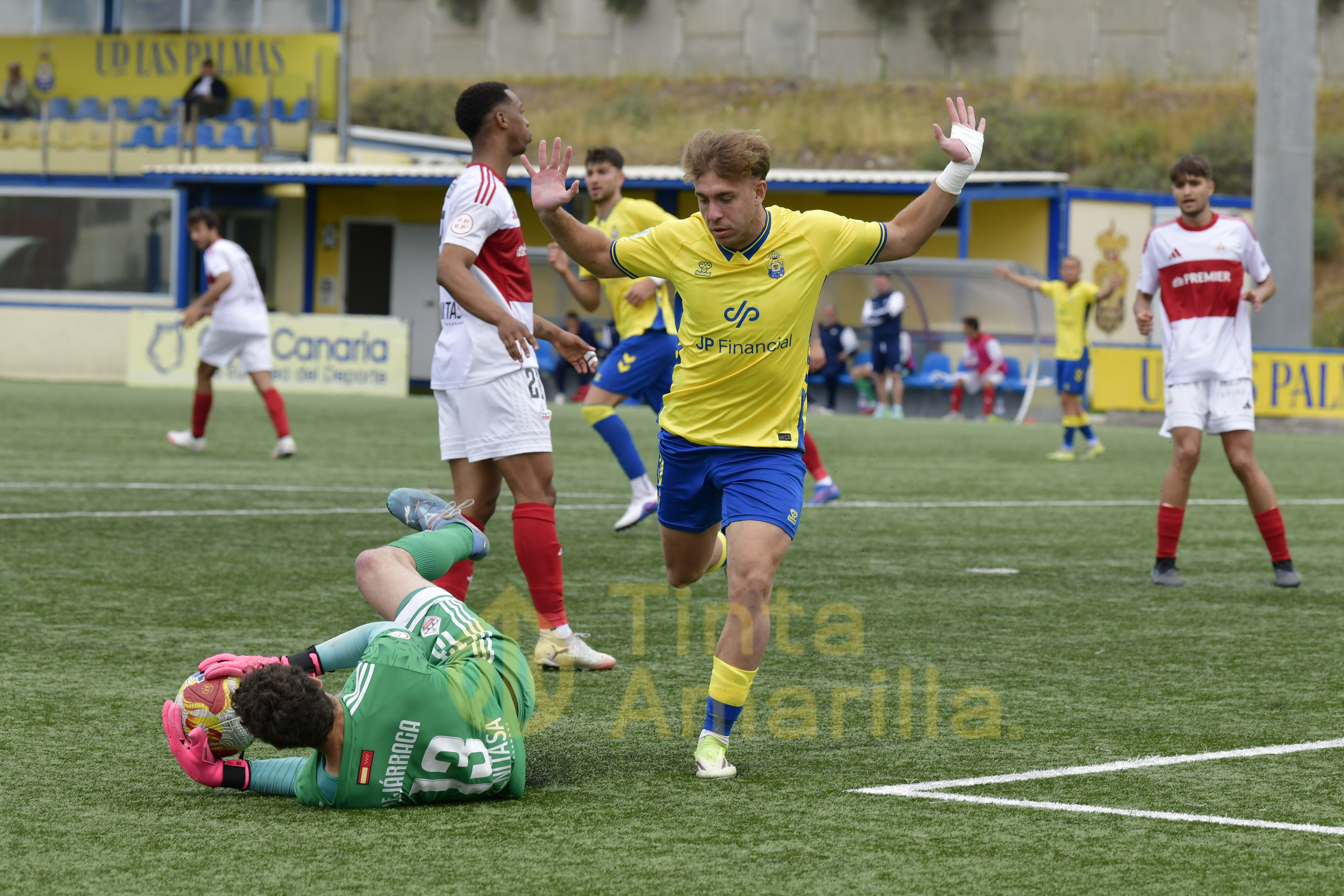 El filial entró con buen pie en el encuentro ante un rival que llegó a Gran Canaria con una racha sin conocer la derrota desde el 20 de diciembre de 2025 y con la condición de vicelíder. El fútbol de los amarillos era dinámico, amplio, con líneas de conexiones entre distintas piezas y con pisada en el área.