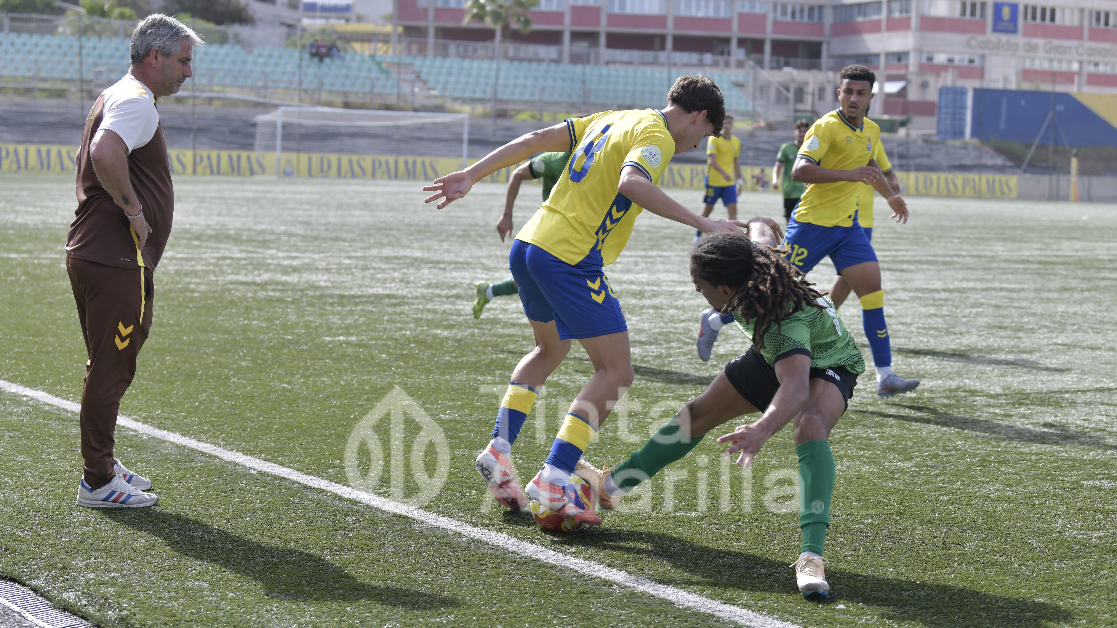 Pese a la inferioridad numérica, Las Palmas C desplegó su juego en zonas defensivas de un rival que se protegió con orden y serenidad para impedir más aproximaciones hasta el meta Roberto.