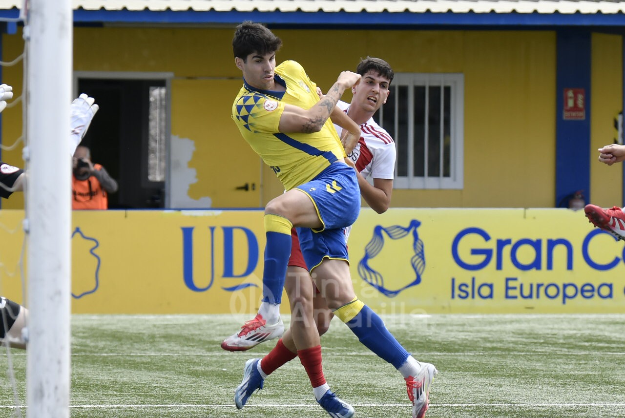 El 2-0 pudo llegar a los 18 minutos, tras otro balón profundo de Iván Medina. El zurdo grancanario encontró la cabeza de José Ángel, que prolongó el pase para un disparo final de Diego Martín. El palmero chutó de volea, aunque el cuero en esta ocasión se fue por encima del larguero.