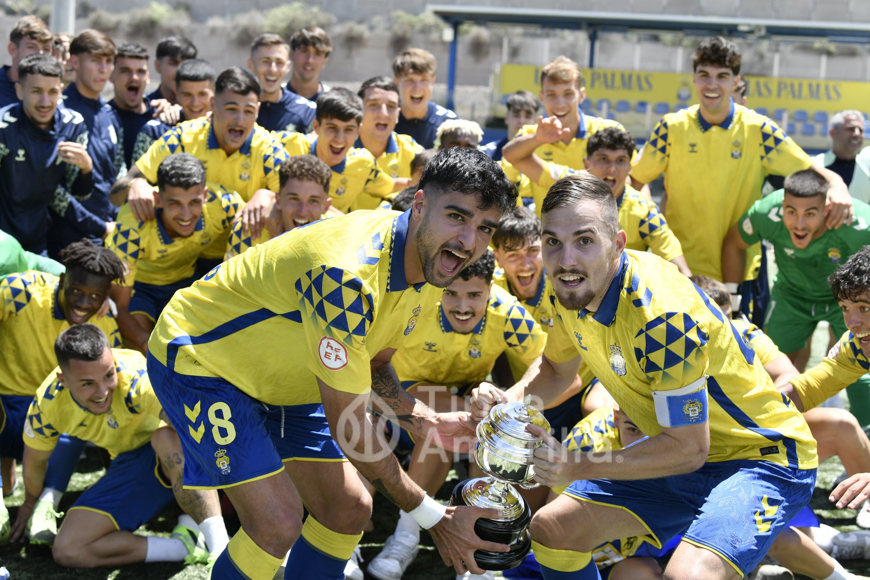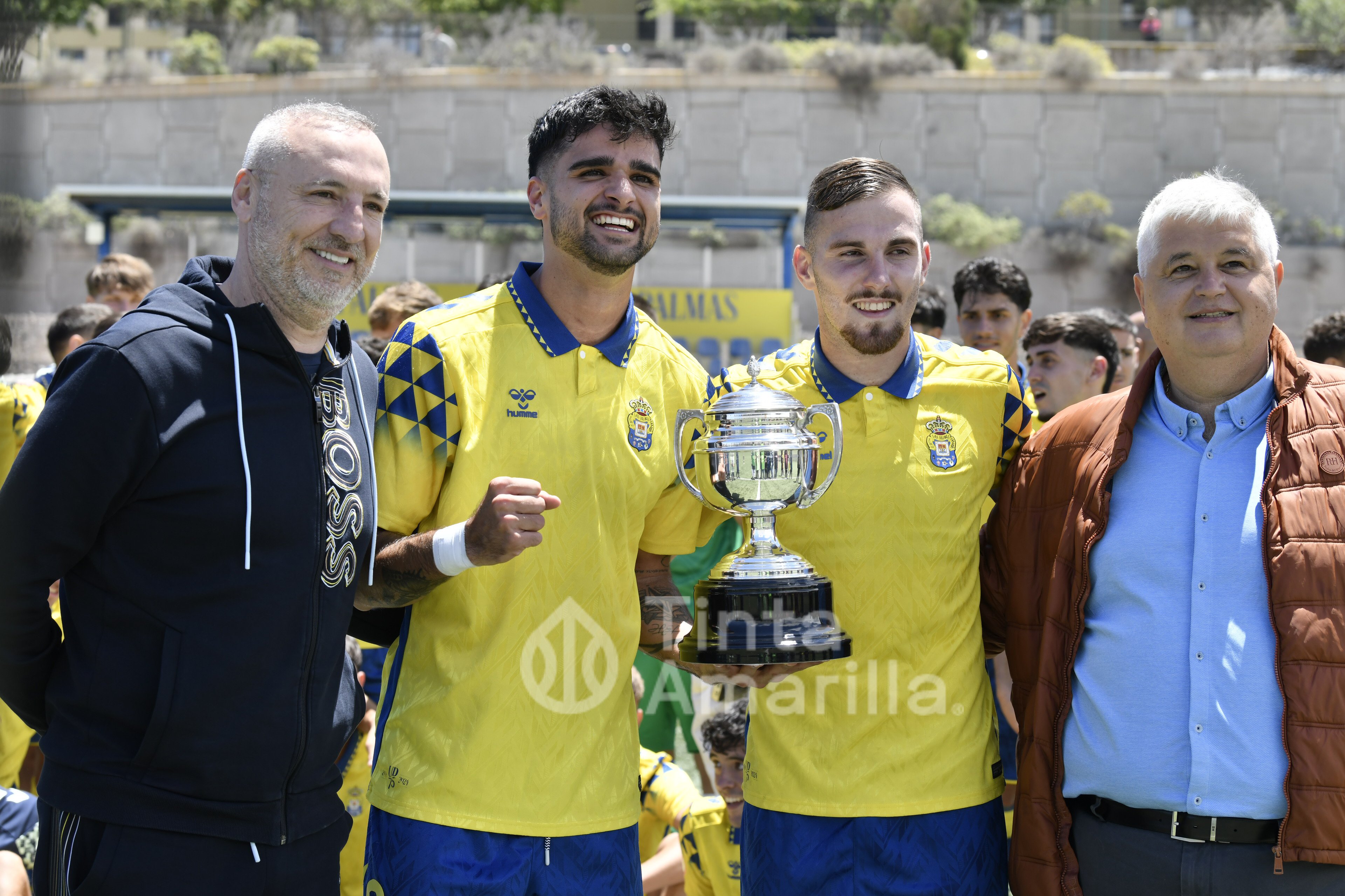 Pormenores: Partido de la penúltima jornada del grupo canario de Tercera RFEF, disputado en el Estadio Anexo al Gran Canaria con gran ambiente en gradas y alrededores. Los conjuntos juveniles B y C de la UD Las Palmas recibieron de manos de los dirigentes de la Federación de Las Palmas las copas de |