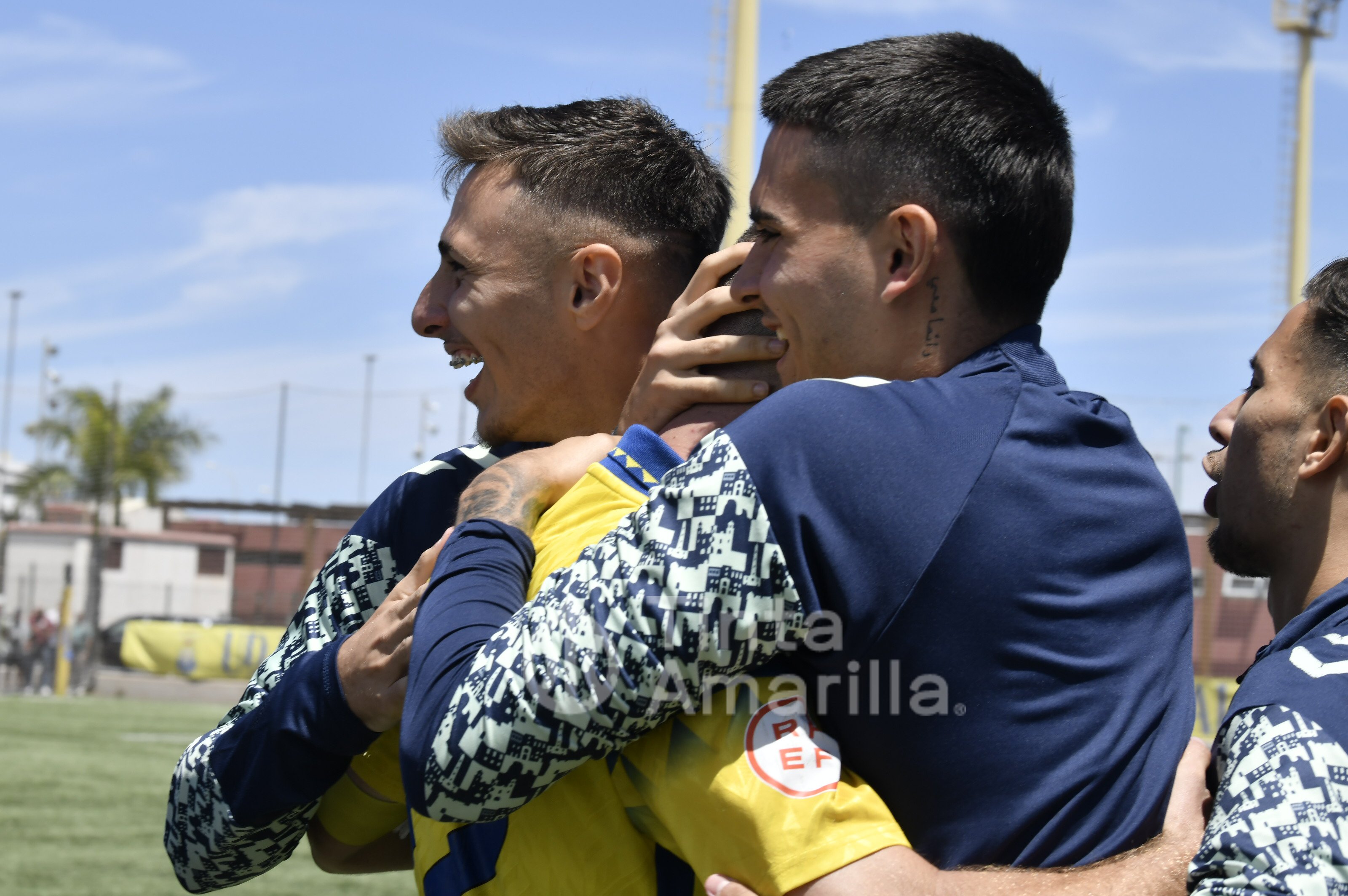 Las Palmas Atlético encontró pronto el balón y, con él, el 1-0. Los amarillos salieron con determinación al campo y crearon las primeras aproximaciones. A los 3 minutos un zaguero salvó el posible remate del activo Iván Medina, que se movía con soltura entre líneas. Y él fue precisamente el creador de la jugada del 1-0, con pase a Elías y cesión final para que Omar rematara en carrera a las redes.