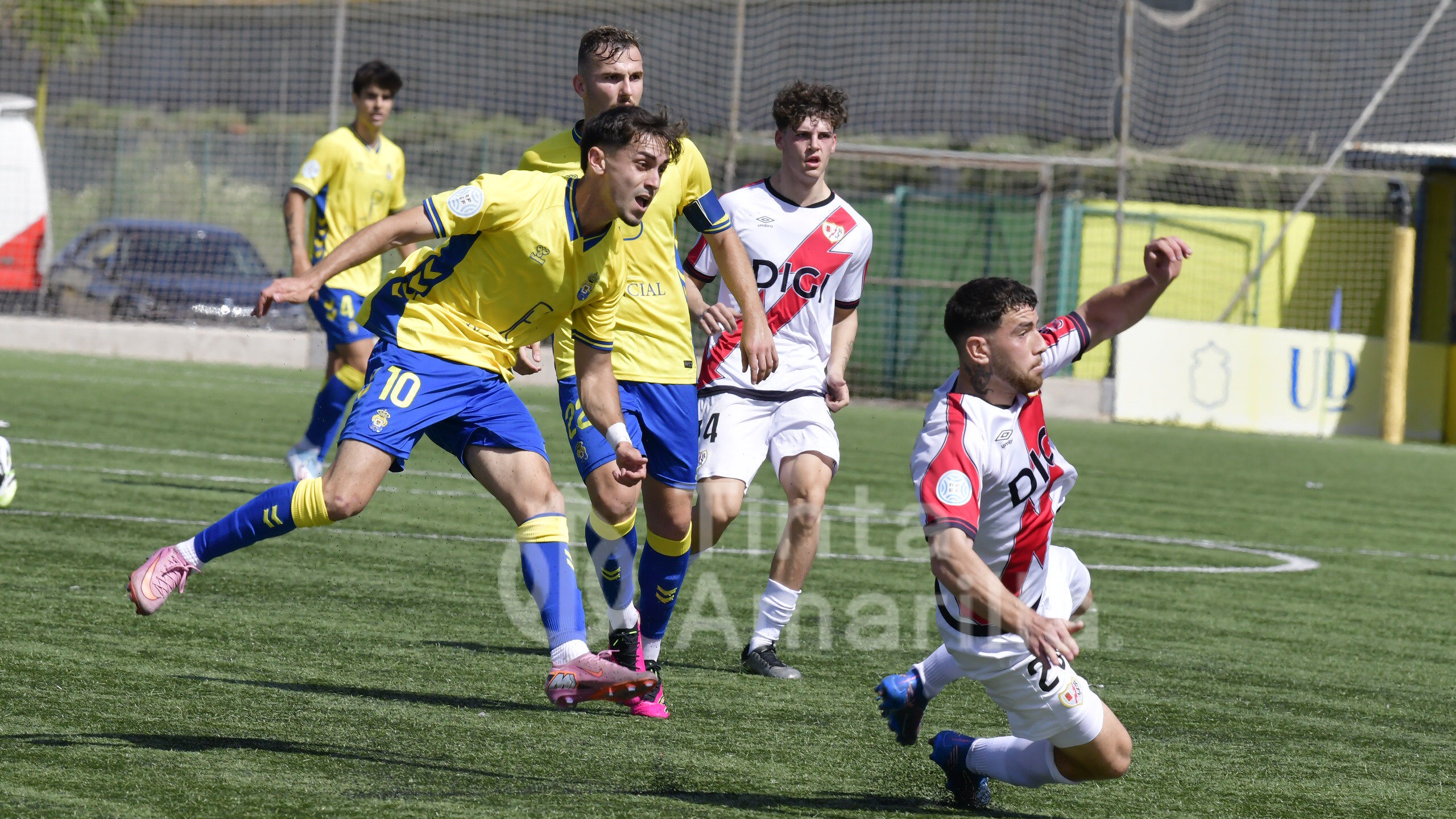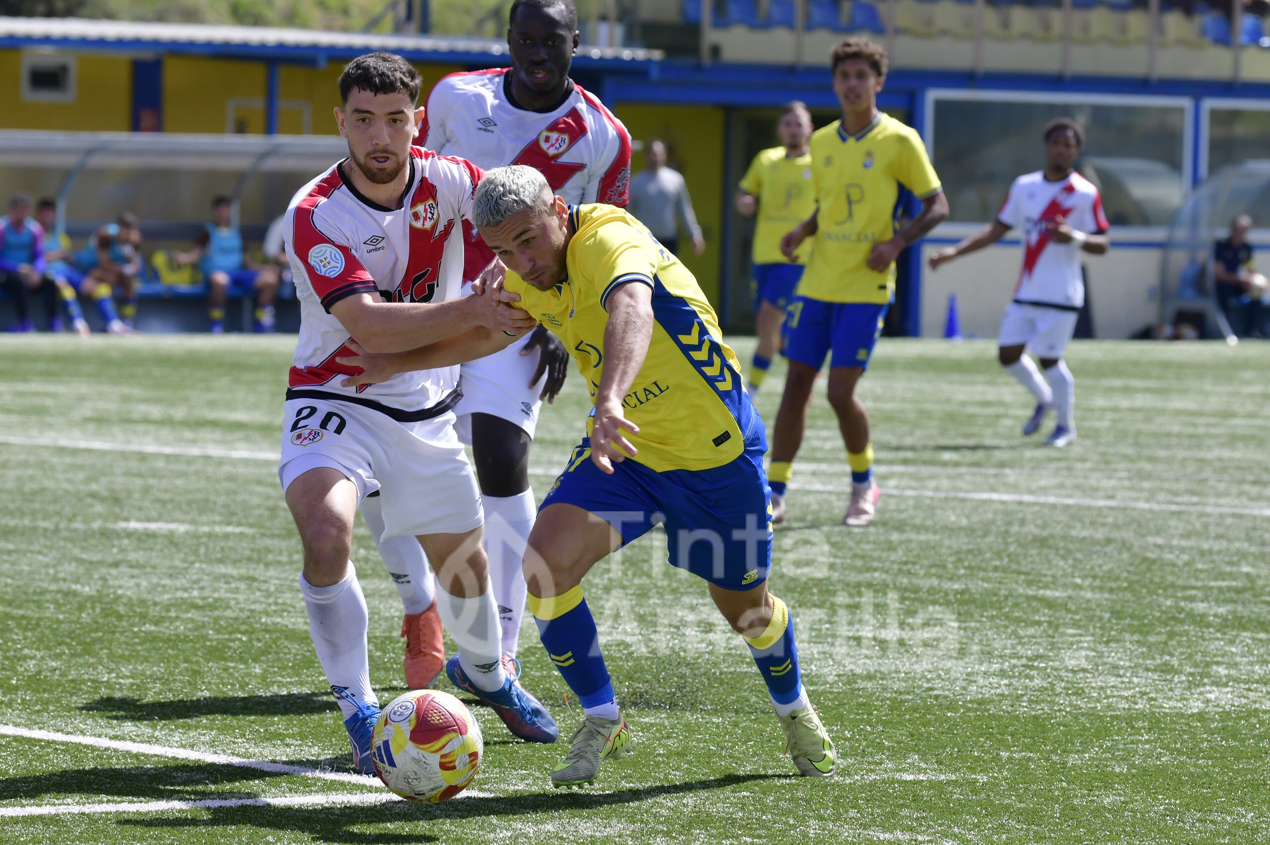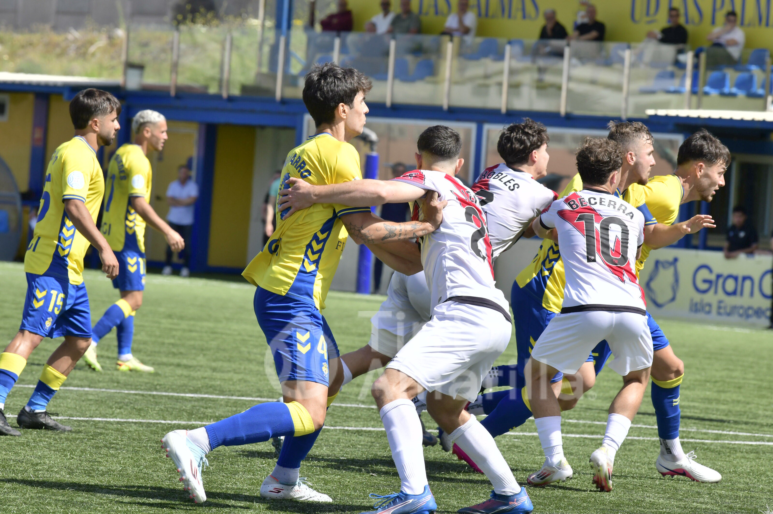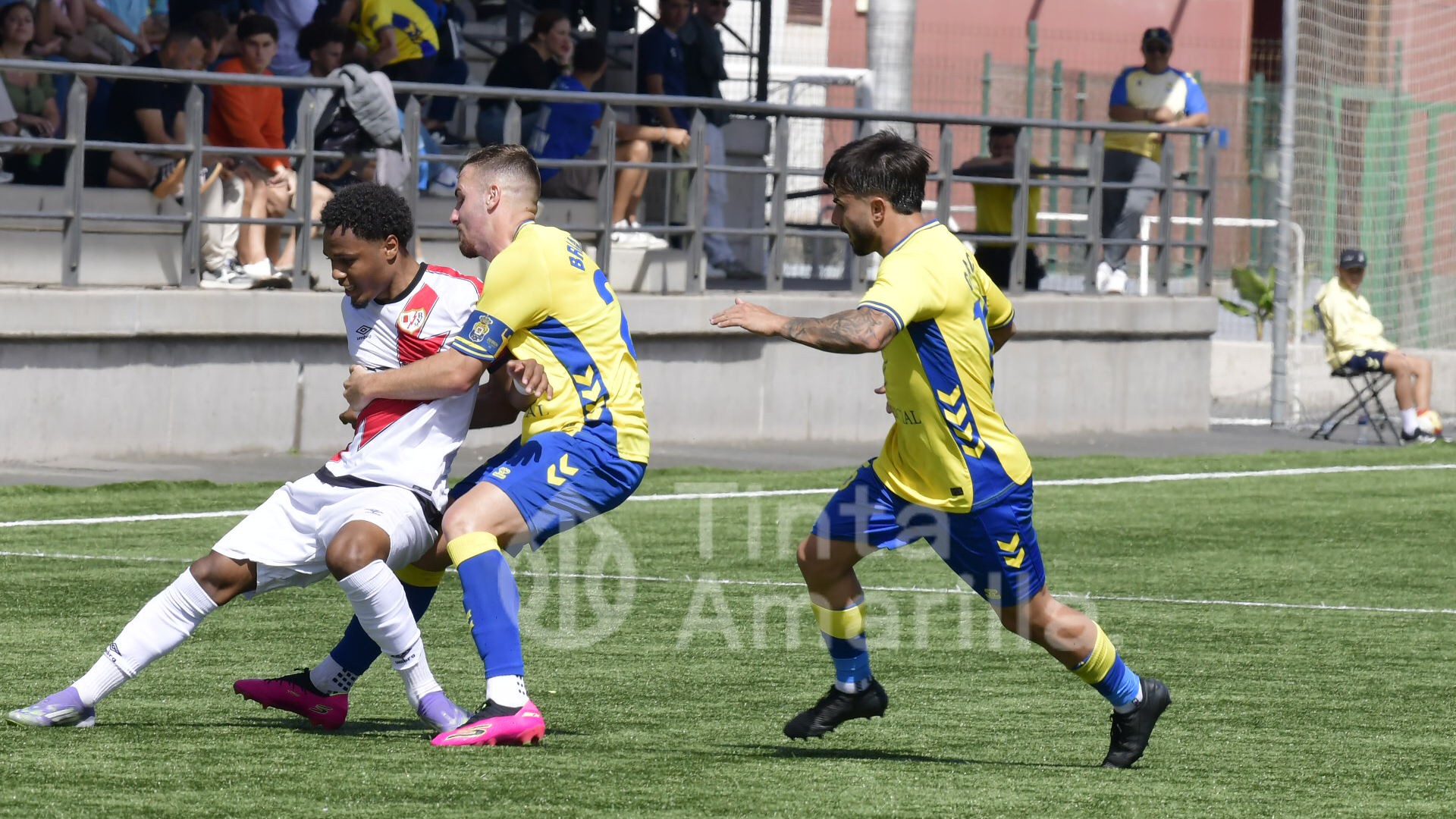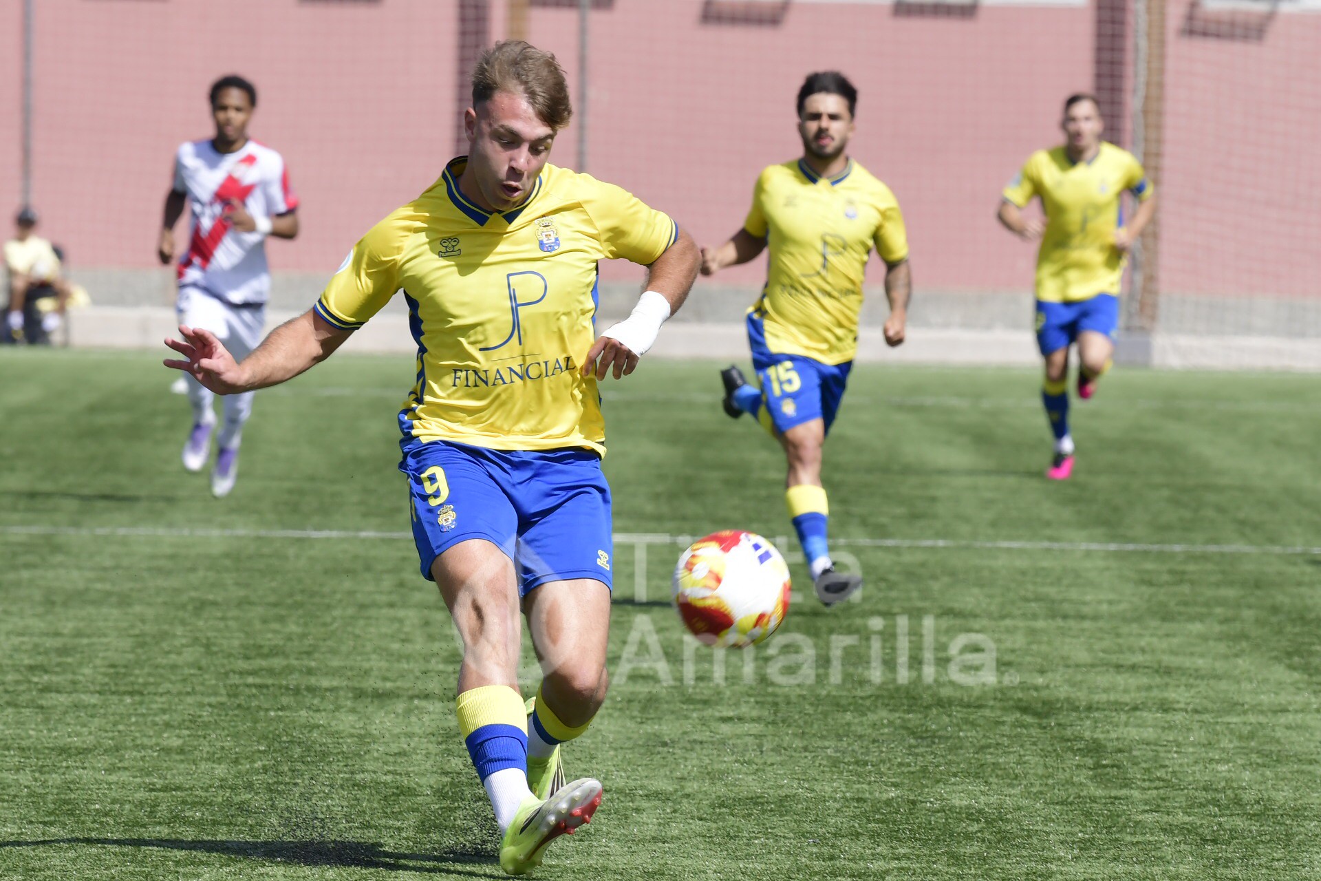 Las Palmas Atlético logró este domingo una victoria muy importante sobre el filial del Rayo Vallecano (2-0). Los tres puntos acercan un poco más a la permanencia a los amarillos, que ofrecieron un partido de notas ofensivas de relieve y dos goles que llegaron en la recta final. Pero cualquier marcador por encima de los dos tantos nada habría extrañado, por la intención ofensiva constante a lo largo de toda la mañana.