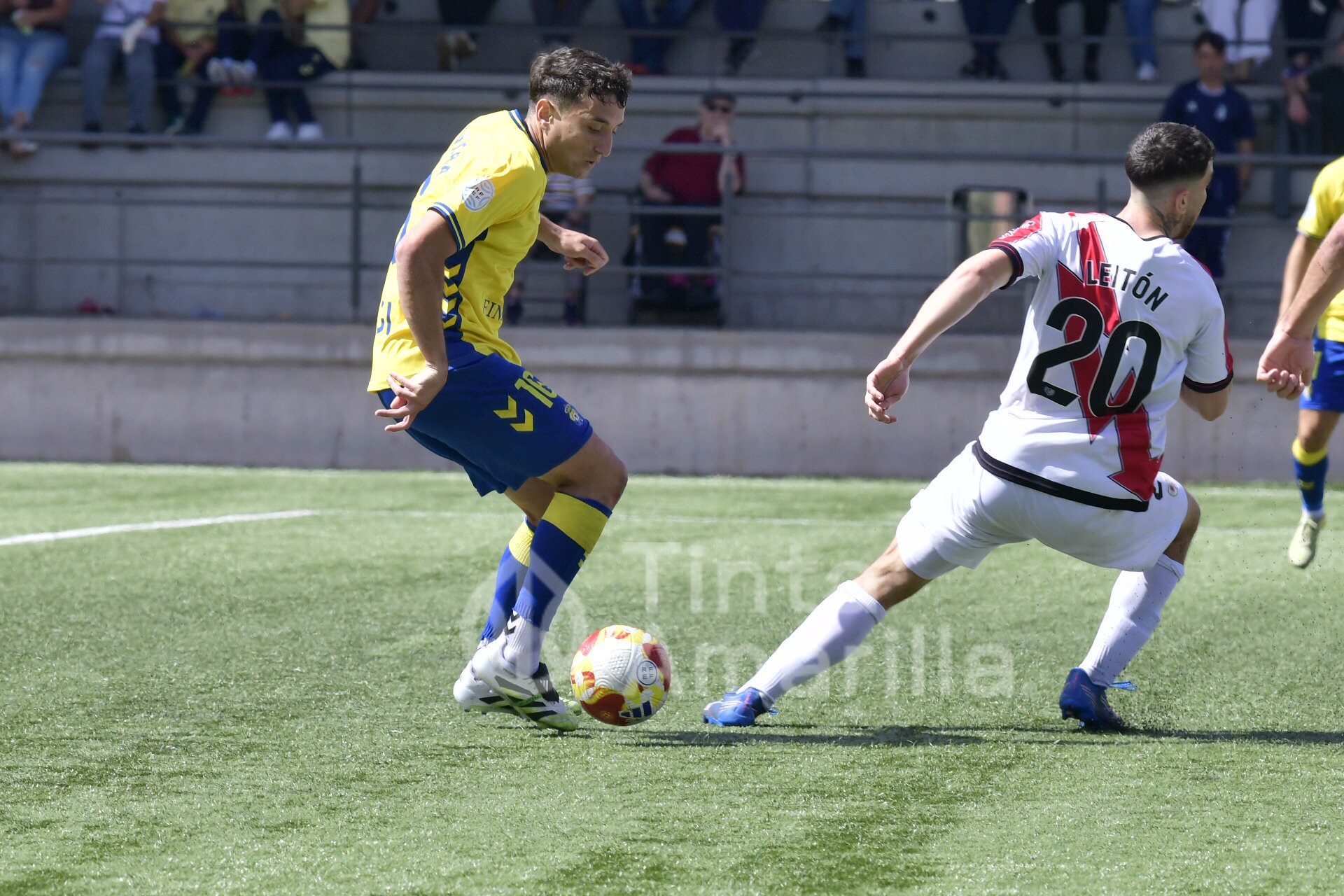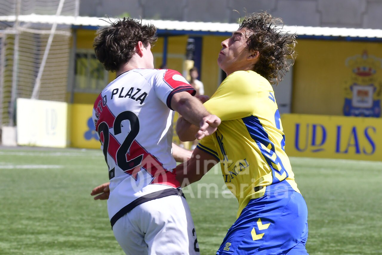 Las Palmas Atlético logró este domingo una victoria muy importante sobre el filial del Rayo Vallecano (2-0). Los tres puntos acercan un poco más a la permanencia a los amarillos, que ofrecieron un partido de notas ofensivas de relieve y dos goles que llegaron en la recta final. Pero cualquier marcador por encima de los dos tantos nada habría extrañado, por la intención ofensiva constante a lo largo de toda la mañana.