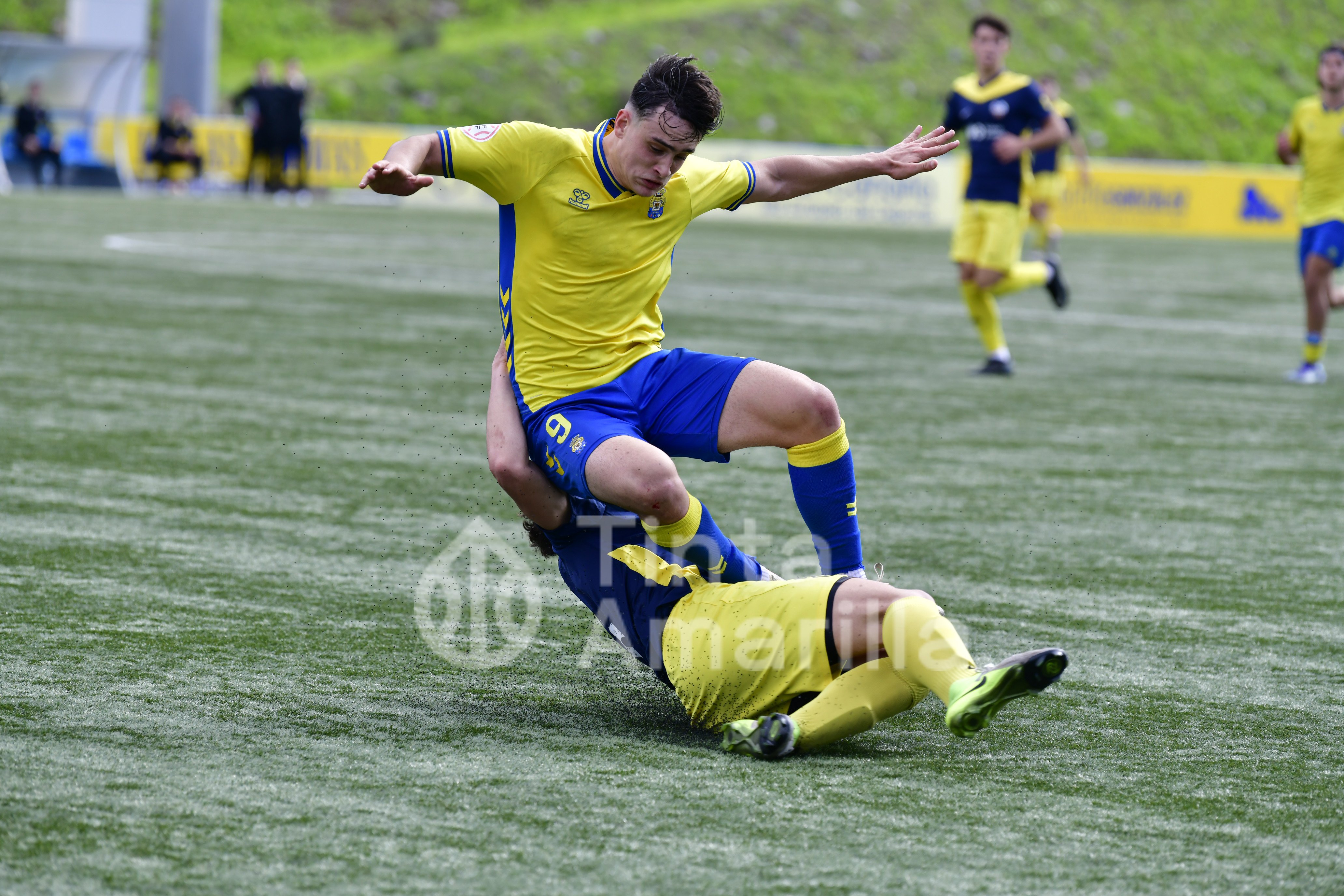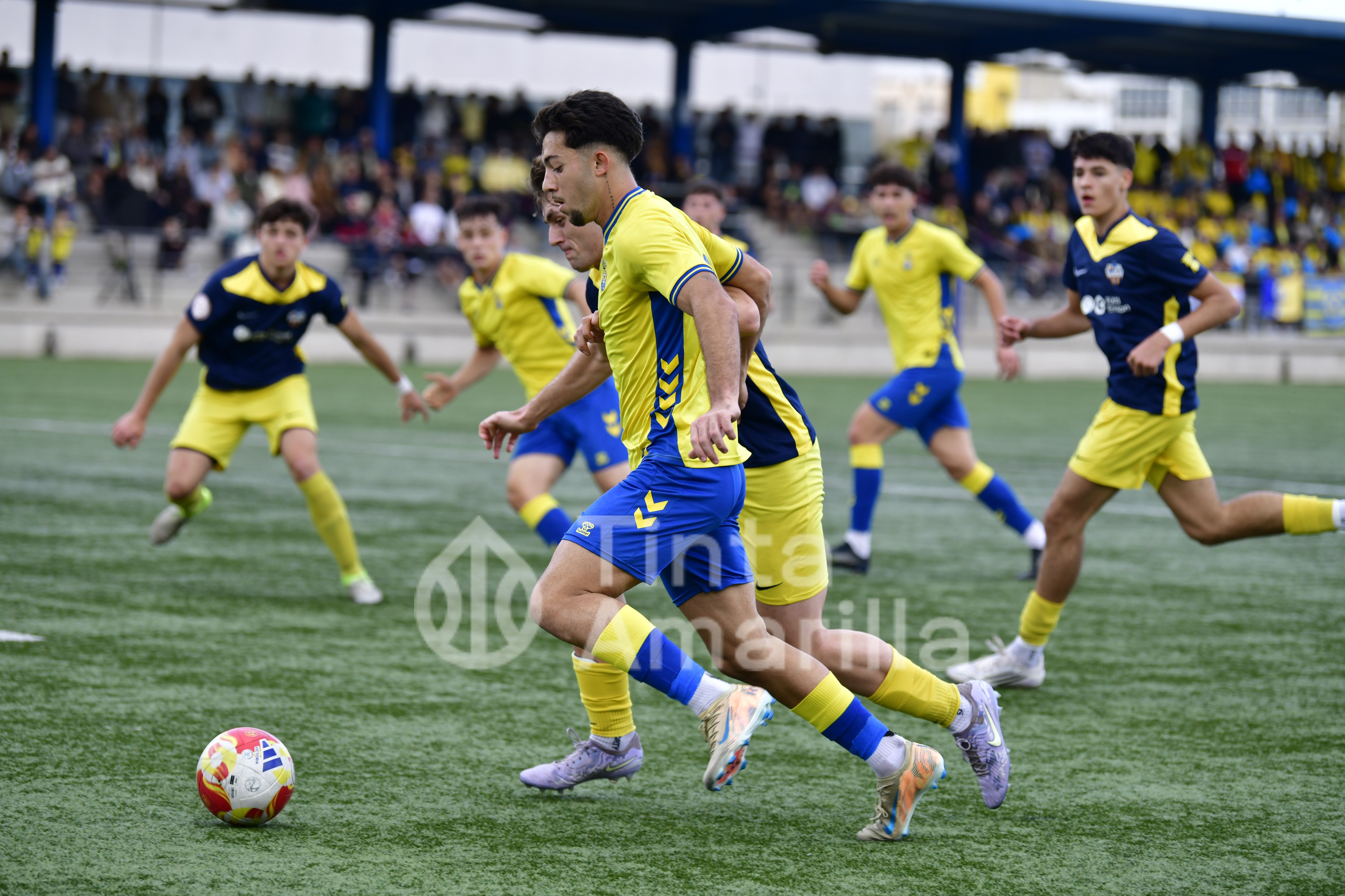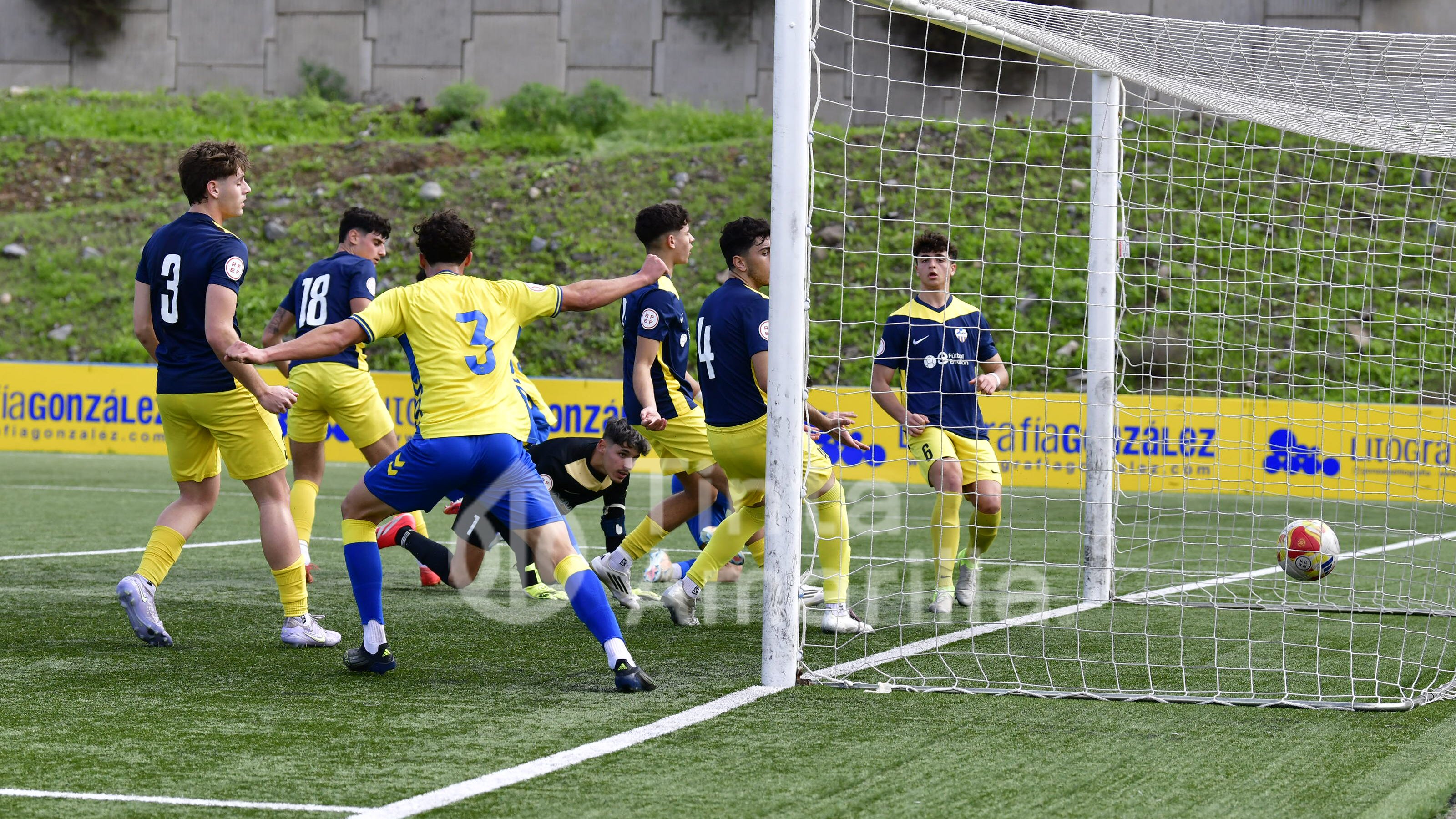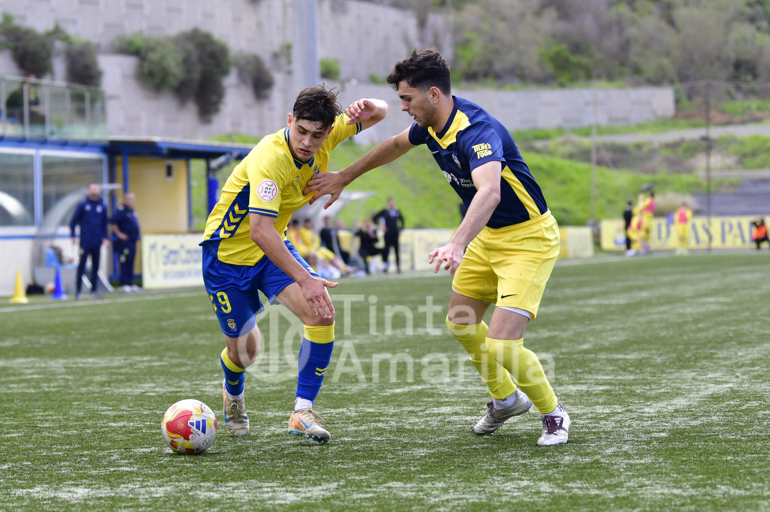 El filial amarillo pudo irse al vestuario con alguna renta más, sin sufrir en aspecto alguno en la faceta defensiva. Las dos mejores oportunidades fueron obras de Adrián Monzón (robo y disparo que rechazó el portero) y Aimar Domínguez (tanto anulado por fuera de juego).