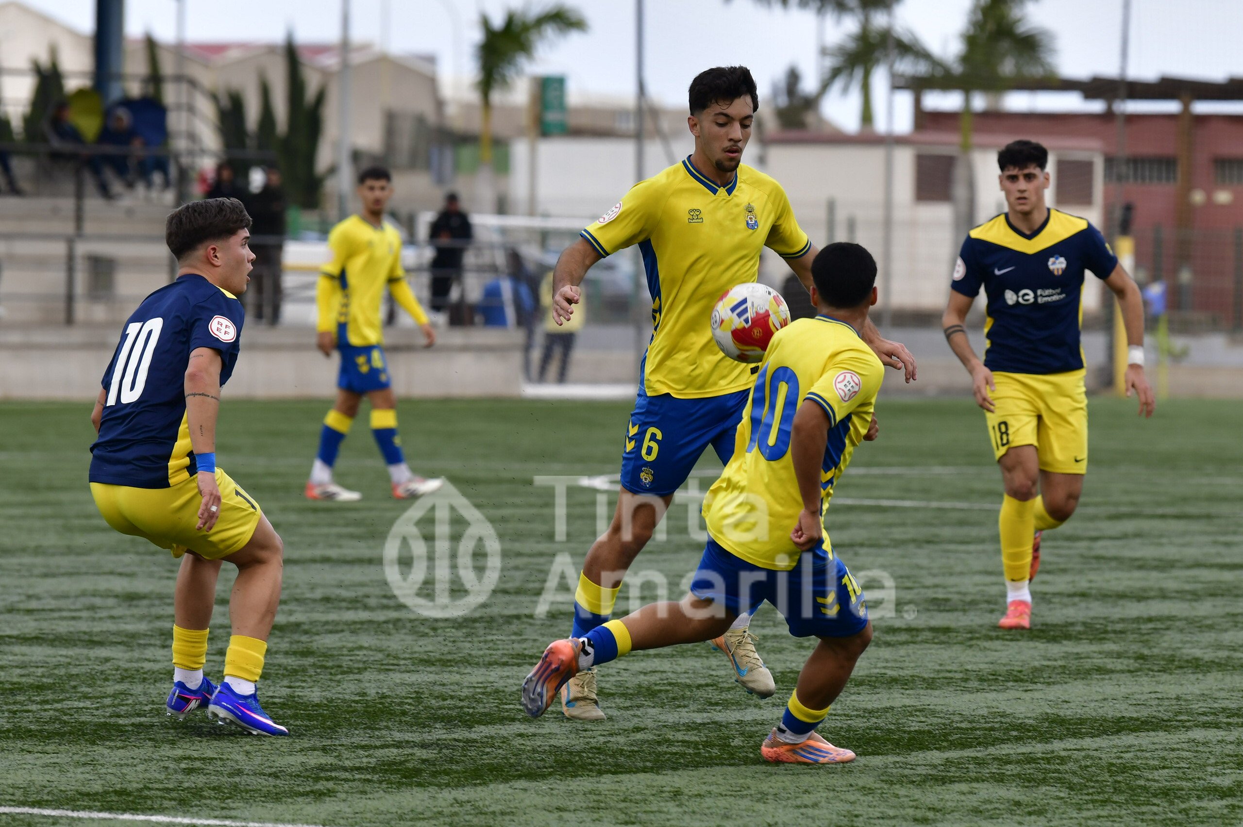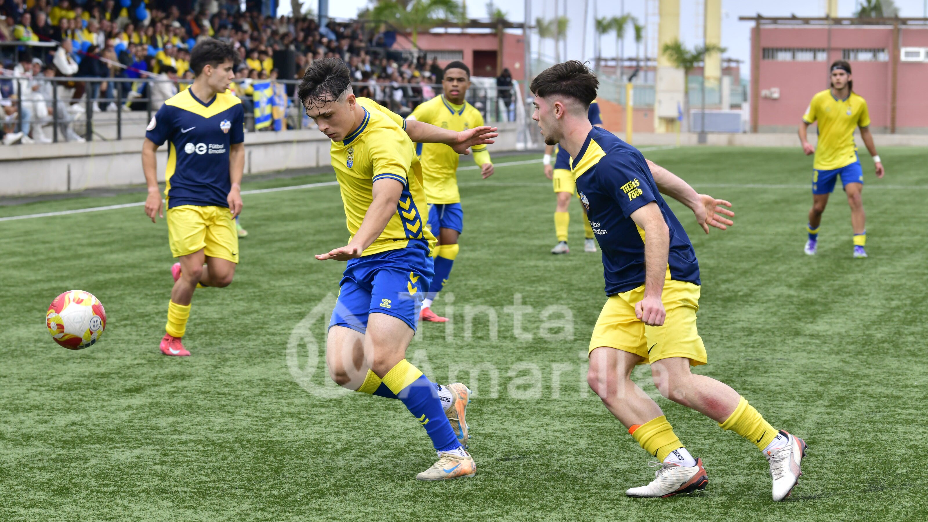 En los 15 primeros minutos, el filial amarillo fabricó con abundantes toques en sus acciones las dos primeras ocasiones. A los 6 minutos, Hugo Febles cargó una jugada por la derecha que remató desviado Aimar Domínguez. Y en el 15 fue Adriel Monzón el que hizo lo propio por la izquierda, con remate de Enaitz salvado por el portero Roberto.