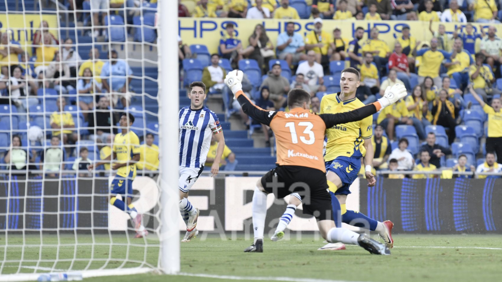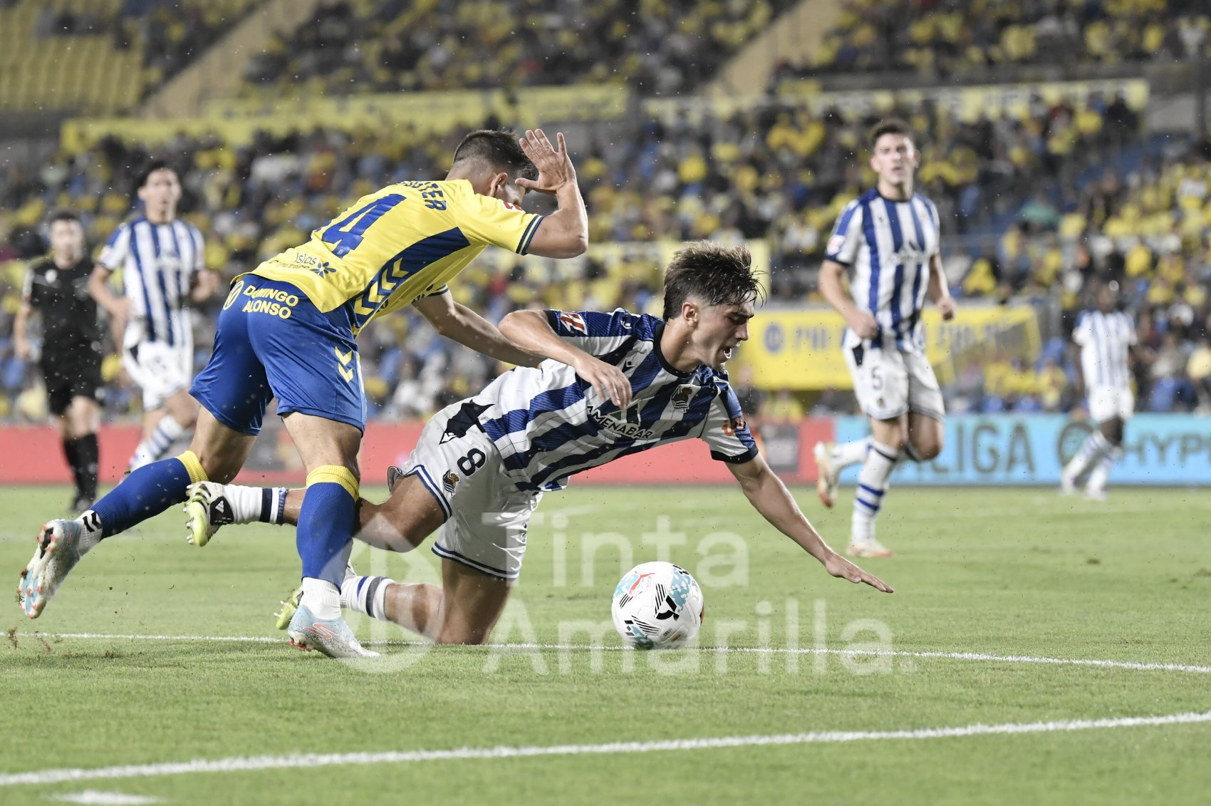 Las Palmas había salida con mucha intención en su juego ofensivo. Iván Gil, dos minutos después, lanzó al cuerpo de un defensor guipuzcoano malográndose la segunda ocasión de ese esperanzador comienzo de partido.
