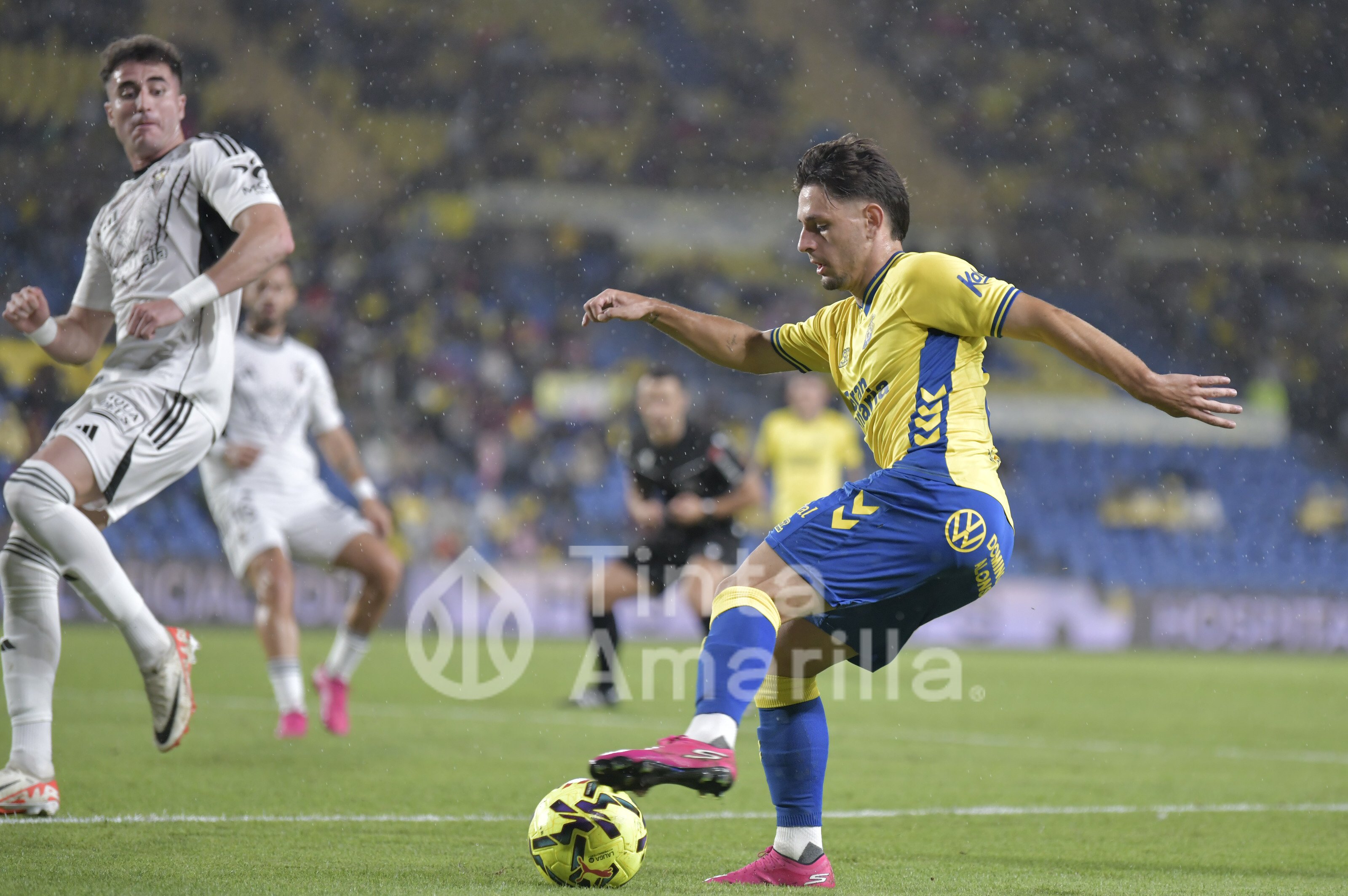 Esa incidencia dio un nuevo giro al argumento del encuentro. Las Palmas volvió a reeditar el sacrificio defensivo para defender la renta que le quedaba. El balón había cambiado de botas y también las pautas del juego. El Alba, como antes había hecho el Valladolid, apretó en esos minutos finales tratando de romper una muralla que, como reza el himno, volvió a “estrellarse el contrario”. Todos los papeles de la obra las interpretaron con éxito los amarillos.