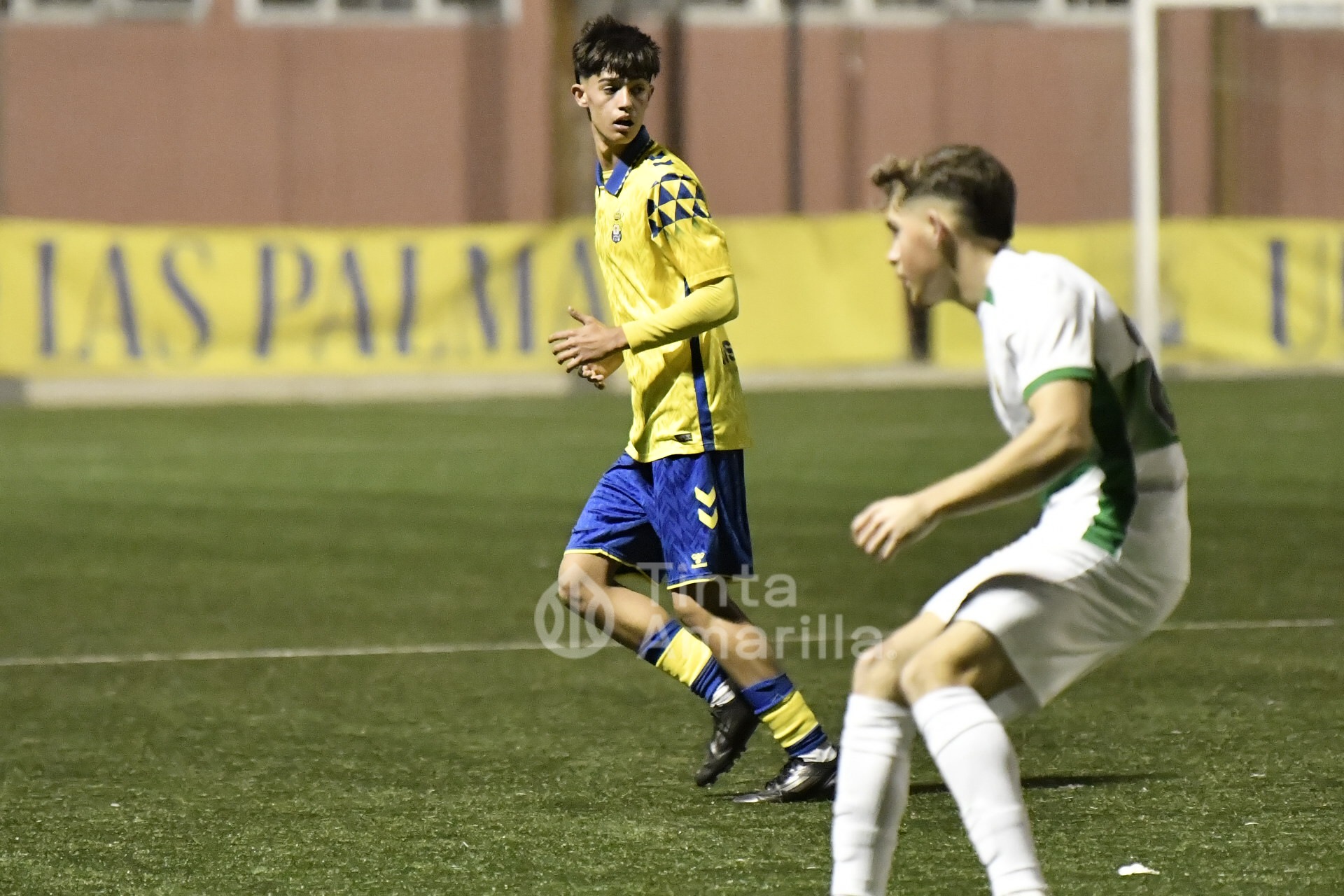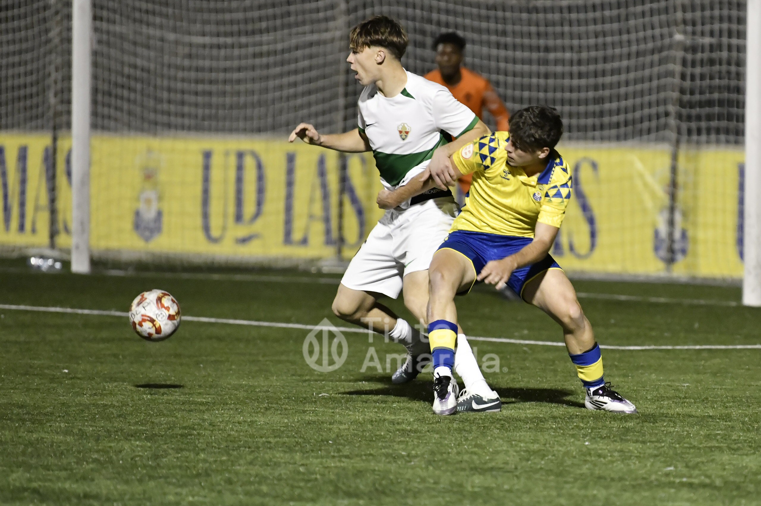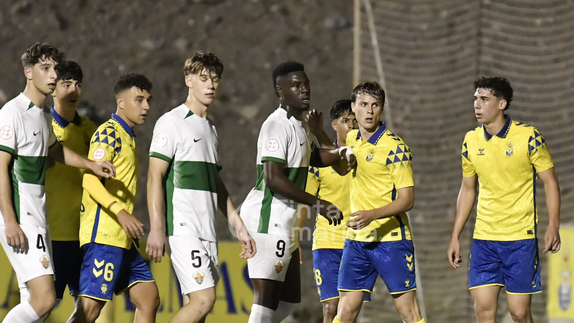La UD Las Palmas logró este miércoles introducir su nombre en los cuartos de final de la Copa del Rey juvenil (su rival será el Granada) tras noquear en el Anexo al Elche (2-1). Fue una noche intensa, que los jugadores de Héctor Nuez resolvieron a dos minutos del final de la prórroga con un zambombazo de Arturo Rodríguez. El tanto del ariete compensó el gran esfuerzo de los isleños. Primero marcó Las Palmas, a través de Sergio Ruiz, pero el conjunto franjiverde igualó y forzó los 30 minutos extra. Sin embargo, los grancanarios celebraron el triunfo en una jugada in extremis, que buscaron durante toda la noche.