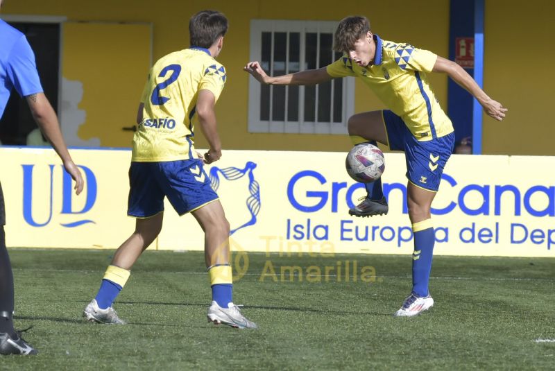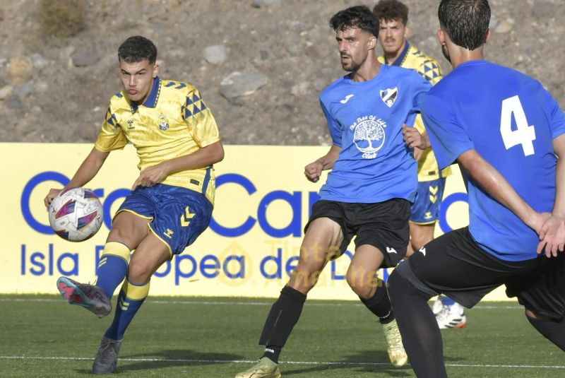 Llegaron los apuros al final: El filial se quedó con diez por expulsión del central Adrián, el colegiado pitó penalti al meta Israel en la jugada posterior y Ángel recortó el 2-1 desde los once metros. Pero la marea no pasó la línea de contención en el estadio Anexo al Gran Canaria.