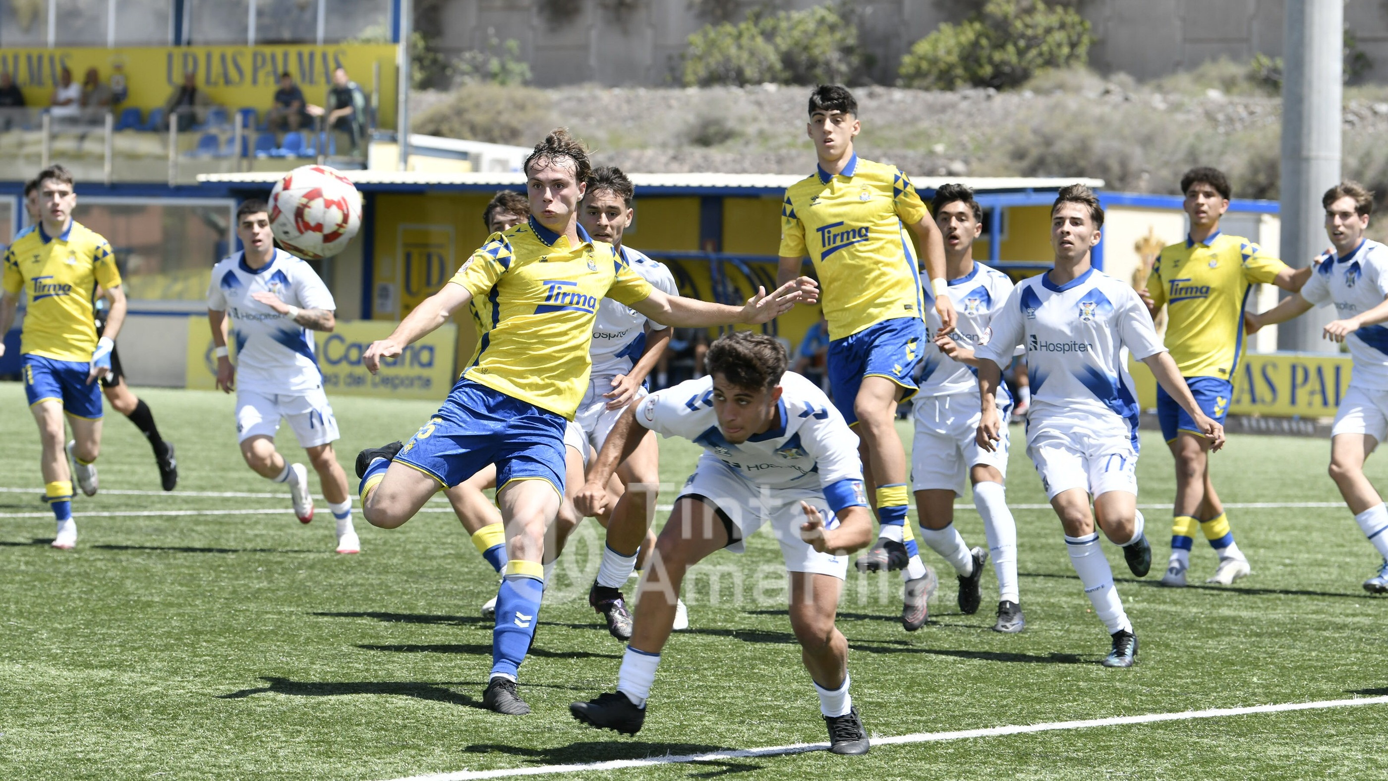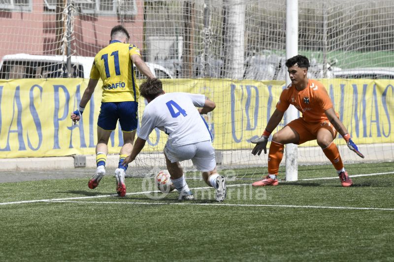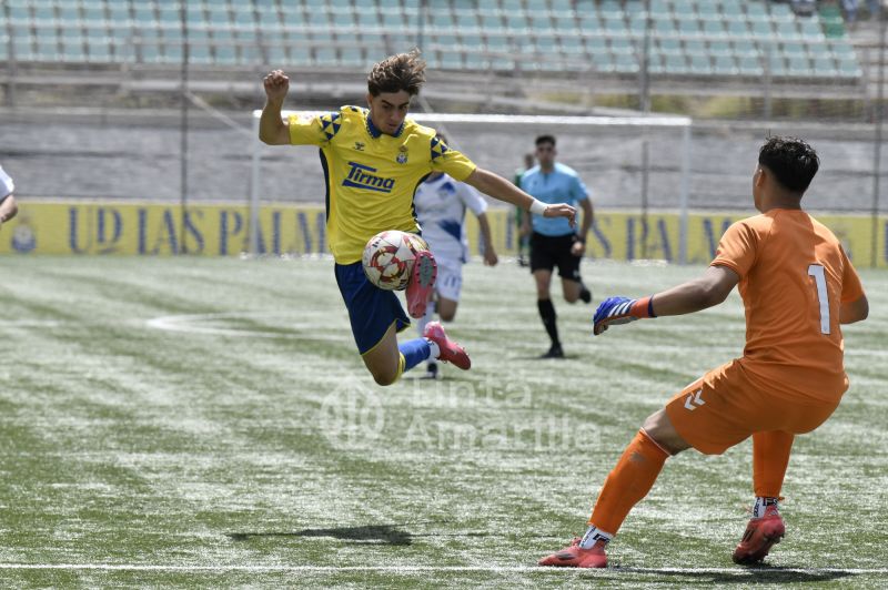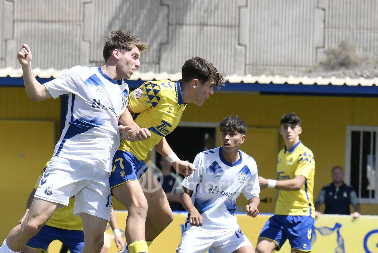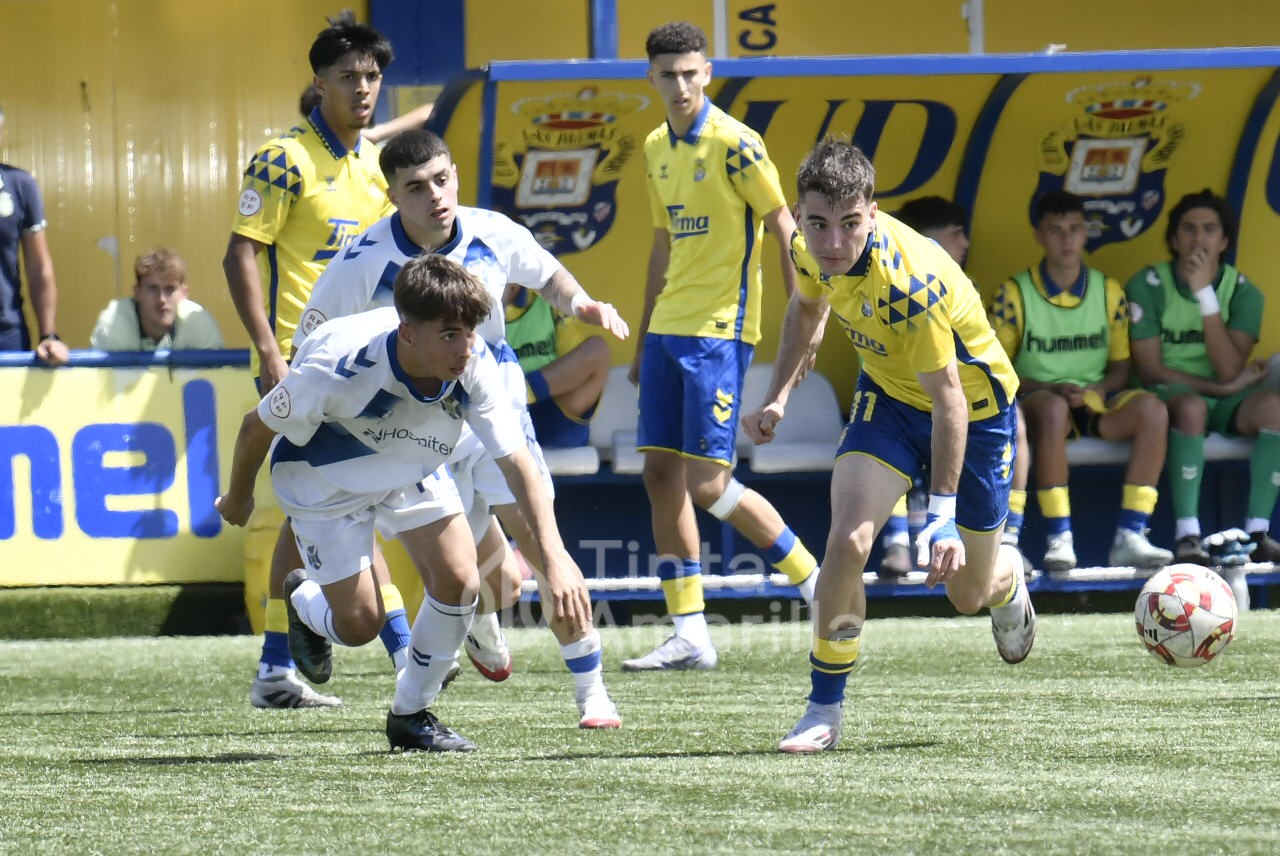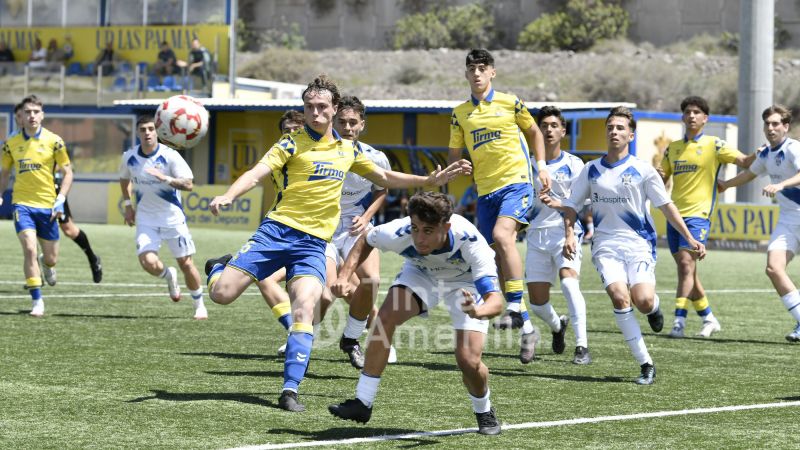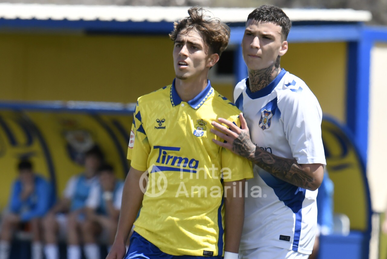 La UD Las Palmas dio este domingo un nuevo paso para revalidar el título canario de la Liga de División de Honor juvenil, al igualar (2-2) con el CD Tenerife en al Anexo al Gran Canaria. El equipo de Héctor Nuez se vio obligado a reaccionar dos veces a sendos goles blanquiazules, aunque la realidad es que entre el portero Cañas, un larguero y la imprecisión de abundantes remates fraguaron el reparto de puntos. A los amarillos le vale para certificar pronto uno de sus objetivos de la temporada, quizá el más importante, y a los de Suso Santana mantener su aspiración como segundo mejor del país para entrar así en la Copa de Campeones.