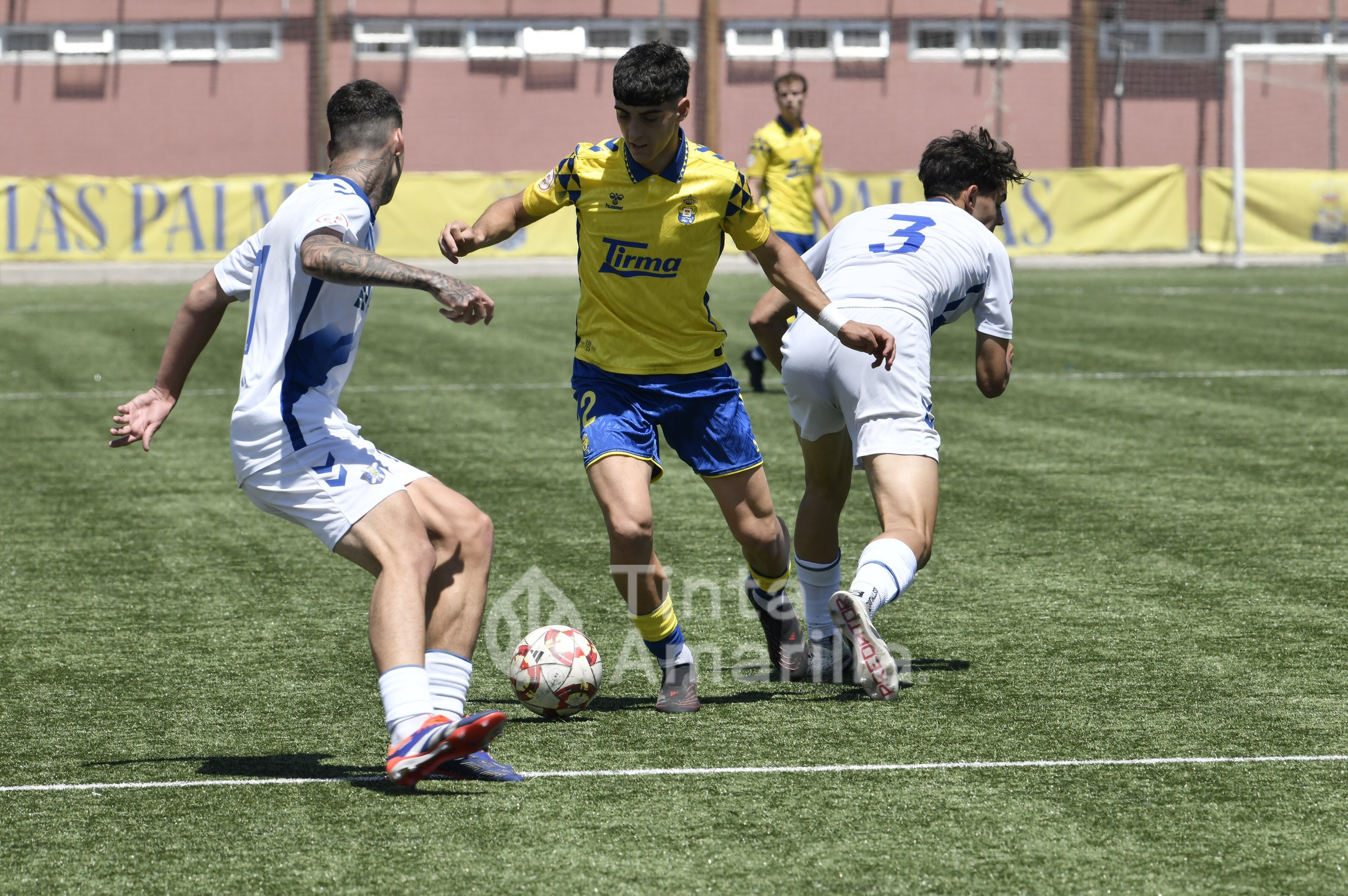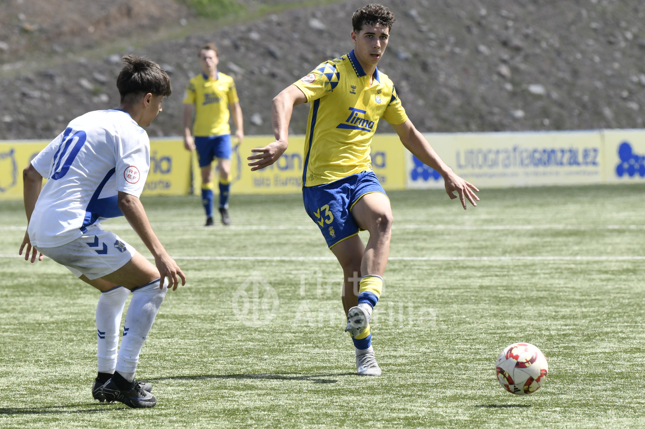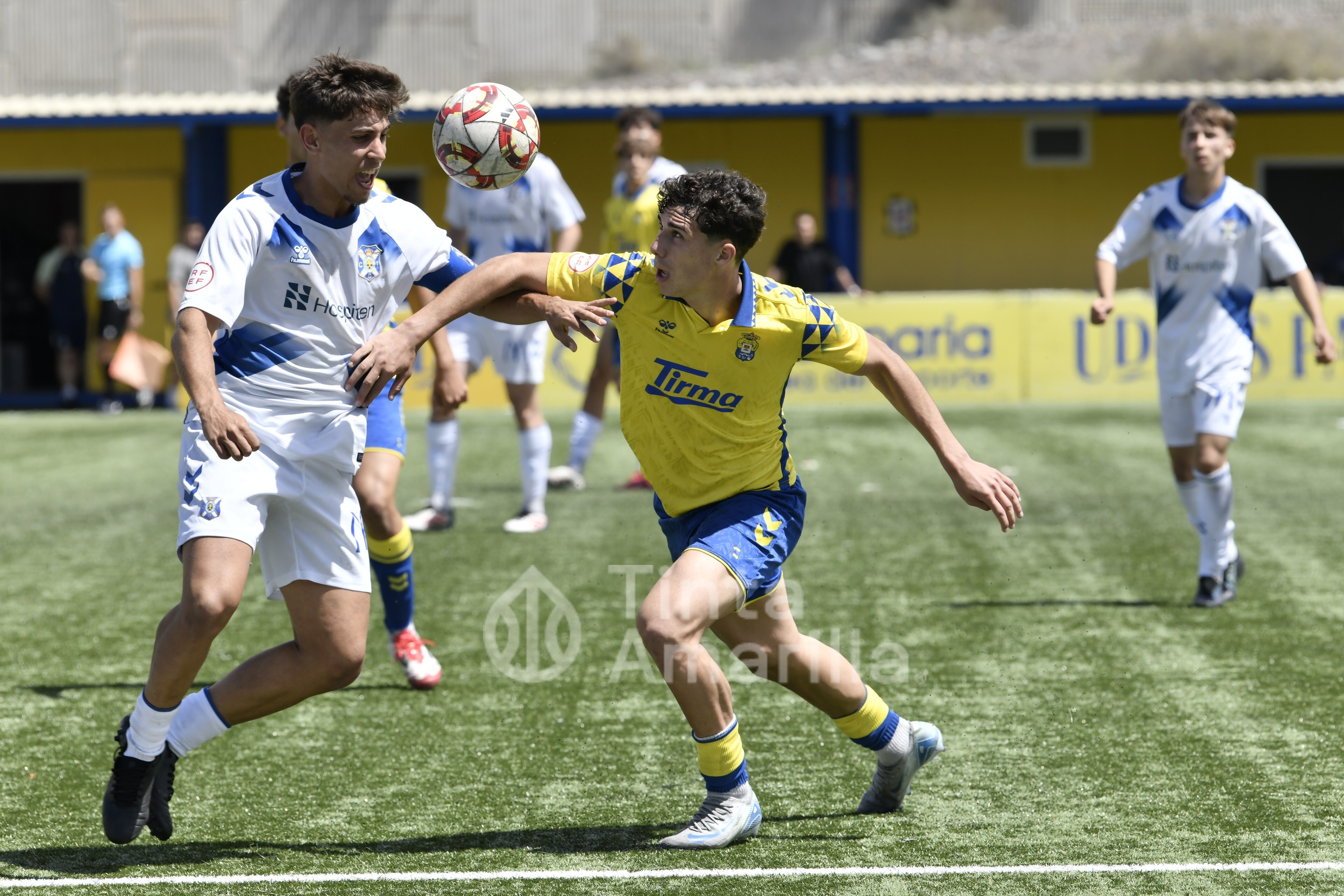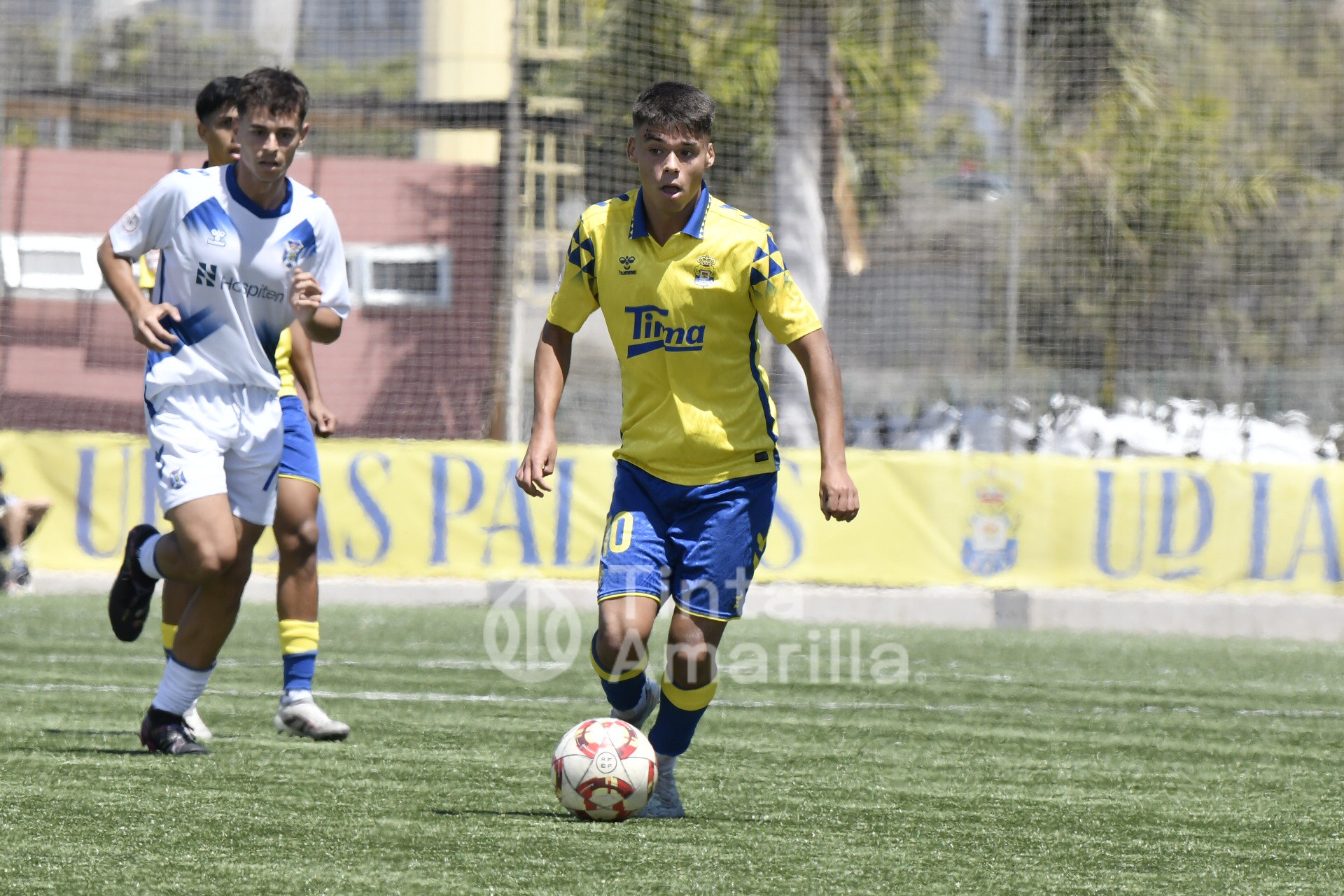 La UD Las Palmas dio este domingo un nuevo paso para revalidar el título canario de la Liga de División de Honor juvenil, al igualar (2-2) con el CD Tenerife en al Anexo al Gran Canaria. El equipo de Héctor Nuez se vio obligado a reaccionar dos veces a sendos goles blanquiazules, aunque la realidad es que entre el portero Cañas, un larguero y la imprecisión de abundantes remates fraguaron el reparto de puntos. A los amarillos le vale para certificar pronto uno de sus objetivos de la temporada, quizá el más importante, y a los de Suso Santana mantener su aspiración como segundo mejor del país para entrar así en la Copa de Campeones.