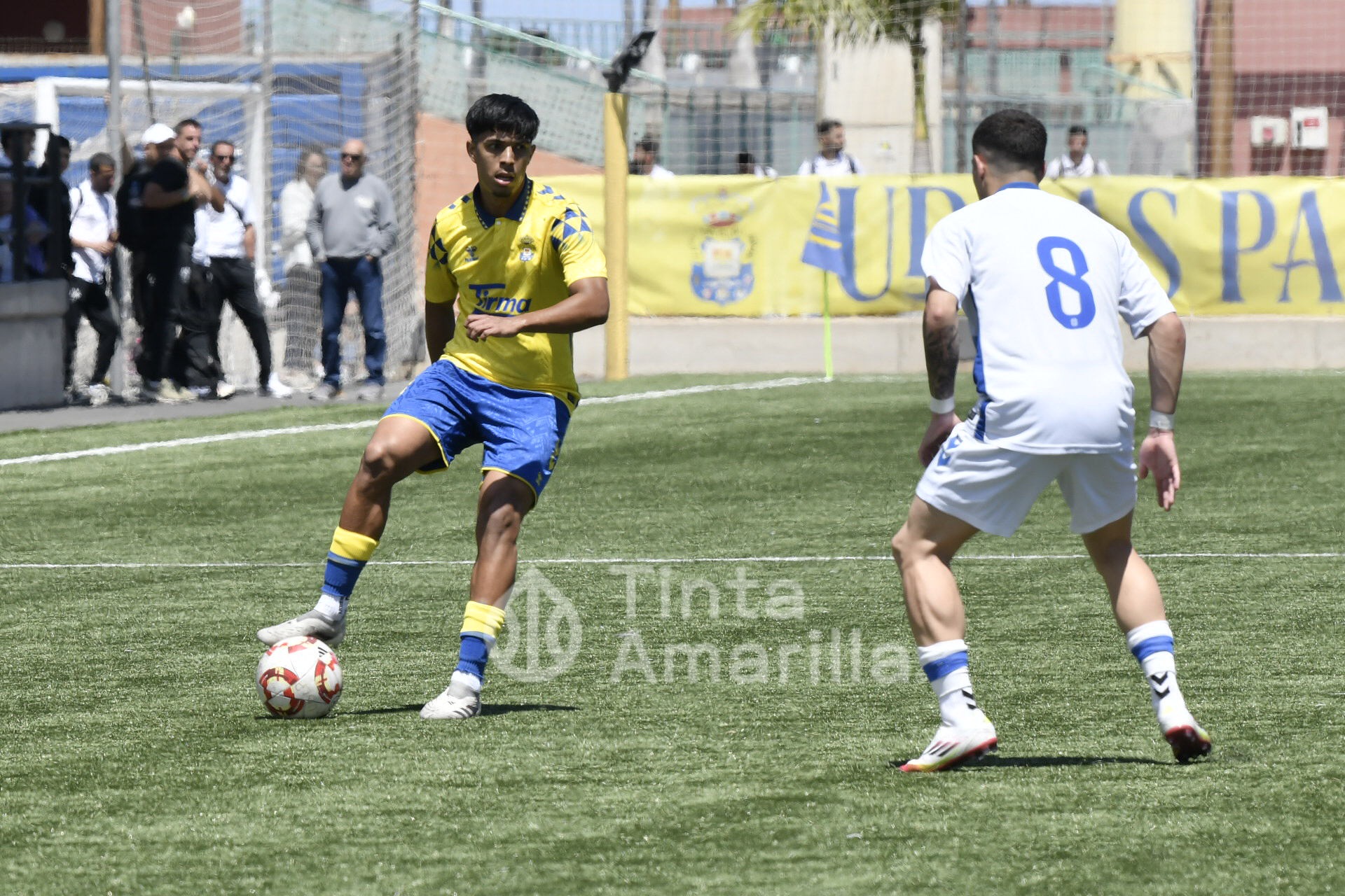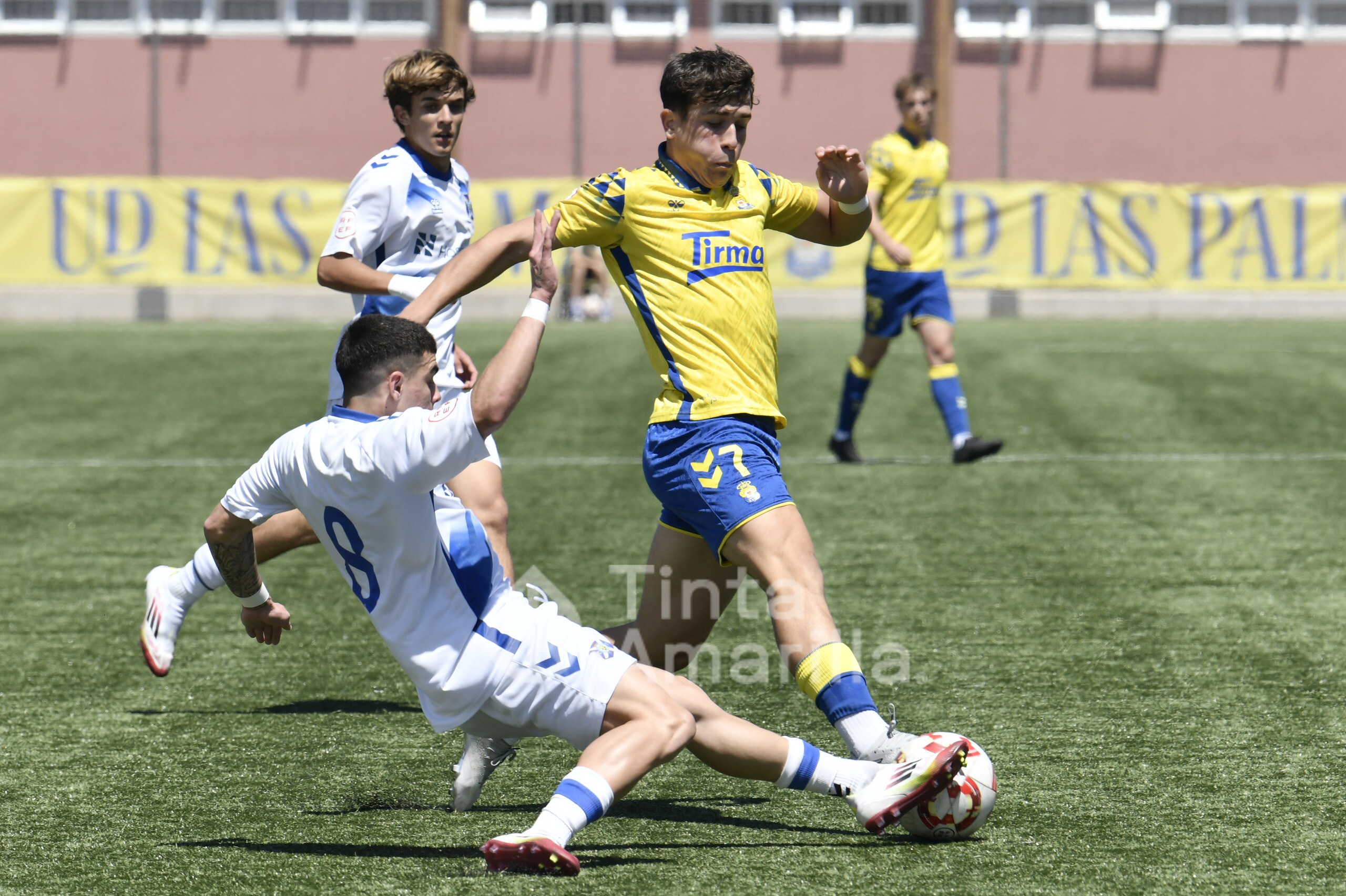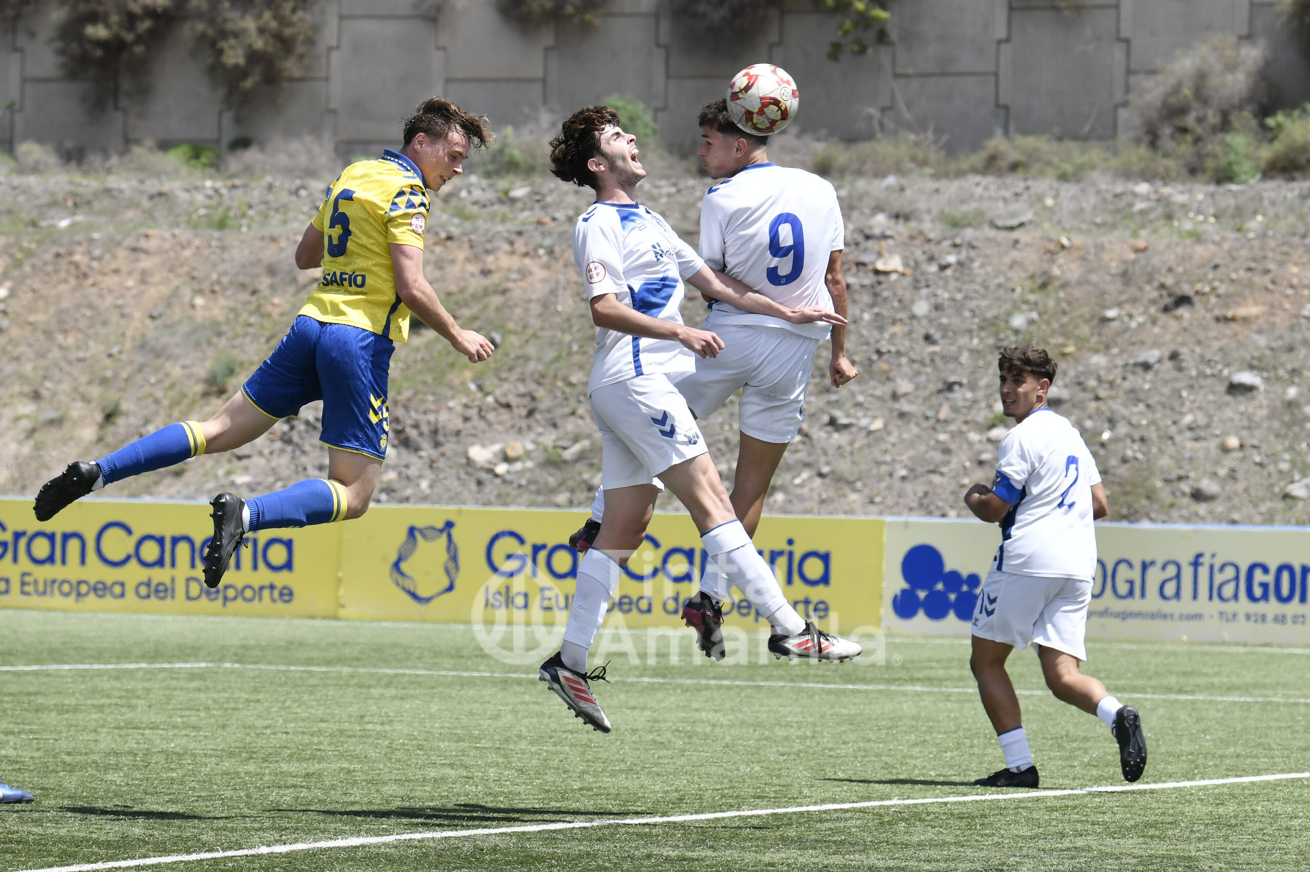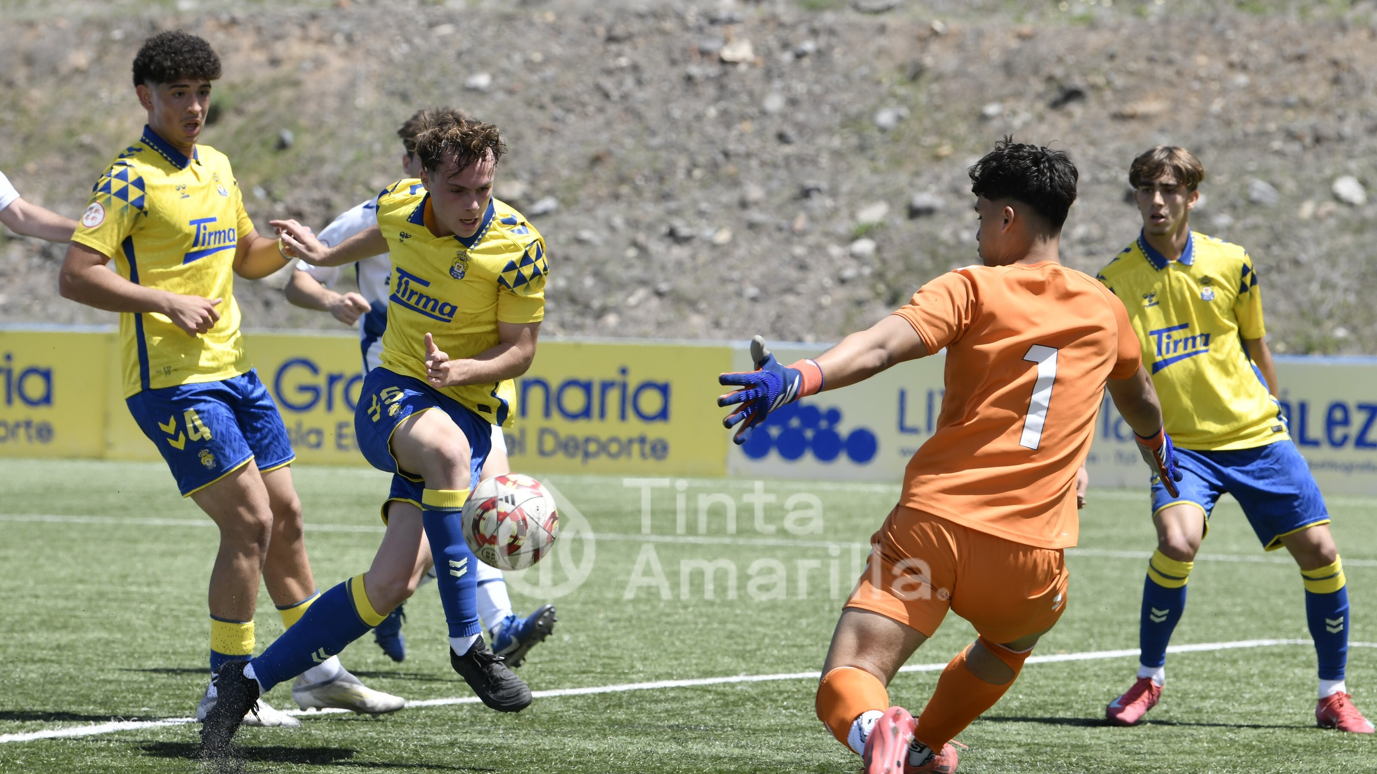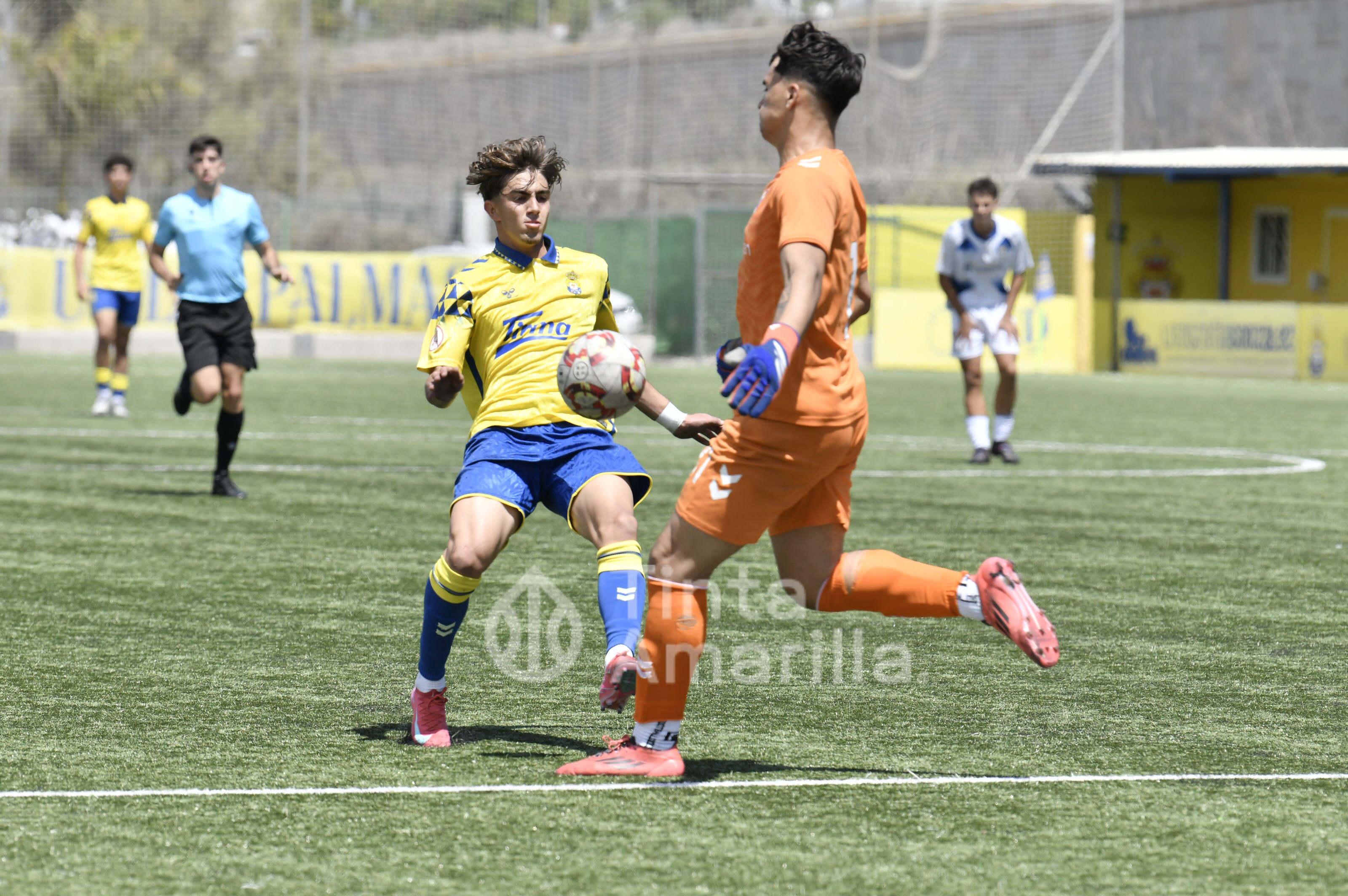 La UD Las Palmas dio este domingo un nuevo paso para revalidar el título canario de la Liga de División de Honor juvenil, al igualar (2-2) con el CD Tenerife en al Anexo al Gran Canaria. El equipo de Héctor Nuez se vio obligado a reaccionar dos veces a sendos goles blanquiazules, aunque la realidad es que entre el portero Cañas, un larguero y la imprecisión de abundantes remates fraguaron el reparto de puntos. A los amarillos le vale para certificar pronto uno de sus objetivos de la temporada, quizá el más importante, y a los de Suso Santana mantener su aspiración como segundo mejor del país para entrar así en la Copa de Campeones.