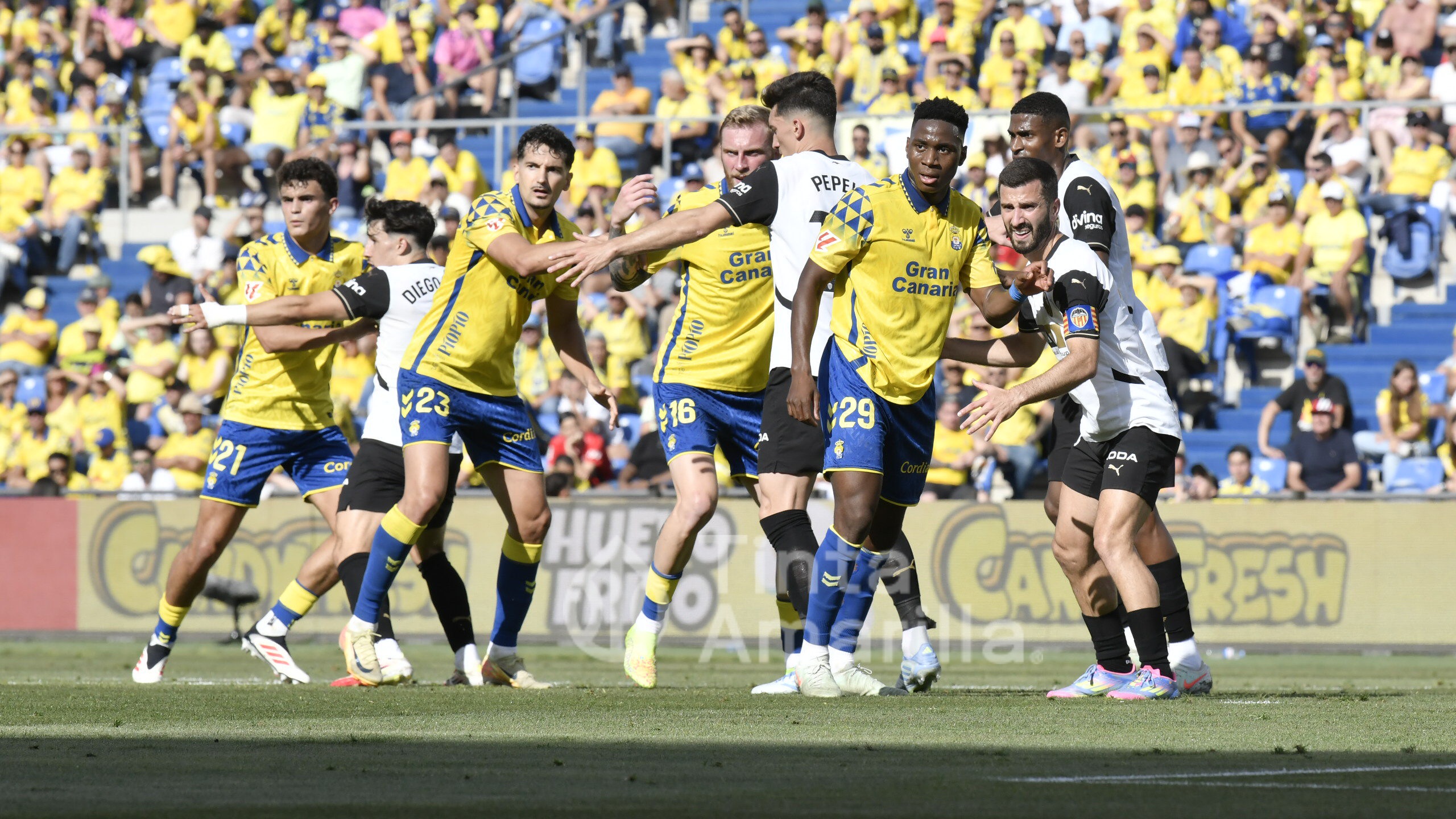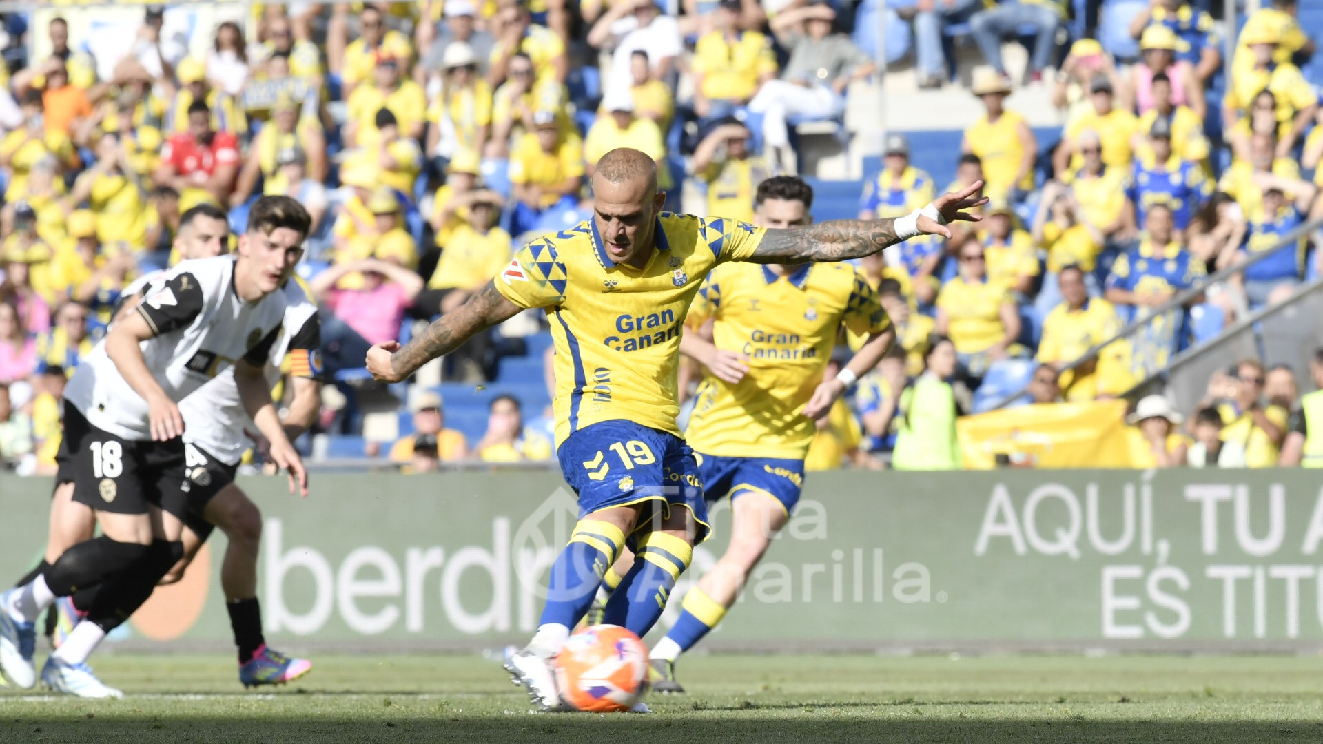 Las Palmas reclamó sin éxito penalti del meta georgiano Mamardashvili a McBurnie. No lo consideró De Burgos, en una de astucia de ambos protagonistas. La decisión no gustó a los aficionados, pero quizá un segundo penalti a favor de los amarillos no aparece en los libros de ruta de esta Liga.