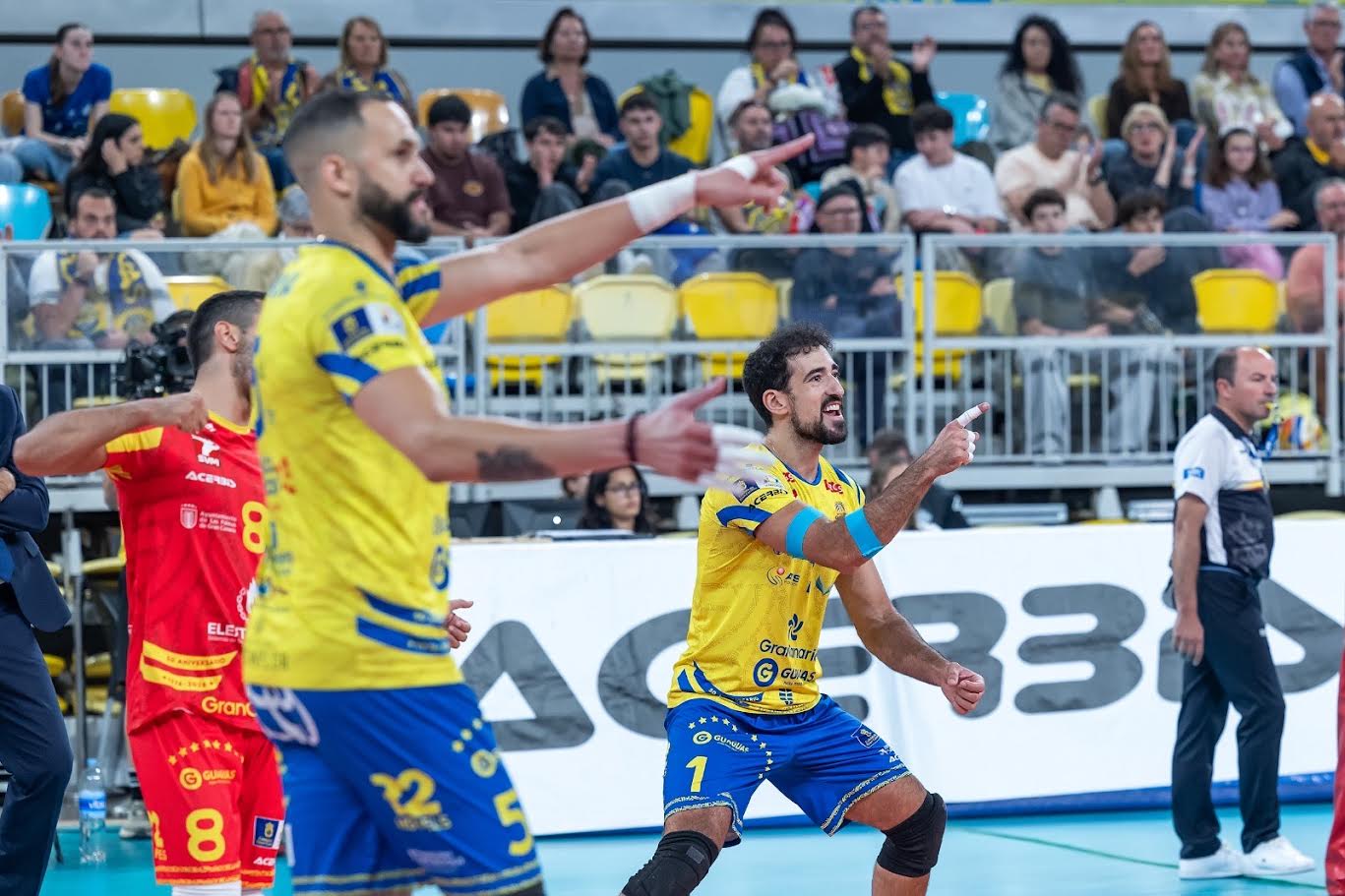 Desde el inicio, el Guaguas dejó claro que no iba a especular. Con su sexteto de gala sobre la pista, los grancanarios dominaron con autoridad el primer set, mostrando una versión sólida en todas las facetas del juego. La conexión entre Io De Amo en la dirección y referentes ofensivos como Osmany Juantorena y Walla Souza resultó determinante para abrir brecha en el marcador y cerrar la manga con un claro 25-14.
