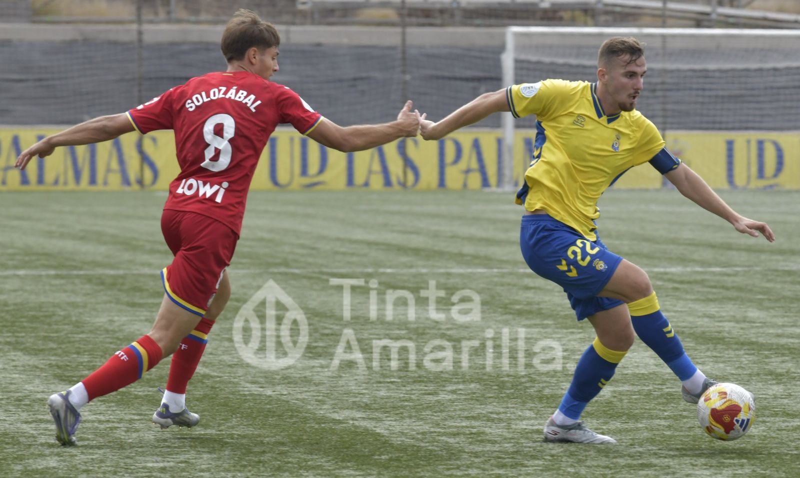Los dos conjuntos mostraron sus estilos antagónicos, casi un reflejo de las propuestas profesionales de ambas entidades. Las Palmas Atlético logró imponer su criterio en los primeros minutos, ante un Getafe B que lo interrumpía con la herramienta de las faltas. Así, a los 11 minutos, el capitán Gorka ya tenía una tarjeta amarilla después del segundo corte duro sobre el avanzado Valentín Pezzolesi.