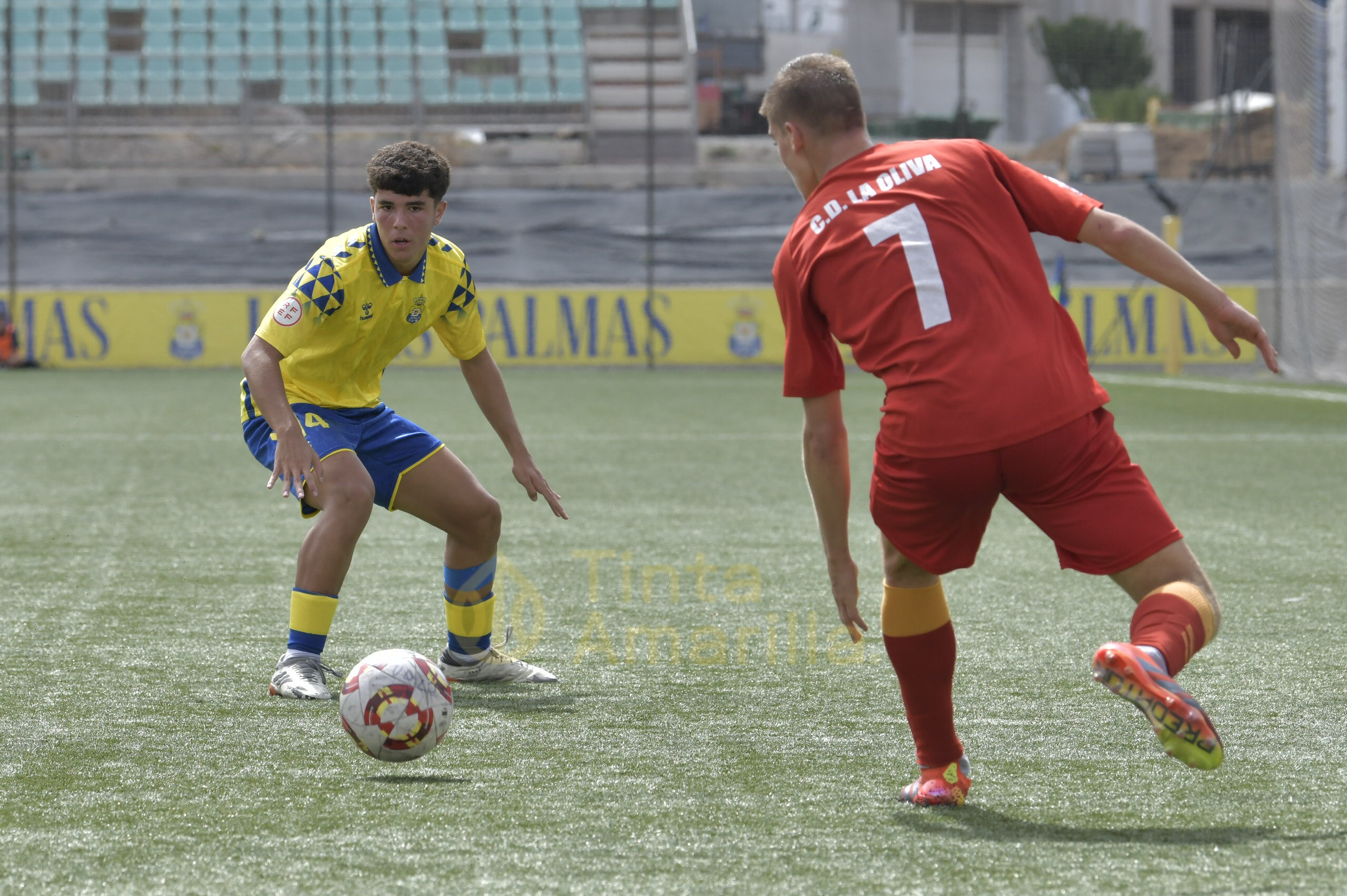 La UD Las Palmas se aferra al liderato del grupo canario de la División de Honor juvenil. El conjunto de Héctor Nuez superó este domingo en el Anexo a un interesante rival como La Oliva (3-0), que había abordado el choque del Anexo con la euforia de su reciente triunfo sobre el CD Tenerife.