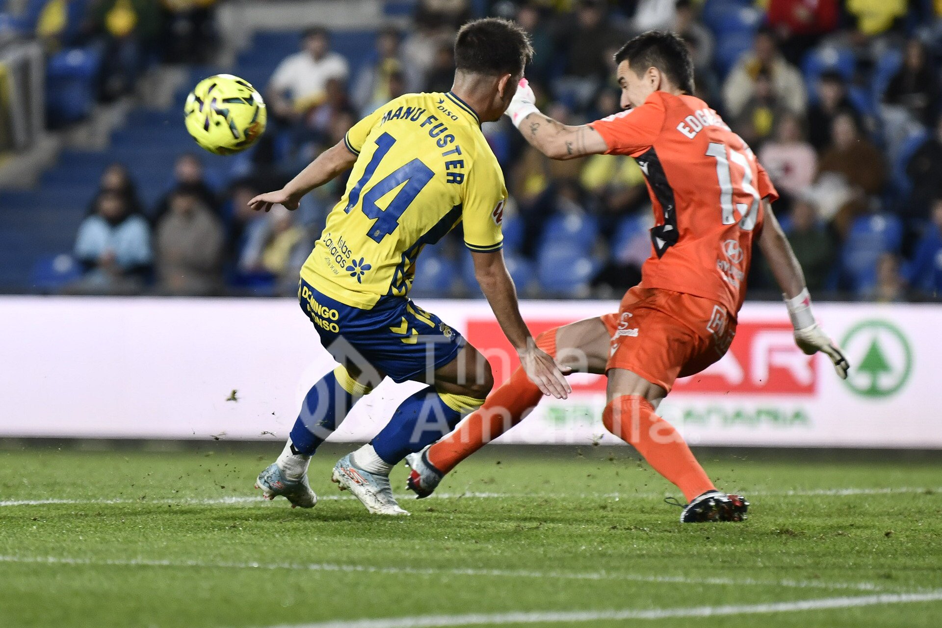 Con el 2-0 Las Palmas encontró nuevos caminos por el centro para elevar hasta un 4-0 el marcador en la primera parte. Se percató de ello Manu Fuster, que fue el firmante del tercero de la noche con una jugada muy característica suya. La finalizó con un disparo raso junto al poste.