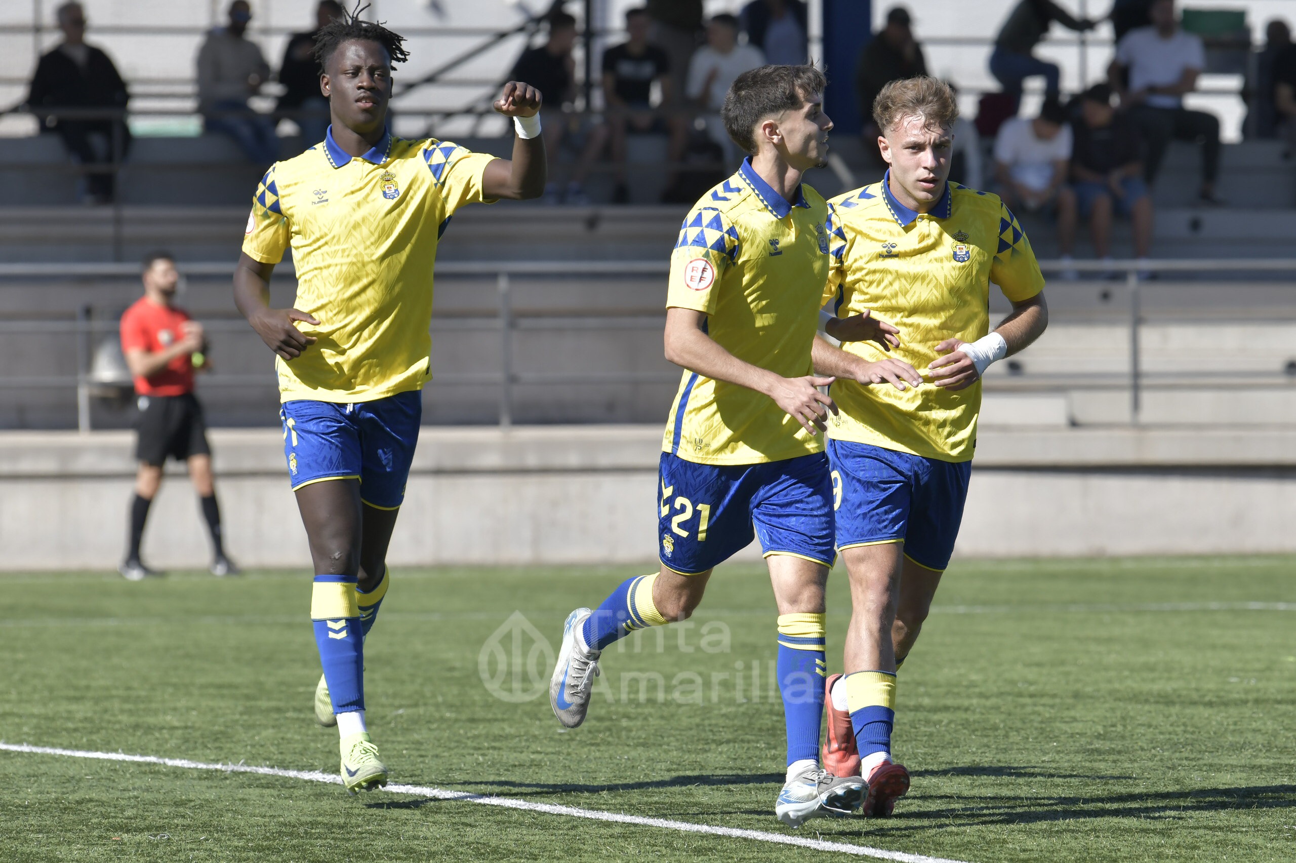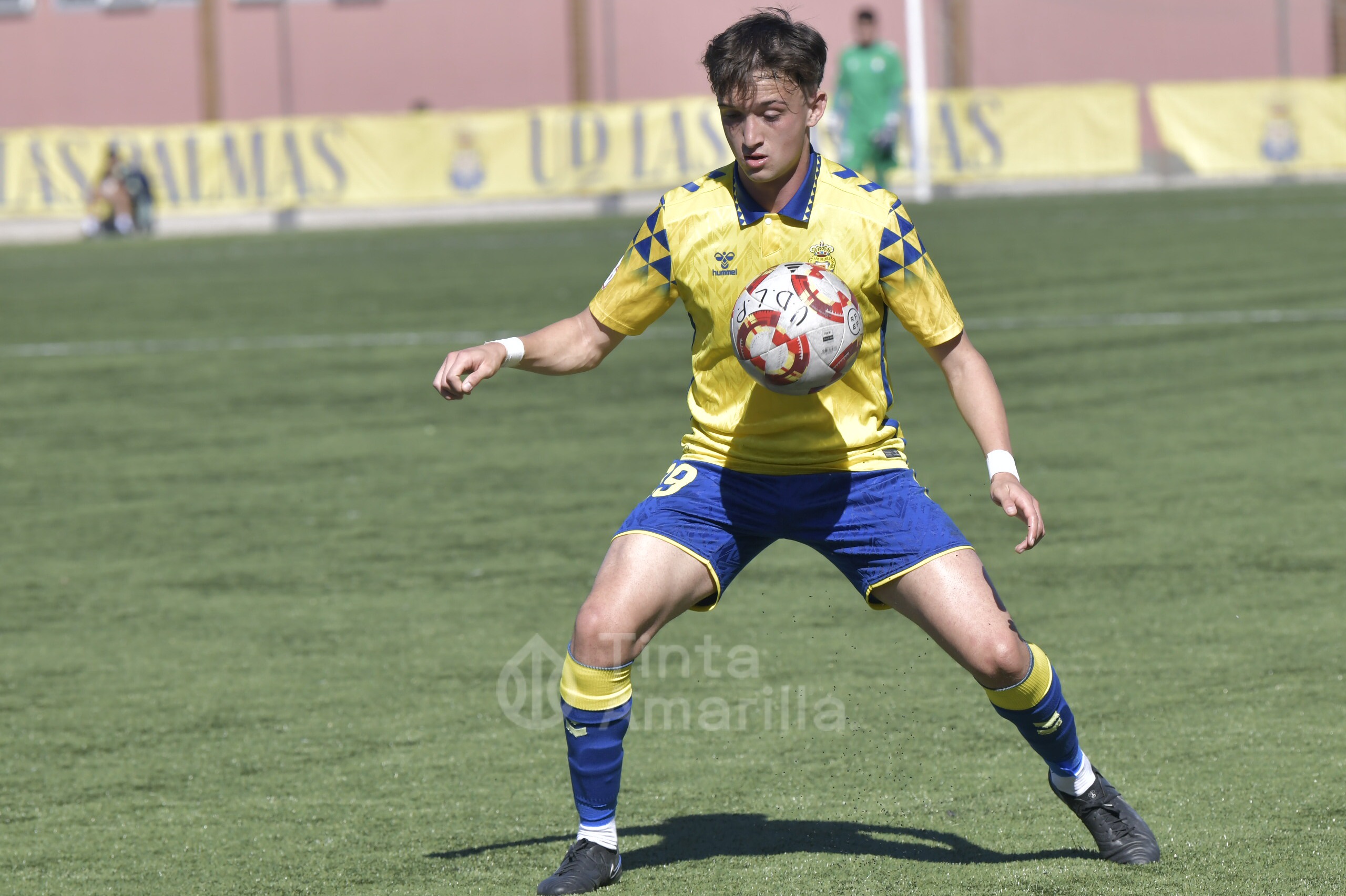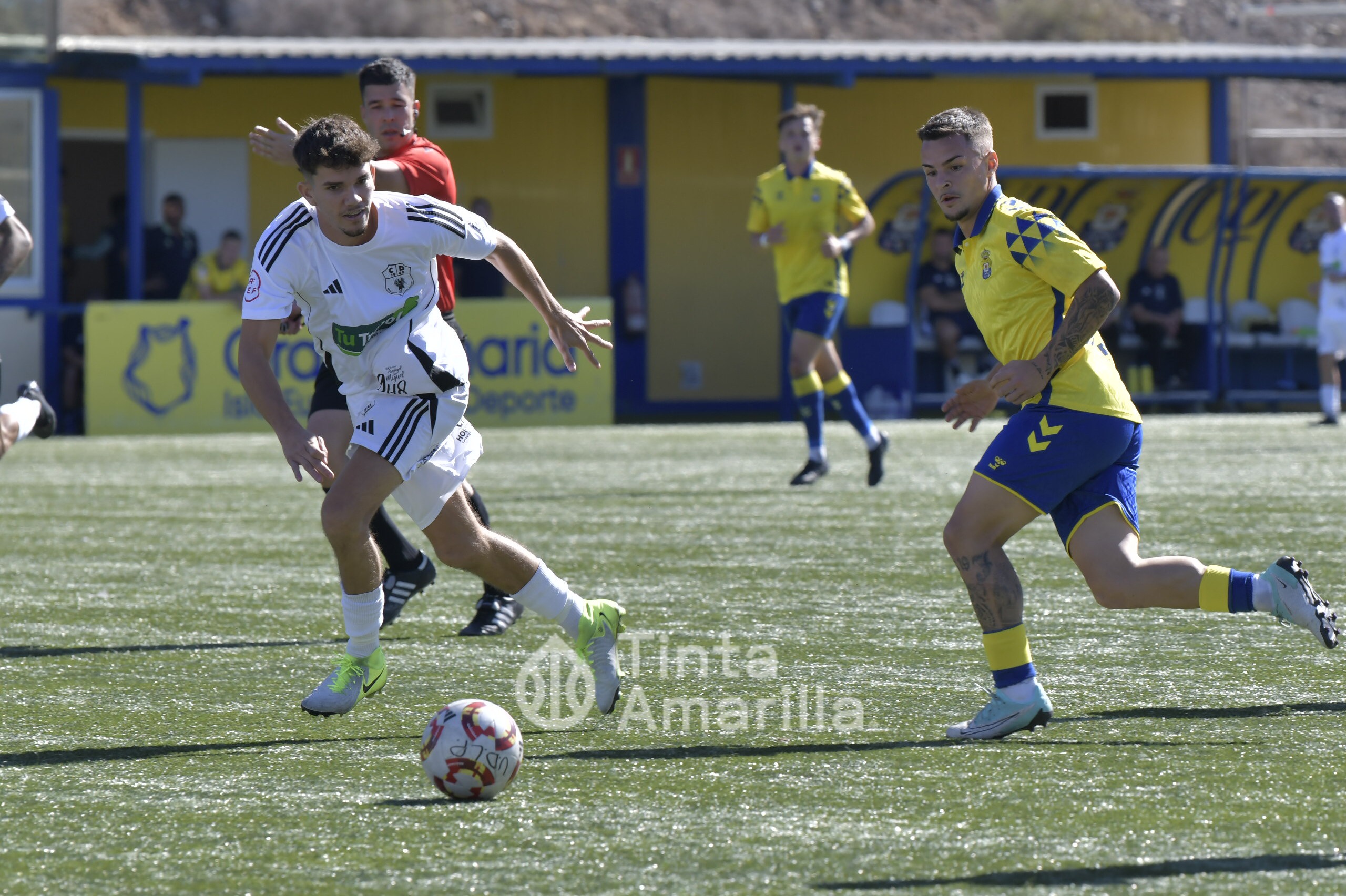 Pero su austera opción fue, en realidad, su perdición ante un rival que dominó todas las facetas del juego y que tardó media hora en quebrar la propuesta tinerfeña. Las primeras cargas del filial llegaron por la derecha, con dos carreras verticales y centros de Saliou. En una de ellas llegó a rematar José Ángel, aunque sin precisión plena. Por la banda izquierda era Diego Martín quien también tenía la misión de emitir centros en un claro intento amarillo de abrir el partido por las bandas.