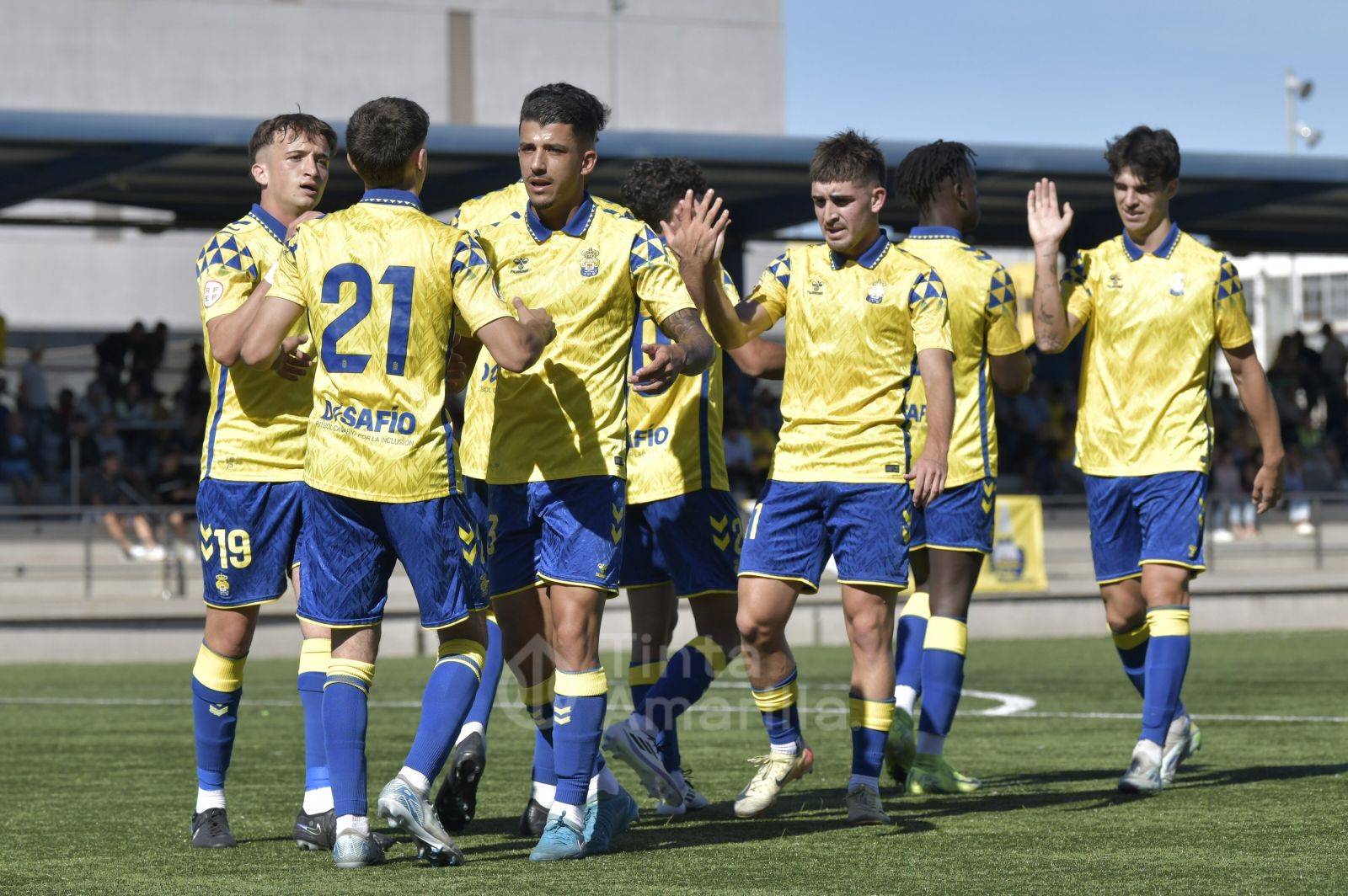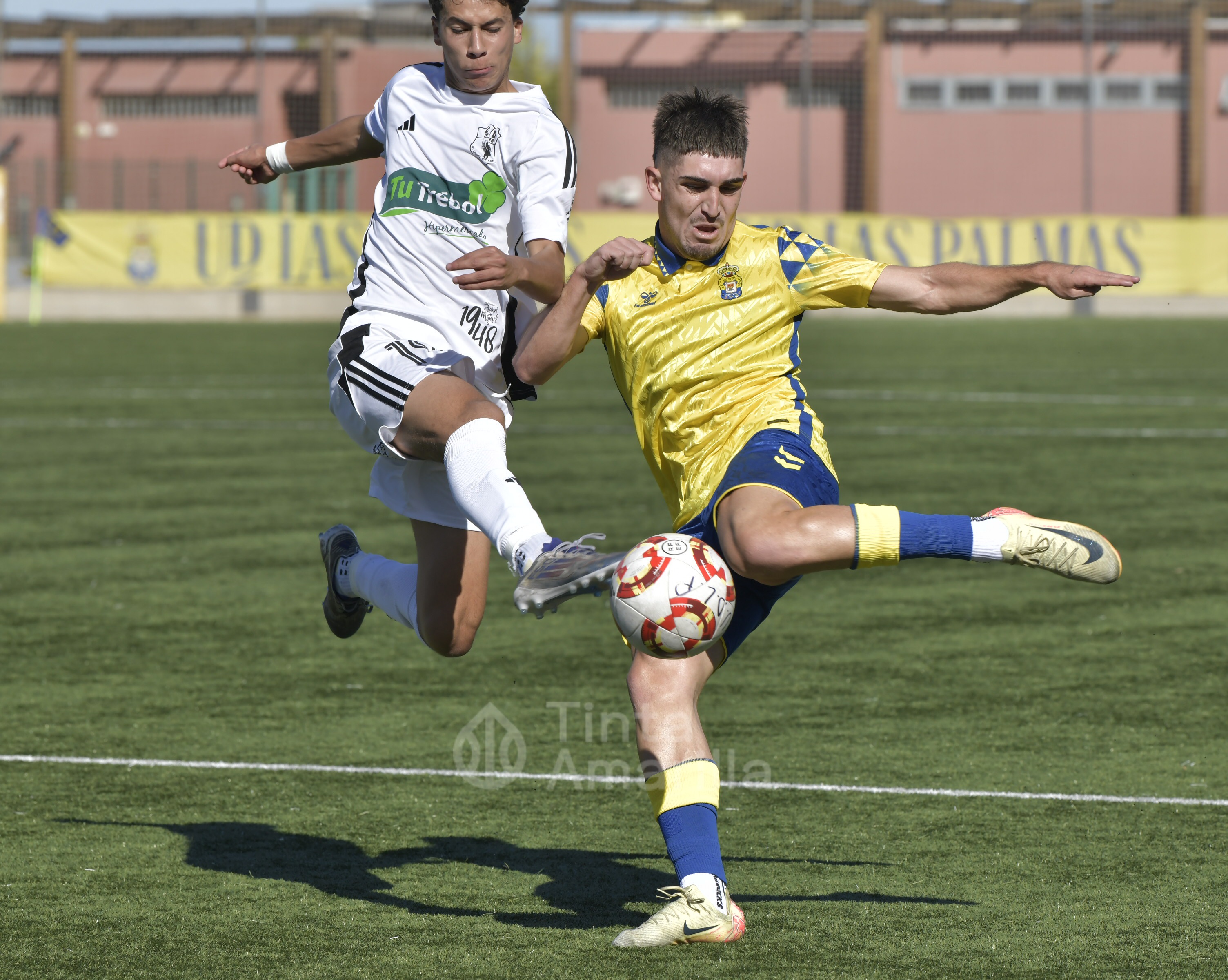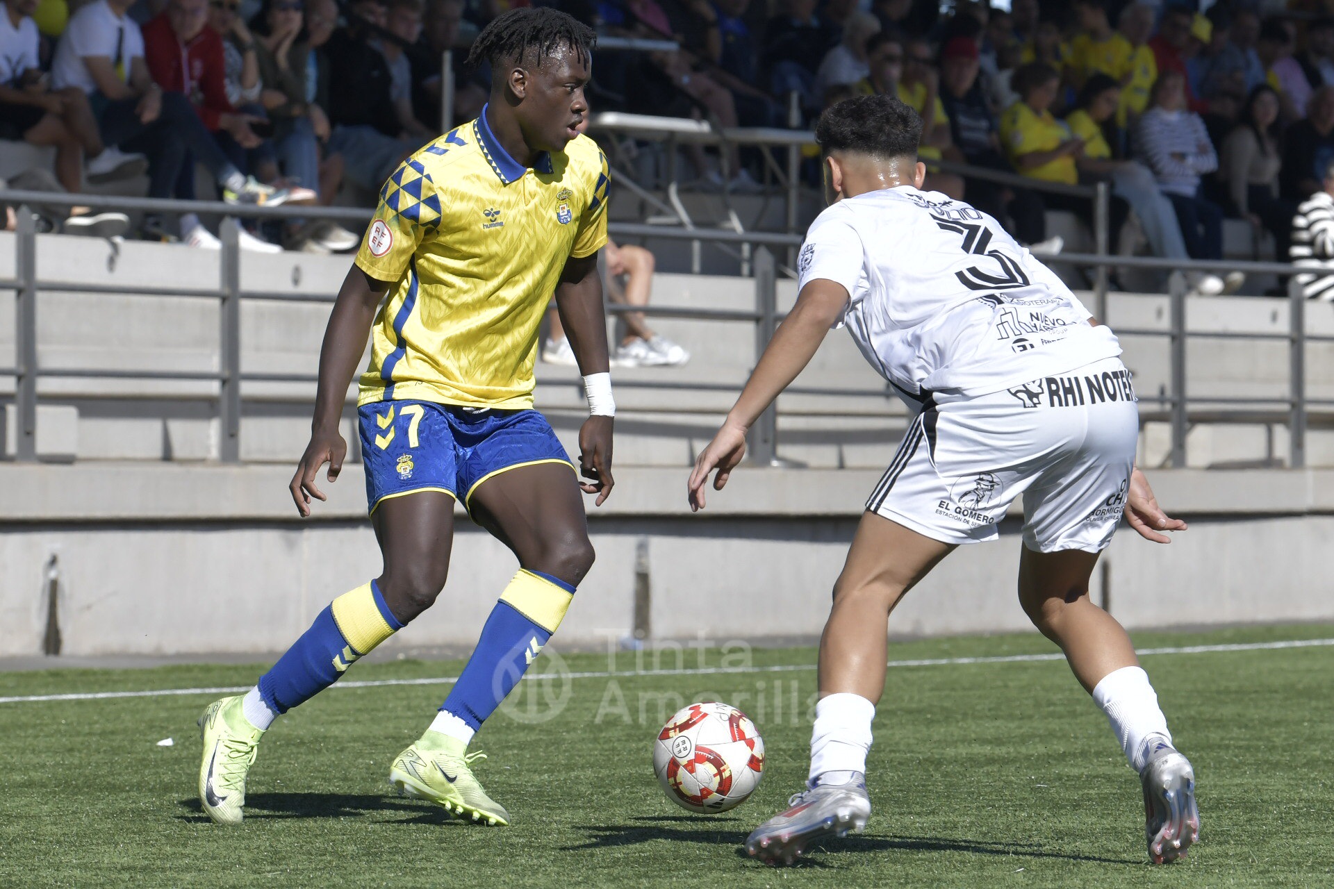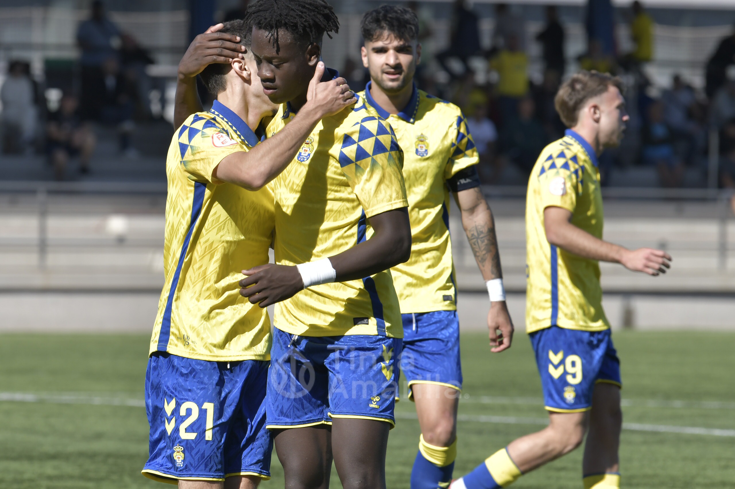 Pero su austera opción fue, en realidad, su perdición ante un rival que dominó todas las facetas del juego y que tardó media hora en quebrar la propuesta tinerfeña. Las primeras cargas del filial llegaron por la derecha, con dos carreras verticales y centros de Saliou. En una de ellas llegó a rematar José Ángel, aunque sin precisión plena. Por la banda izquierda era Diego Martín quien también tenía la misión de emitir centros en un claro intento amarillo de abrir el partido por las bandas.