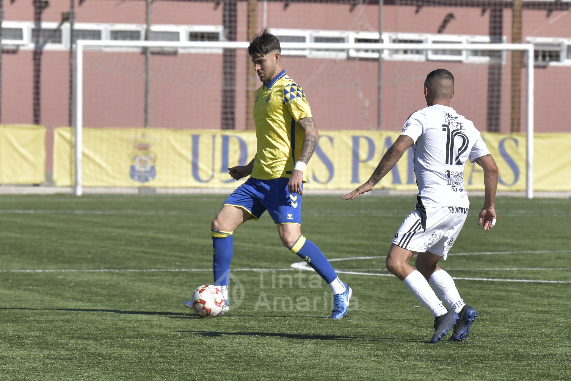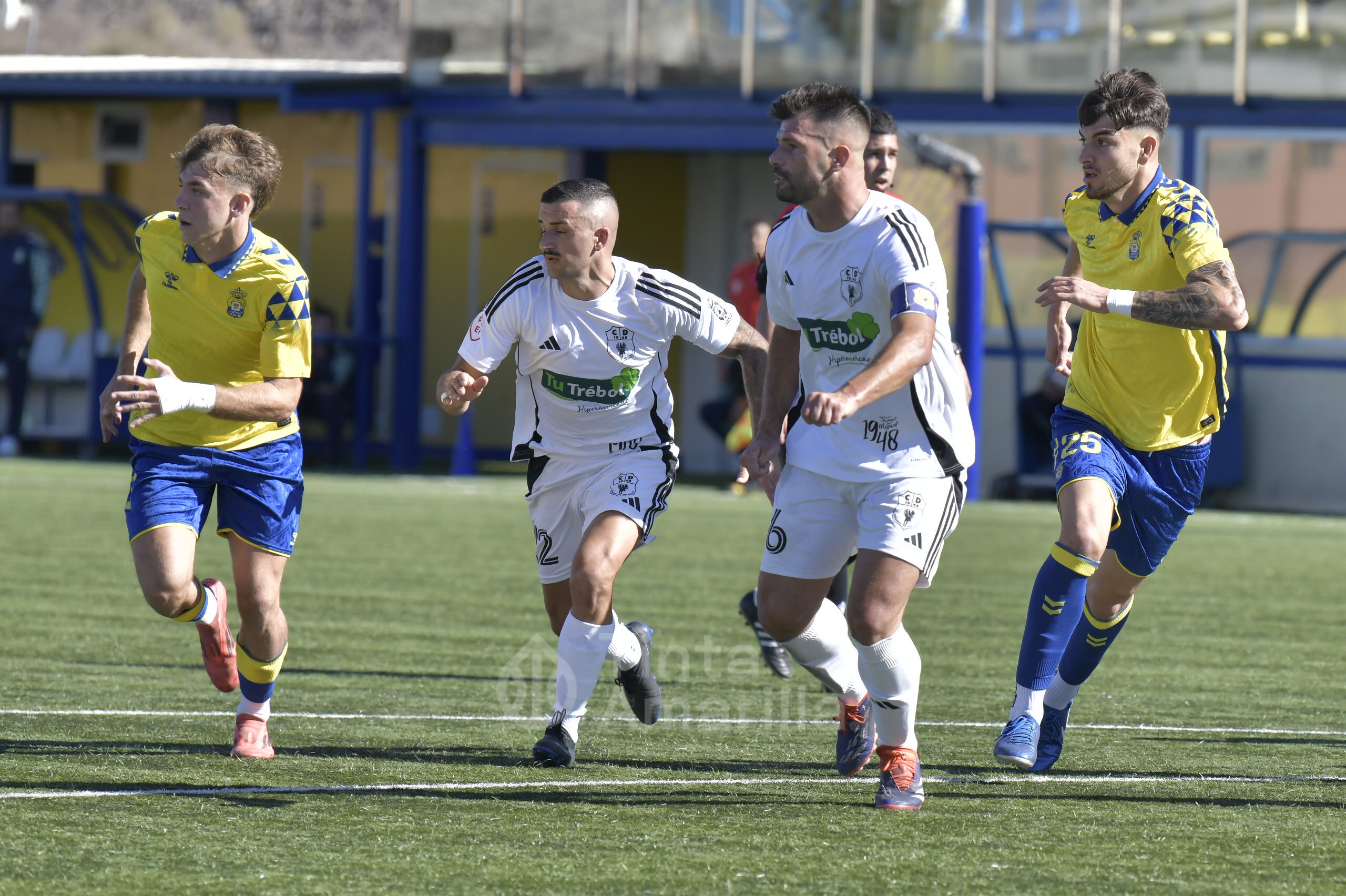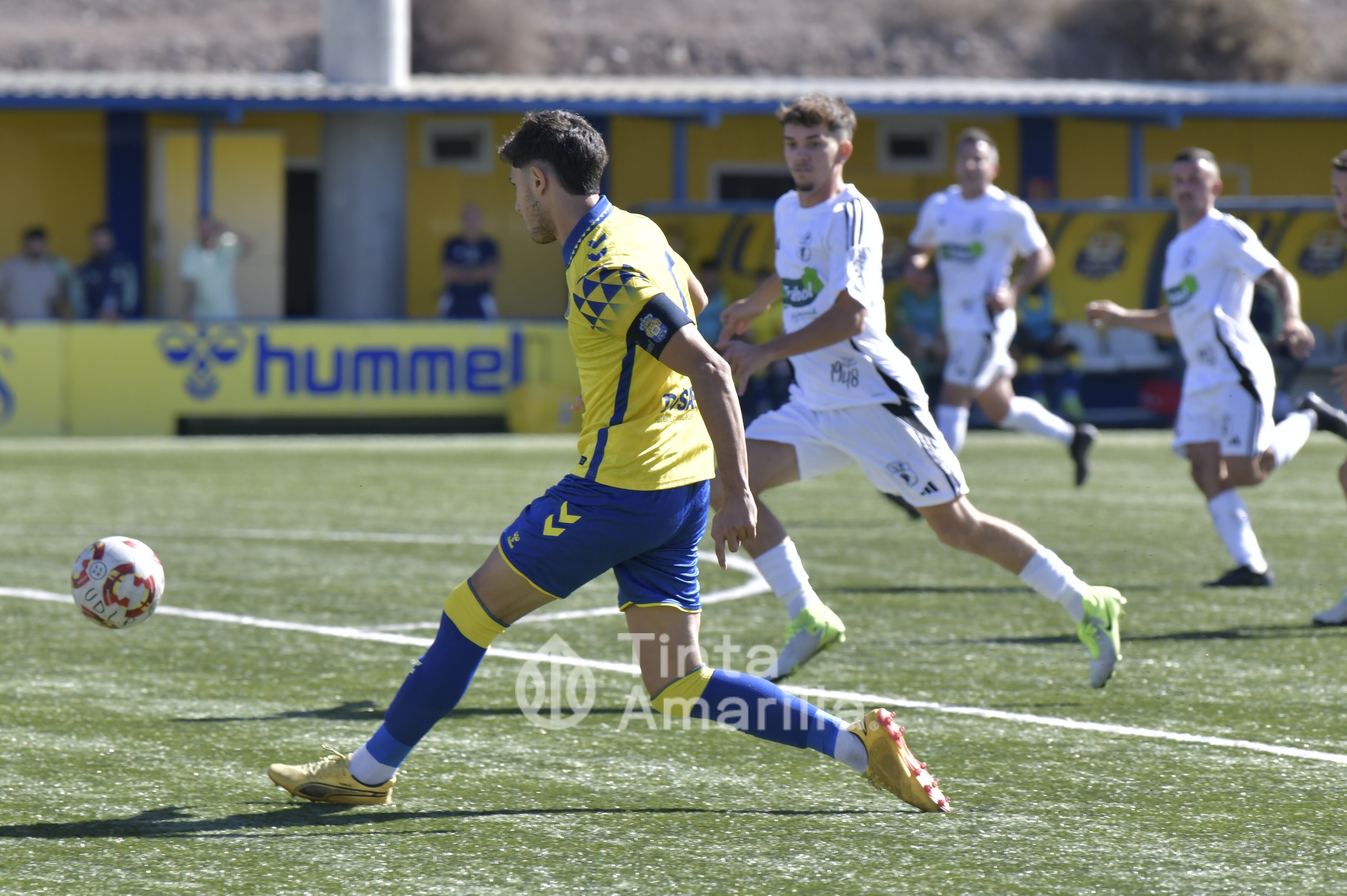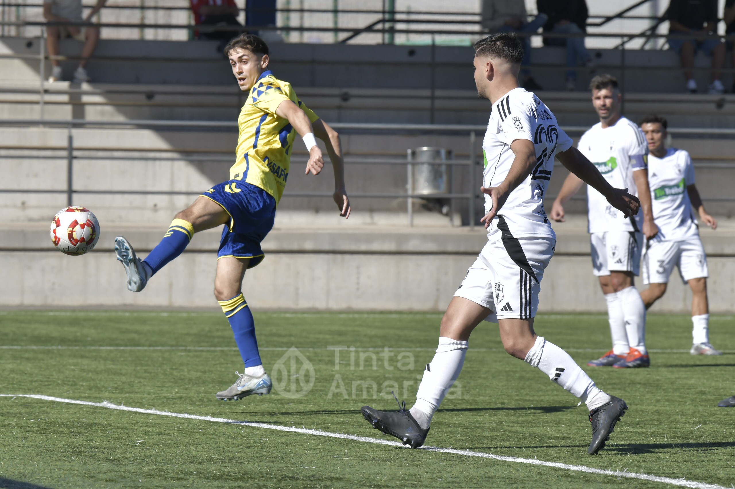 Pero su austera opción fue, en realidad, su perdición ante un rival que dominó todas las facetas del juego y que tardó media hora en quebrar la propuesta tinerfeña. Las primeras cargas del filial llegaron por la derecha, con dos carreras verticales y centros de Saliou. En una de ellas llegó a rematar José Ángel, aunque sin precisión plena. Por la banda izquierda era Diego Martín quien también tenía la misión de emitir centros en un claro intento amarillo de abrir el partido por las bandas.