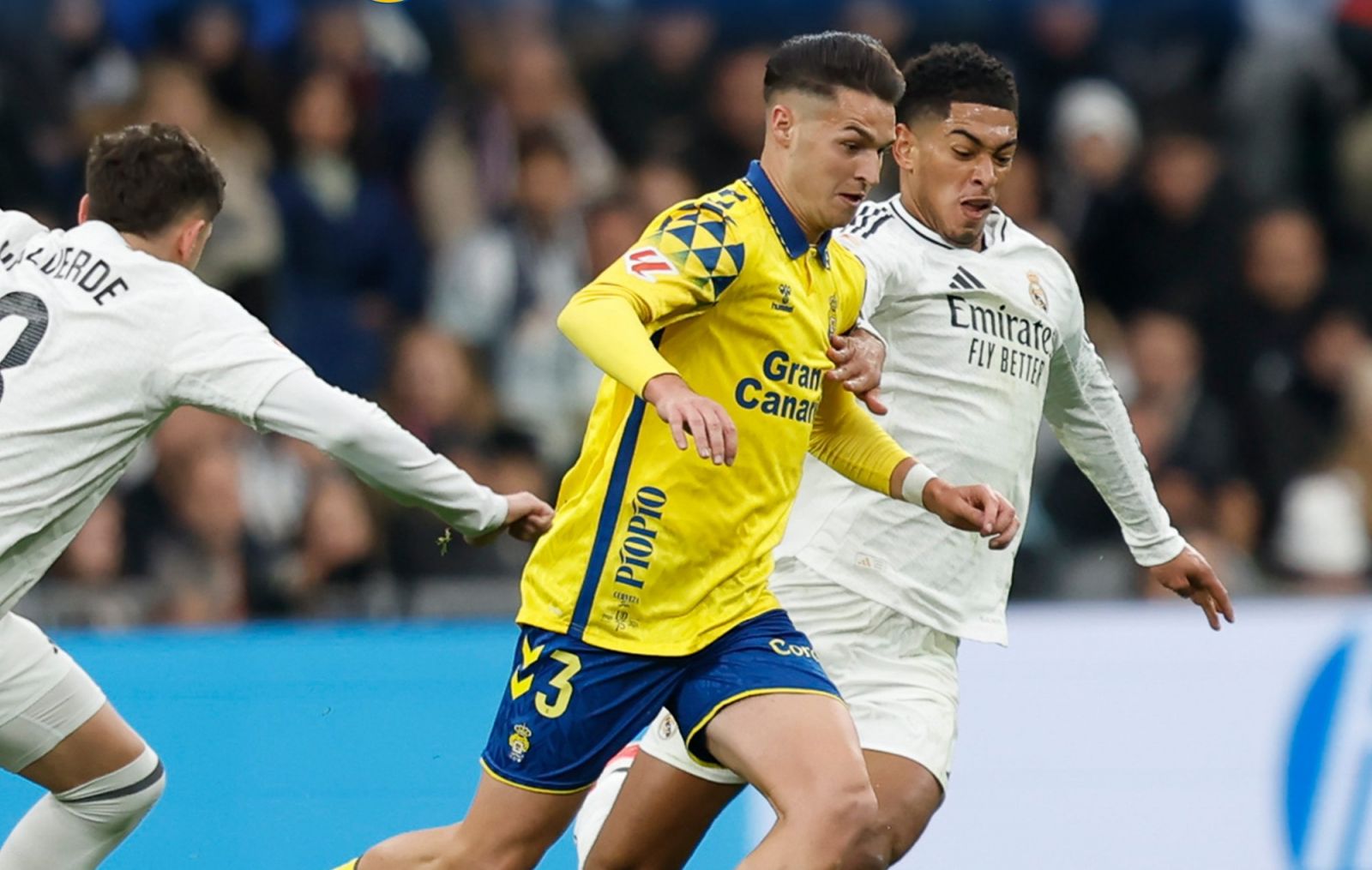 Más complicado se puso todo en la última media hora por la tarjeta roja a Benito, en una jugada fortuita con Lucas Vázquez. Sólo queda que siguieran pasando los minutos y que el daño ya causado no fuera mayor. Dos nuevos goles fueron anotados, pero no subieron al marcador obras de Bellingham y Fede Valverde. Fueron las únicas ‘alegrías’ de los aficionados canarios, que padecieron una larga hora y media de tortura en el estadio que sigue siendo el de ‘Nunca Jamás’.
