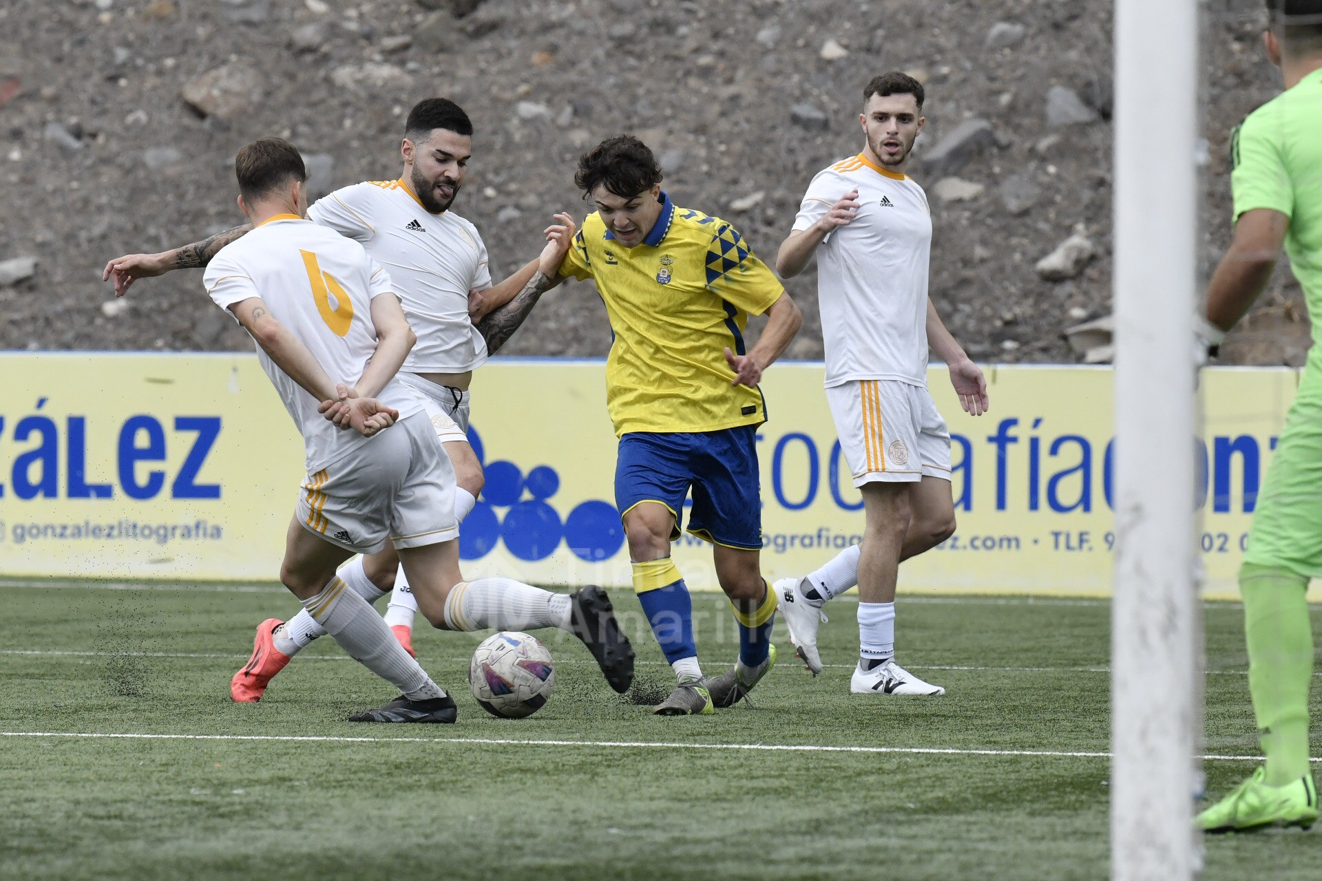 El equipo de José Antonio Robaina estaba bordando en la primera parte su mejor actuación de la temporada como local, además con un acierto exquisito en los metros finales del campo. Así, a la media hora, el tercera tanto de la serie llegó tras obra jugada de Airán Díaz, que acabó con un chut al larguero. Pero en la continuación fue el tinerfeño Antonio Hernández el que cazó el balón y de inmediato lo alojó en el fondo de la portería de Omar.