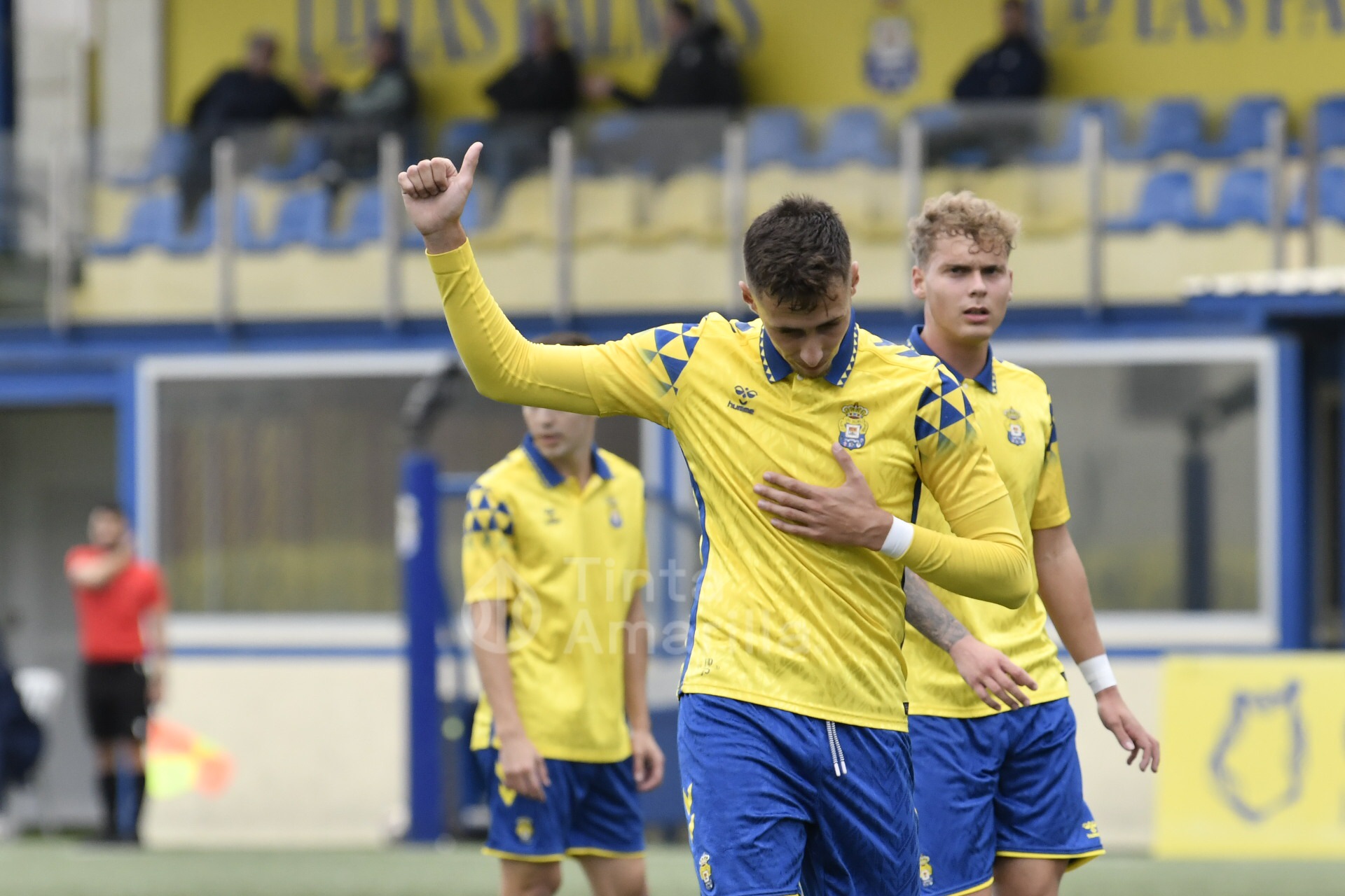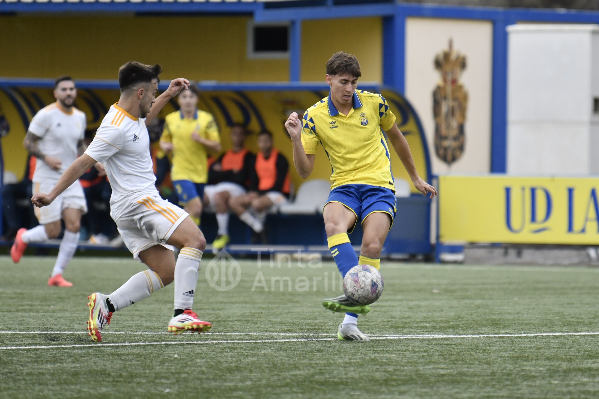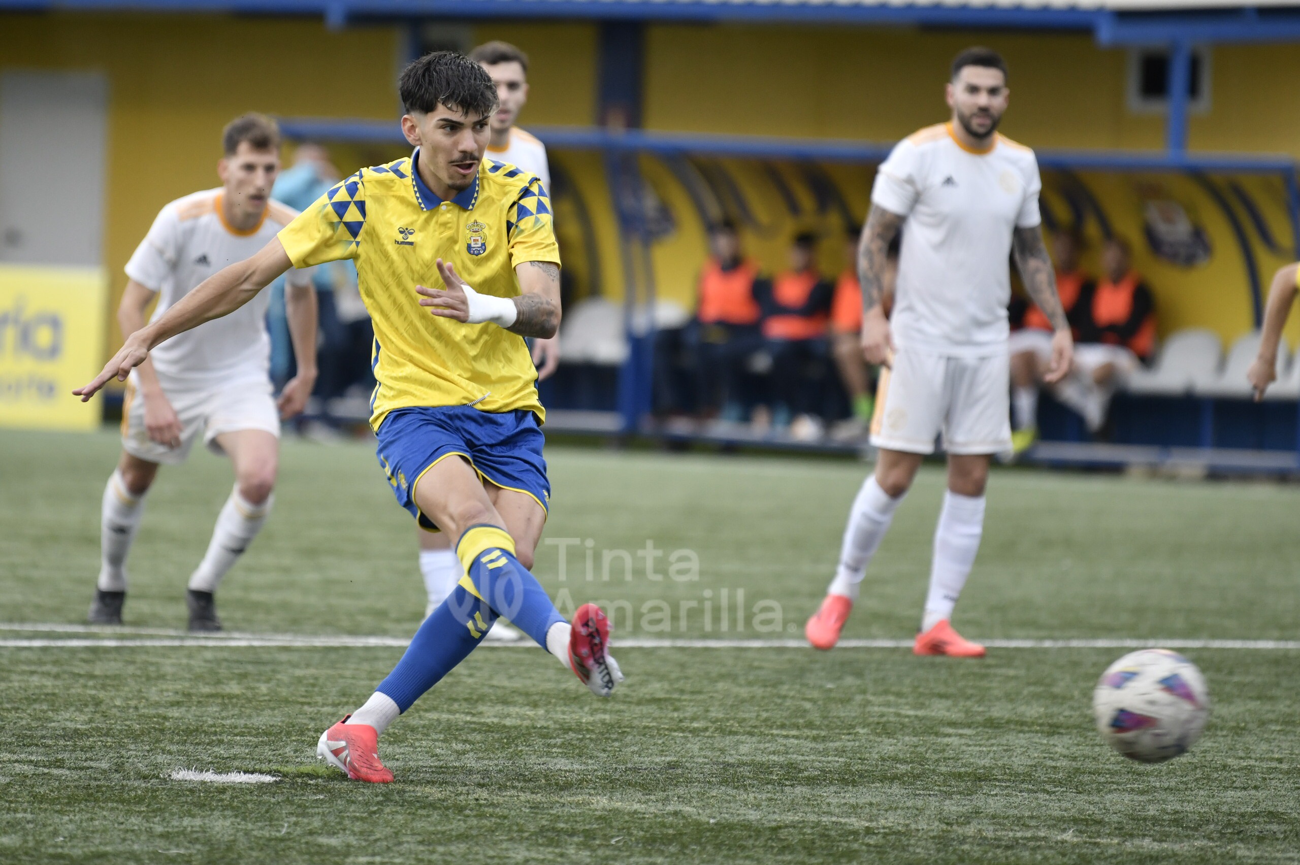 En pocos minutos Las Palmas C puso el partido de cara, pese a que el Universitario trata de hacer ver el por qué de su segunda plaza en la Liga de Preferente de Las Palmas. Los amarillos salieron al campo cuchillo entre dientes y a los 7 minutos, tras una jugada de Airán Díaz, Marco Gutiérrez fue objeto de un derribo en el área cuando trataba de orientarse para el disparo.