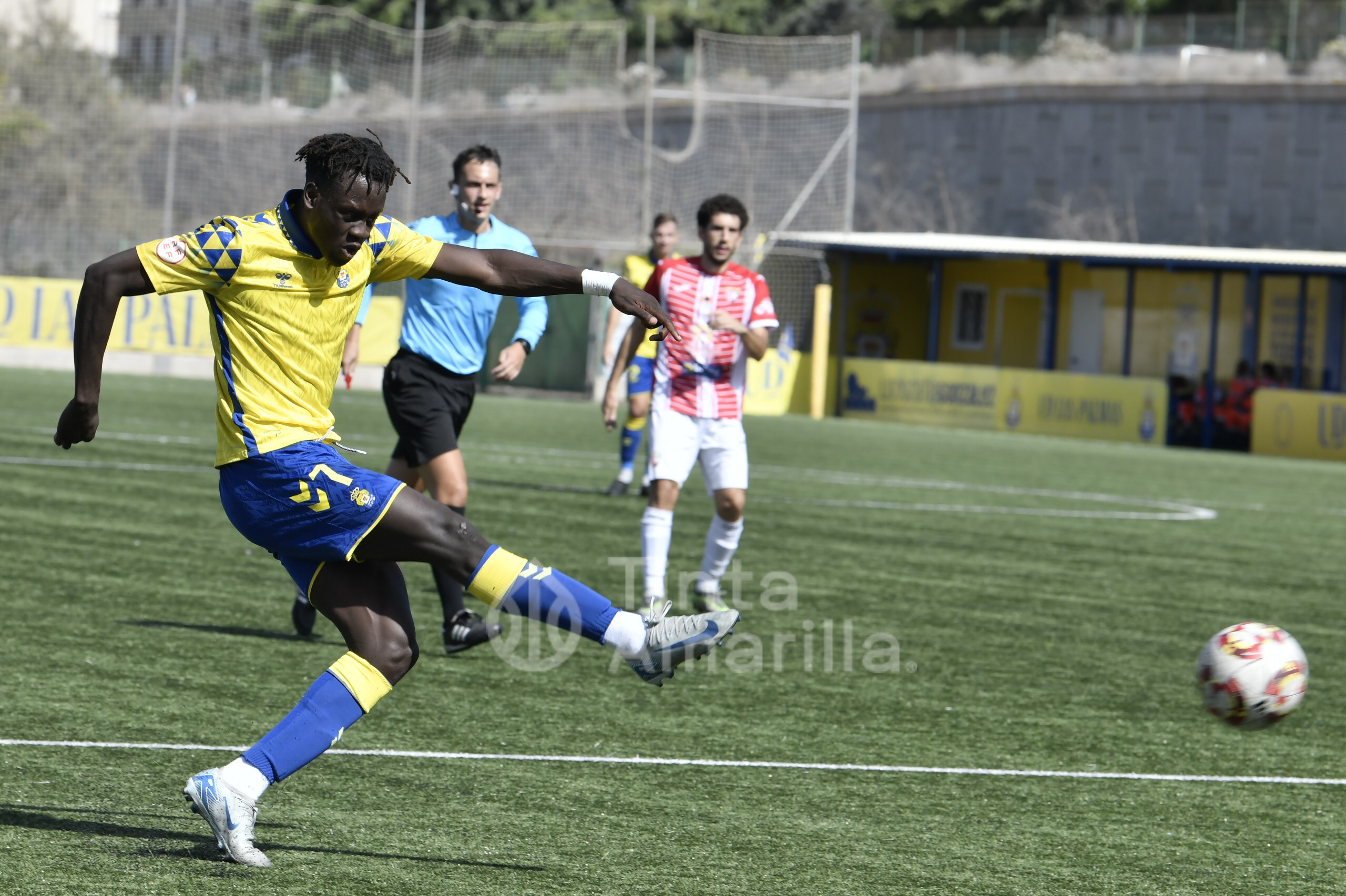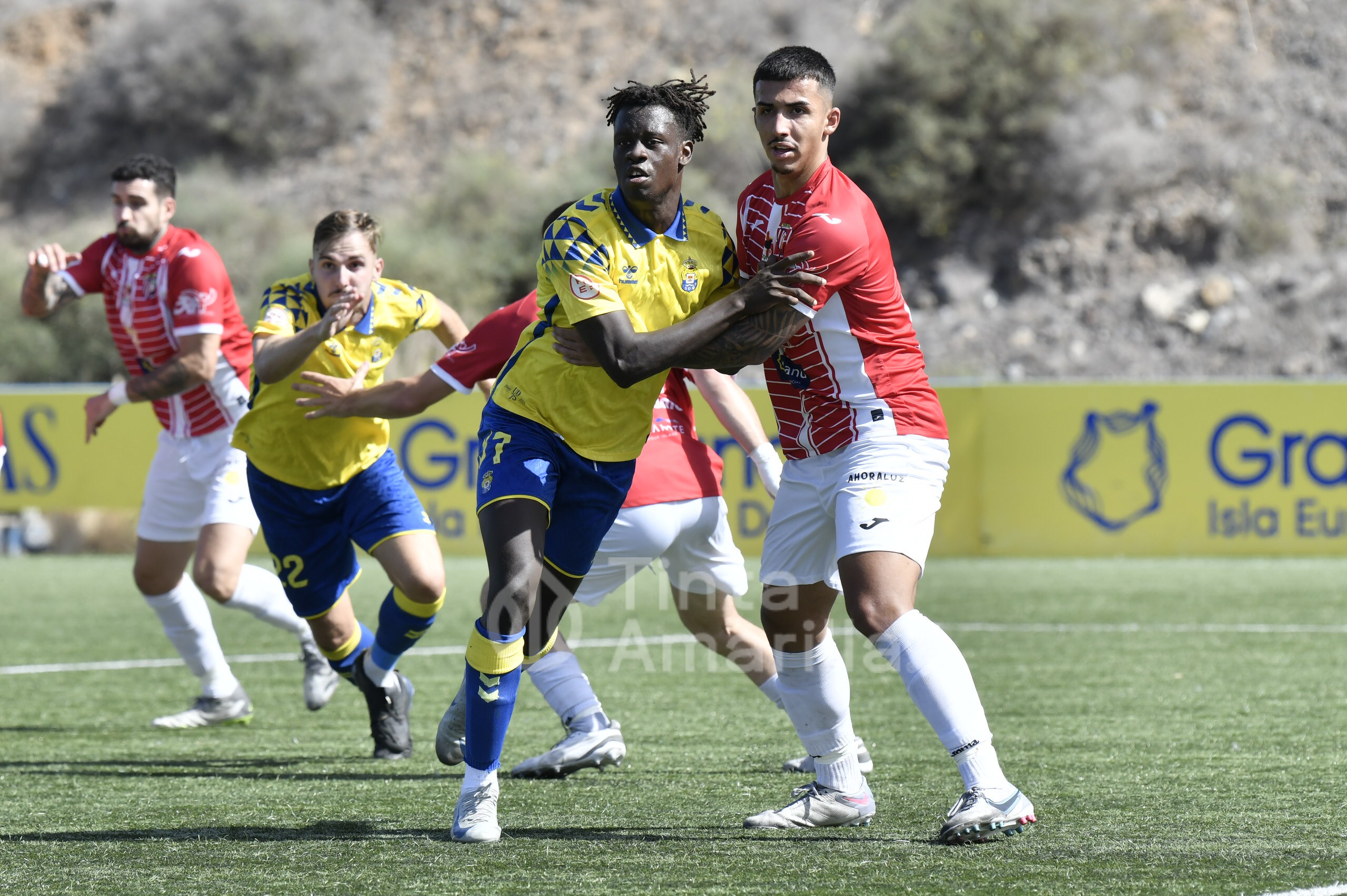 El liderato se le escapaba entre los dedos al filial grancanario, porque el San Bartolomé estaba fraguando su propia sorpresa en una jornada cargada de ellas. Sin embargo, Saliou Mandiang hizo bueno su habitual concurso como velocista de la categoría. Escapó de su marcador y colocó una pelota en el punto de penalti para su compañero Jorge Pérez. La alegría del gol liberó la ansiedad de los minutos precedentes.