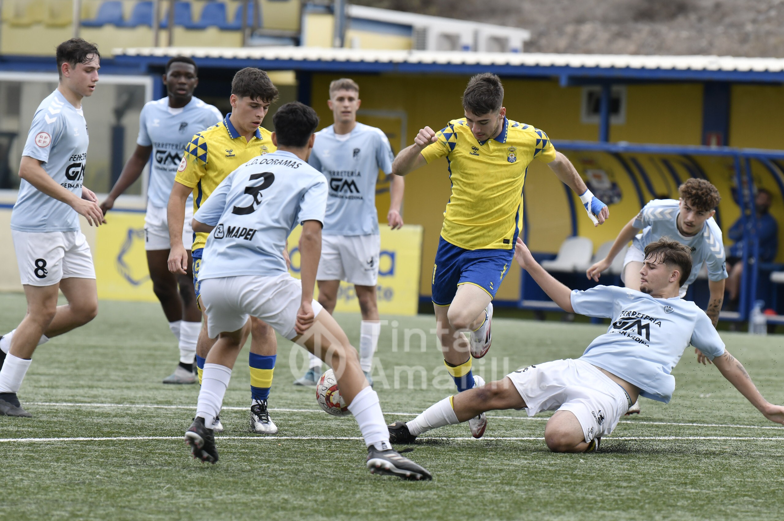 El juvenil A de la UD Las Palmas reanudó su calendario en la Liga regional canaria con una nueva victoria, esta vez 5-1 ante el Doramas. El partido tuvo dos novedades en el filial, con el debut del defensa del juvenil C Gómez Landero y la lesión del extremo habitual, Sergio Ruiz, uno de los protagonistas de la reciente eliminatoria de Copa del Rey frente al Granada.