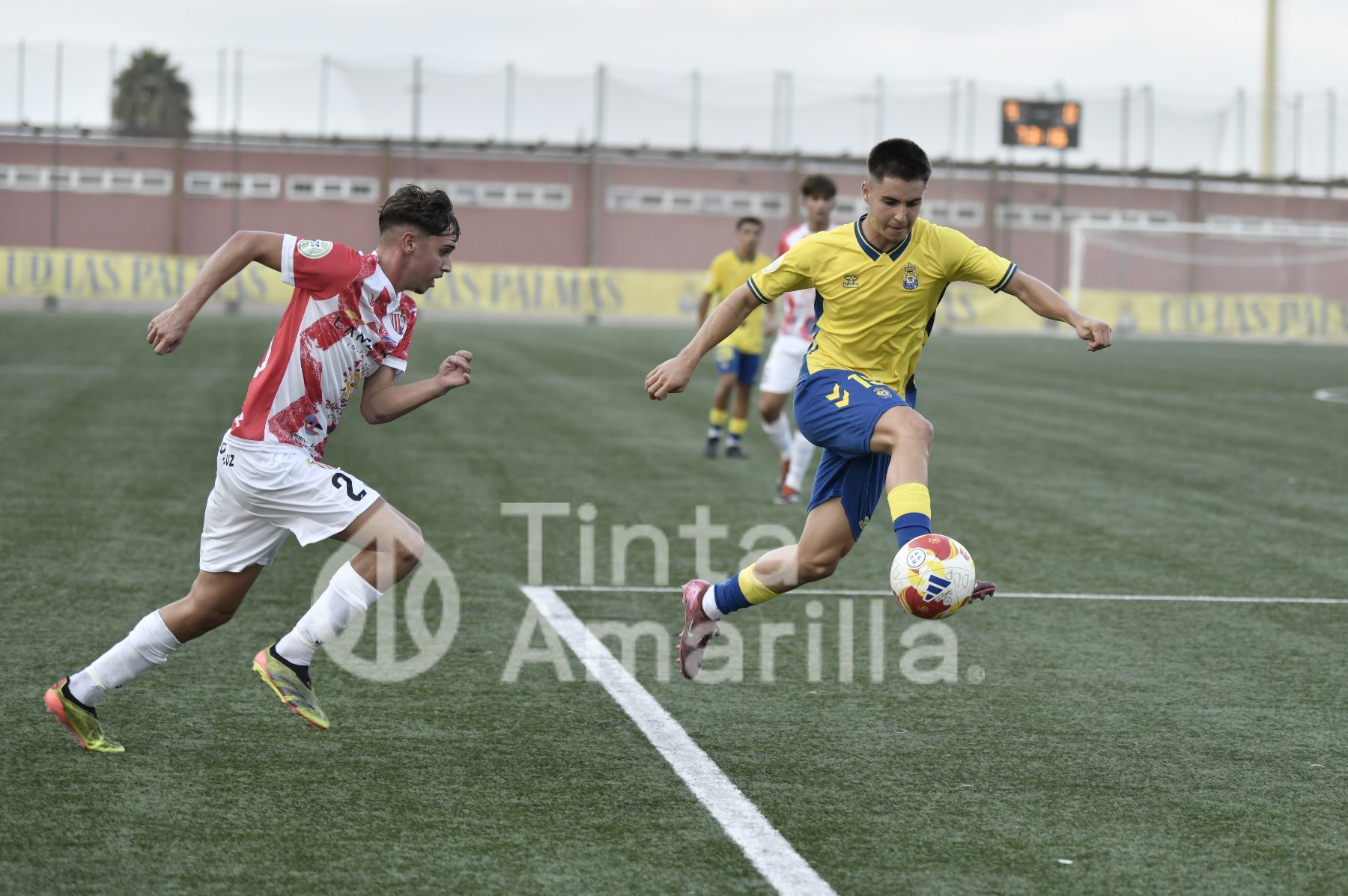 Goles: 1-0, m. 20. Penalti sobre Gabriel Robles, que conlleva la expulsión de Borja. Transforma con disparo inapelable Hiromi González. 2-0, m. 31. Jugada de Darío Delgado, que cede a Iker León para que el majorero fusile a media altura. 3-0, m. 33. Acción por la izquierda de Gabriel Robles cuyo centro raso lo remata al primer contacto Iker León. 4-0, m. 36. Avance por la derecha de Hiromi, con pase de la muerta que apuntilla en el primer poste Iker León. 5-0, m. 69. Tras un disparo de Marco y rechace del meta, Antonio Hernández mete la cabeza para enviar sin oposición el balón a las redes. 5-1, m. 75, Córner con remate de Reydel, que no logra despejar con precisión la zaga amarilla y acaba en las redes. 6-1, m. 86. Jugada de Adrián Medina, que culmina de tiro cruzado tras un servicio de Antonio.