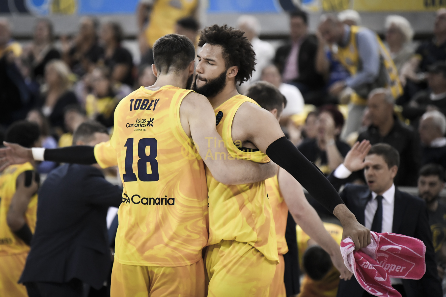 Fue en el segundo cuarto cuando el Gran Canaria logró un interesante despegue después del guarismo 31-32. Volvió a aparecer Tobey de forma determinante, con una acción defensiva y pérdida turca, varios rebotes defensivos y tres canastas consecutivas con un más uno en el tiro libre. Levantó a los aficionados de sus asientos con 41-34, aunque sobre la bocina los visitantes redujeron dos puntos.