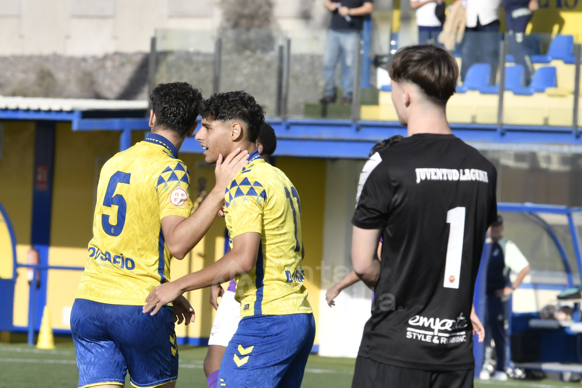 A los 11 minutos era Iker León, el goleador de la Liga, el que certificaba el 2-0 tras jugada y asistencia de su compañero Josito. La ambición no se había saciado y en la primera media hora llegaron dos tantos más, obras de Medina y León, que con el 4-0 alcanzaba para la UD Las Palmas la cifra de los 100 goles en la liga regular de esta categoría.